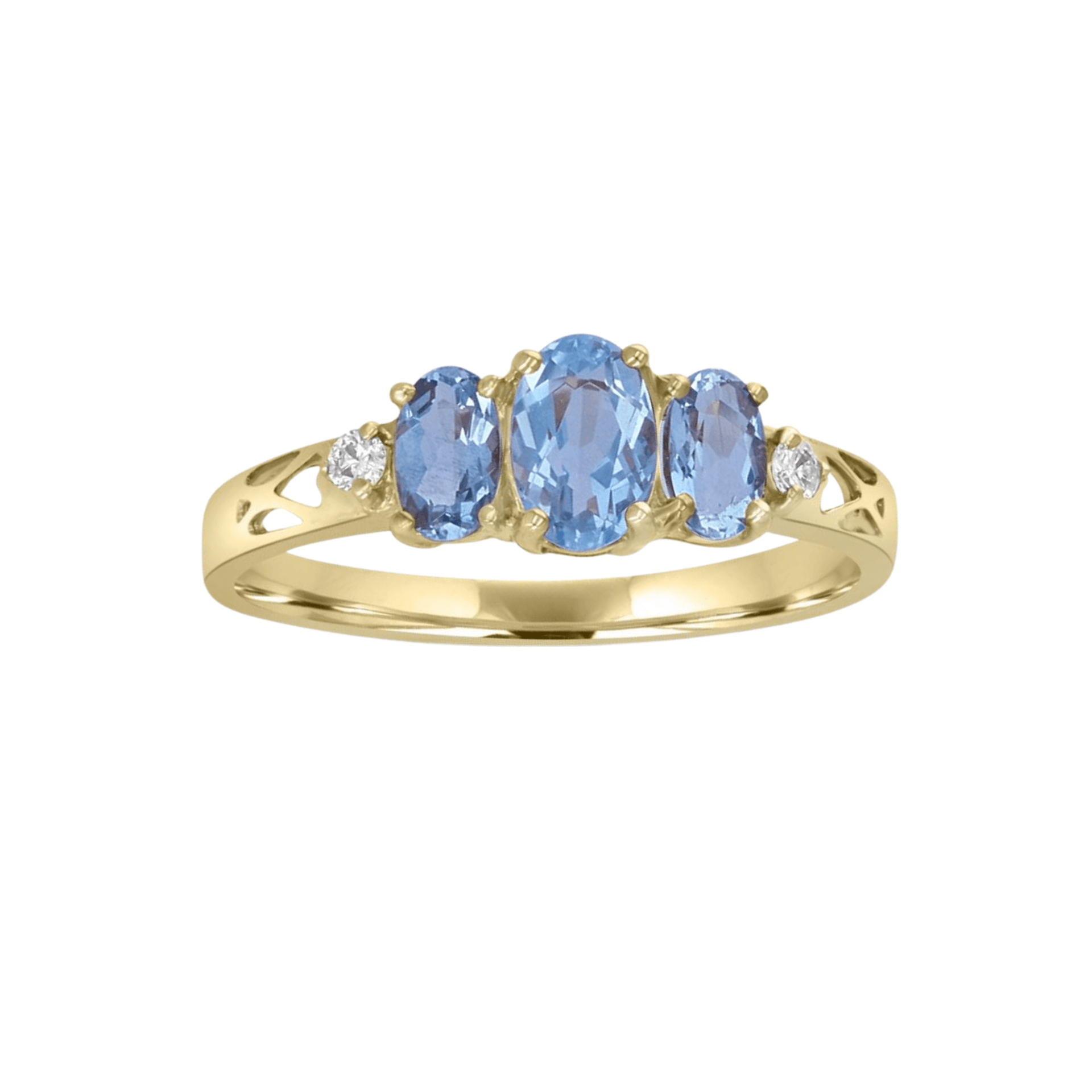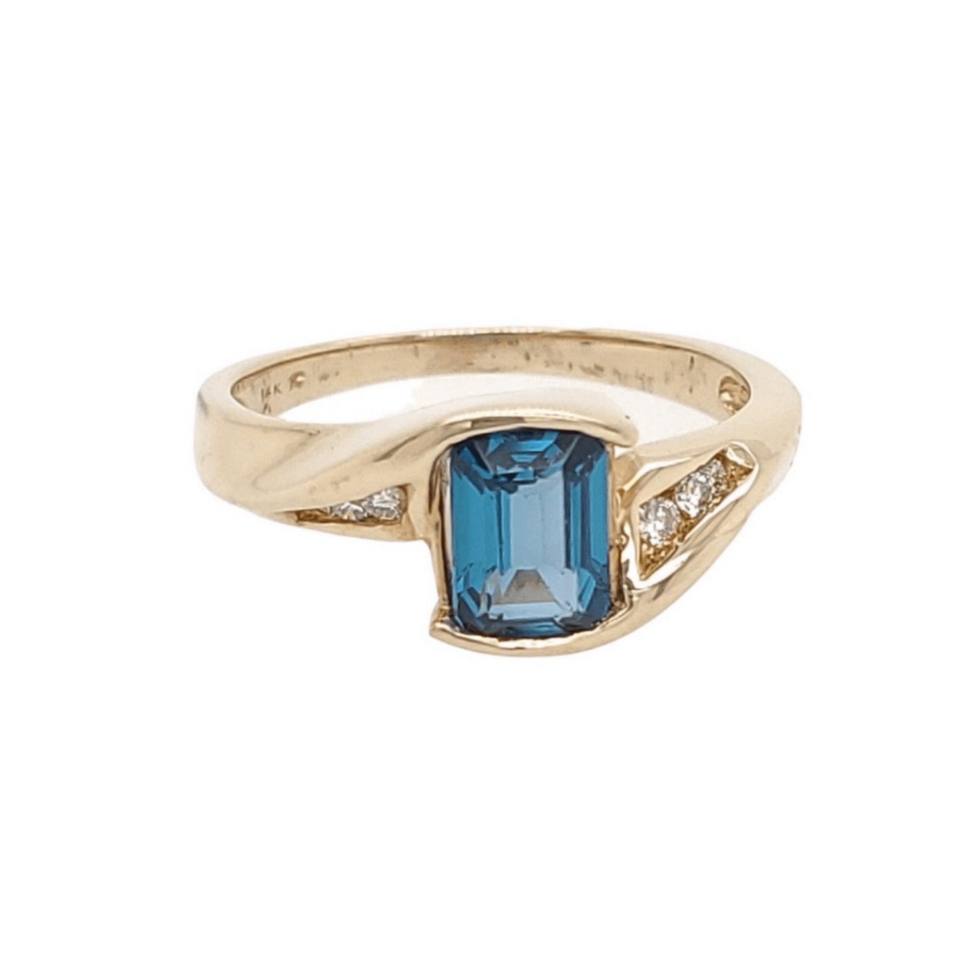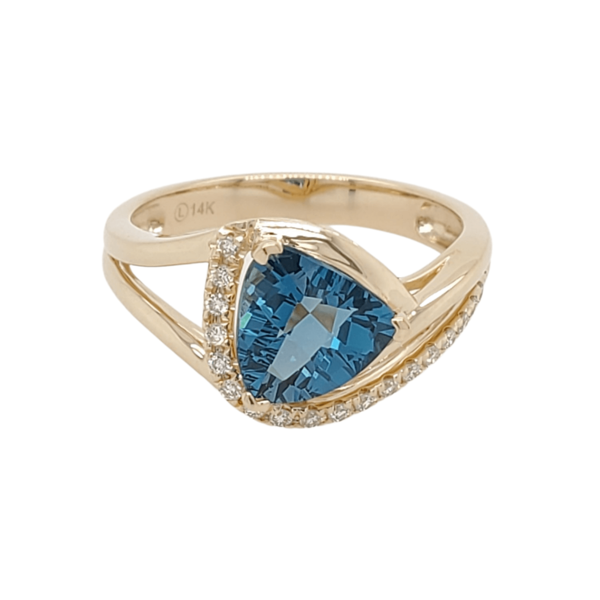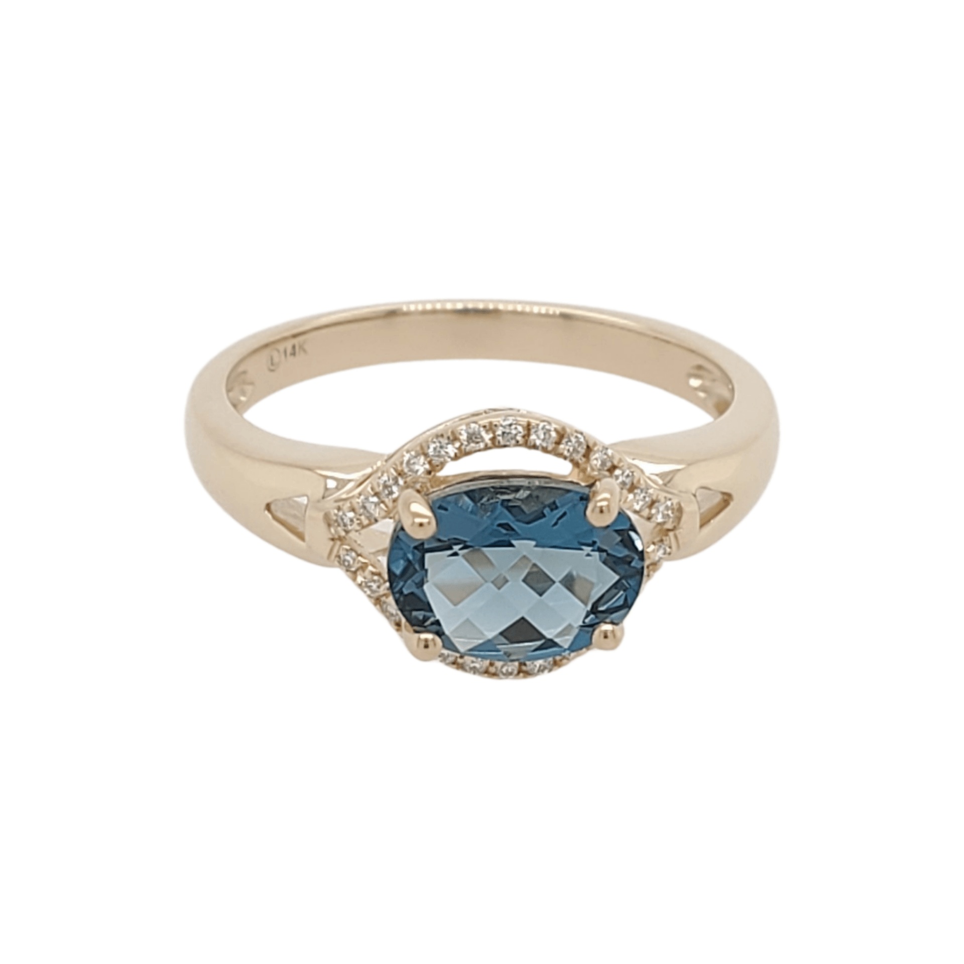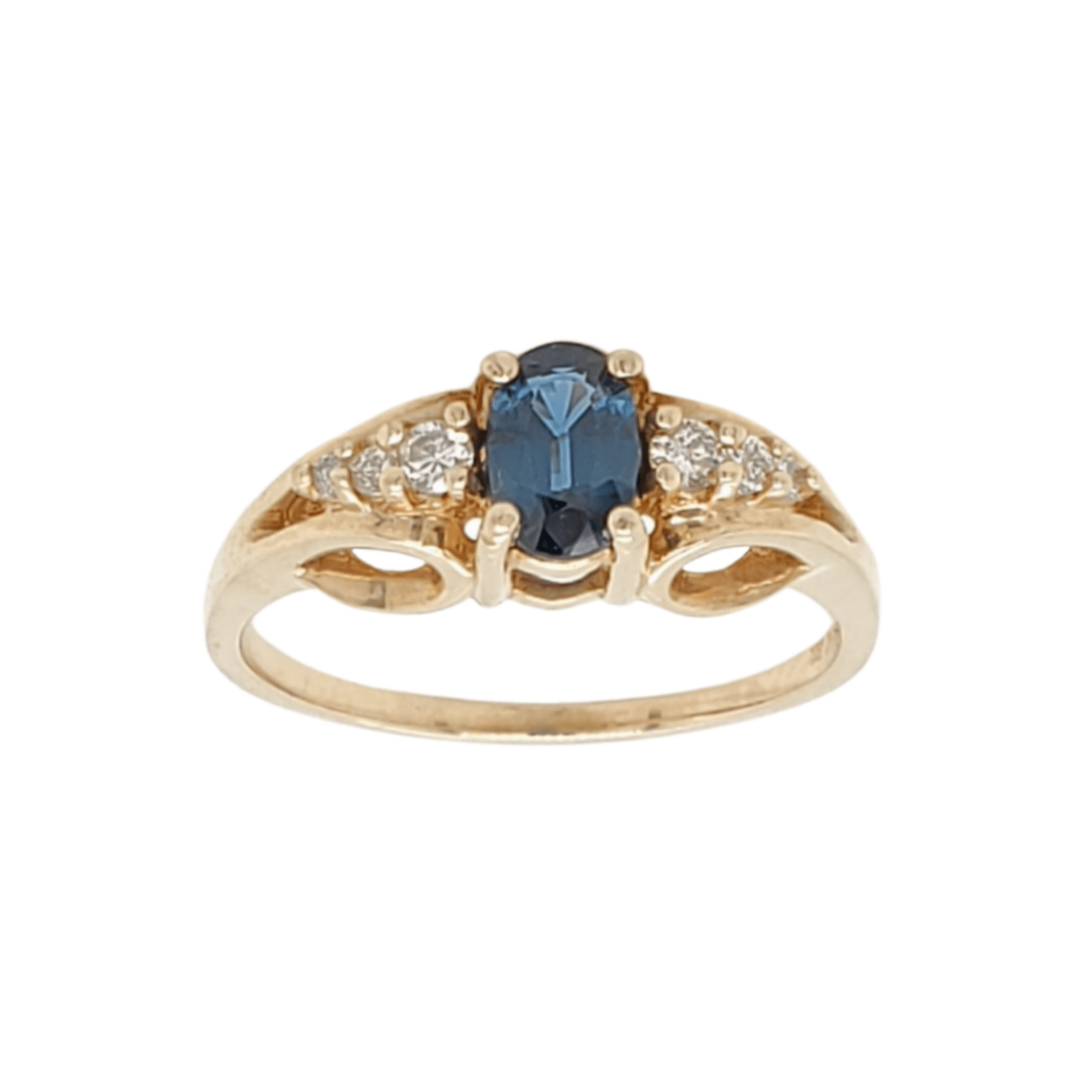 14K Yellow Gold Blue Zircon & Diamond Ring