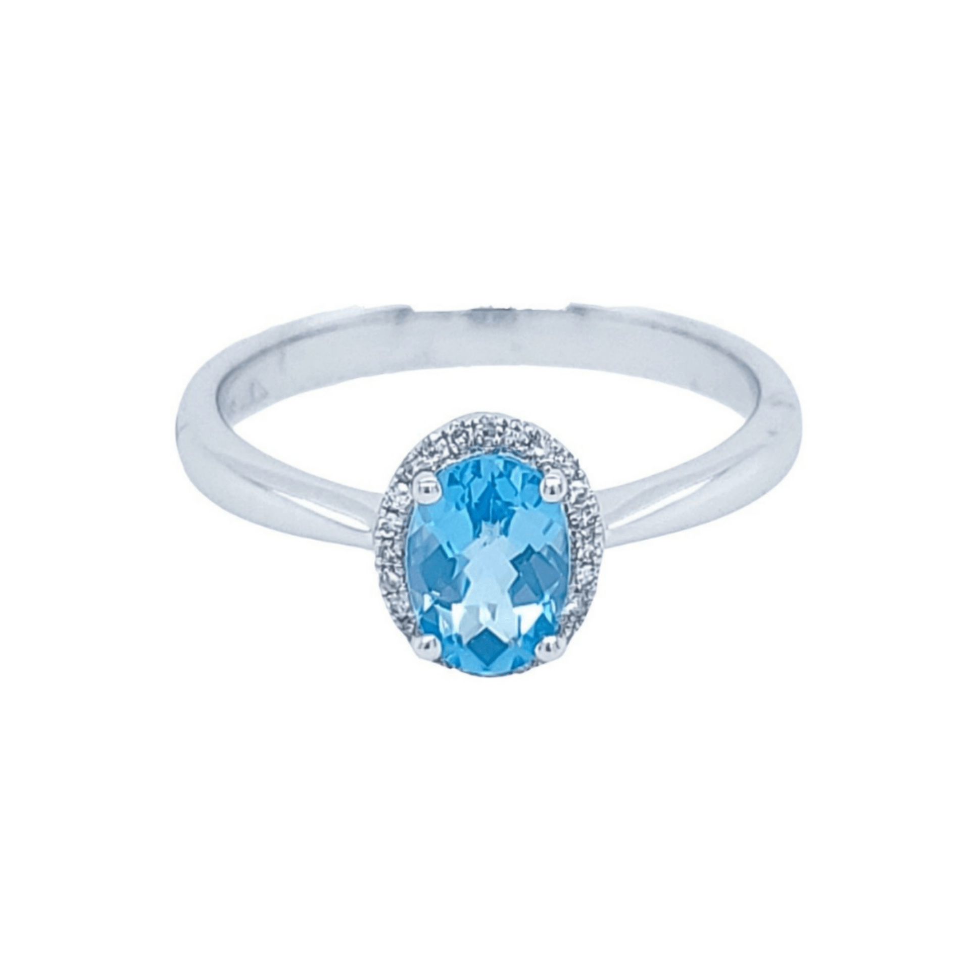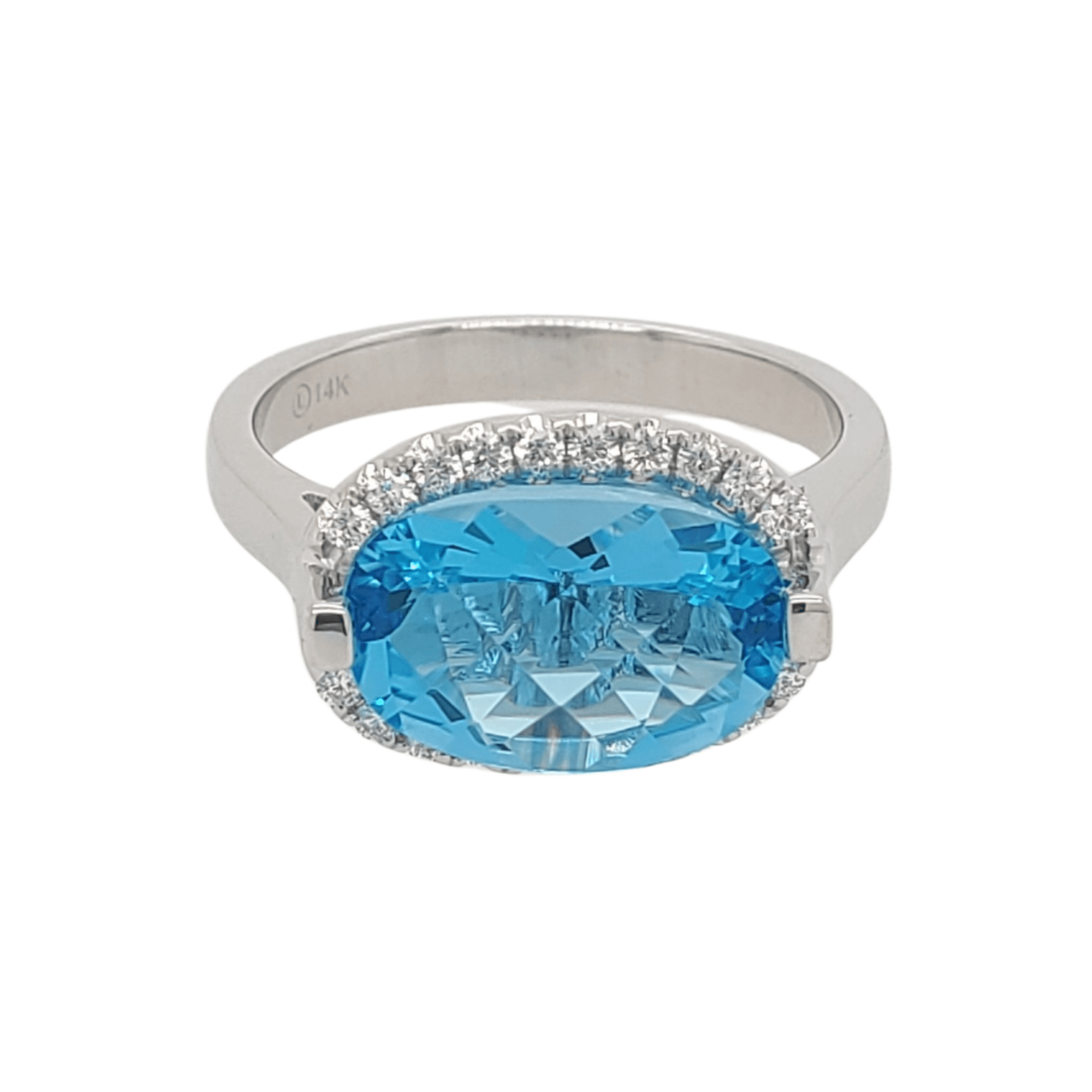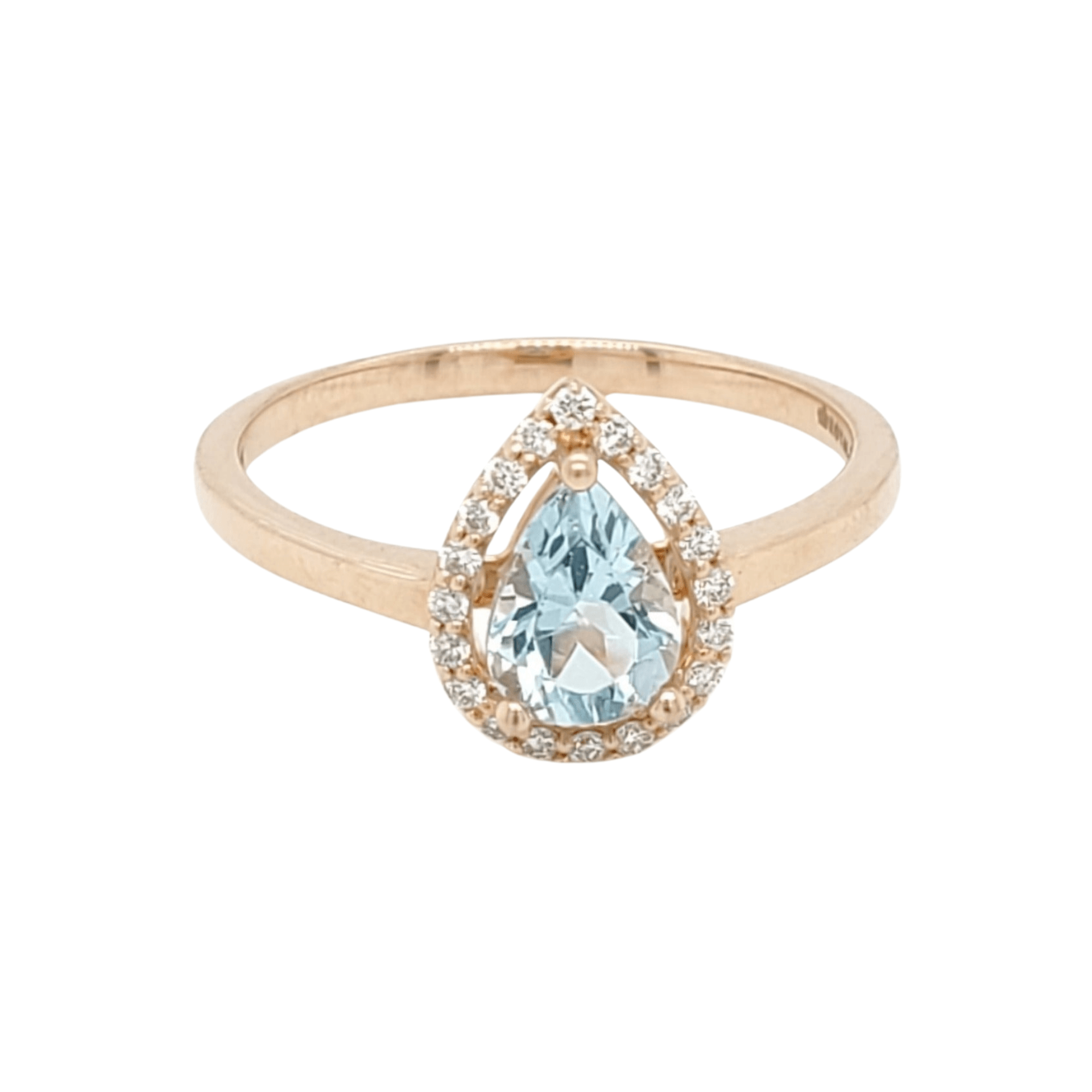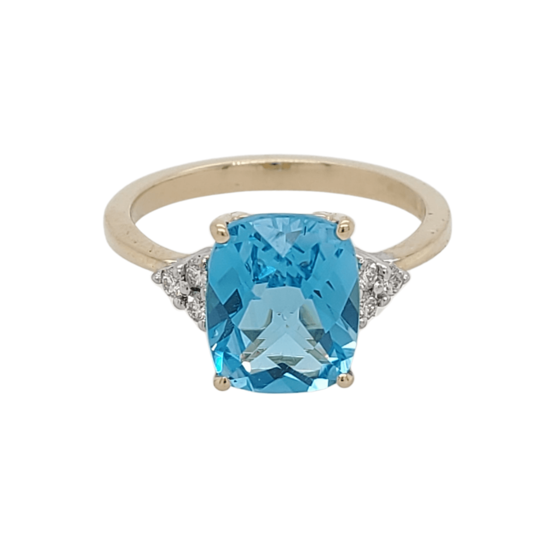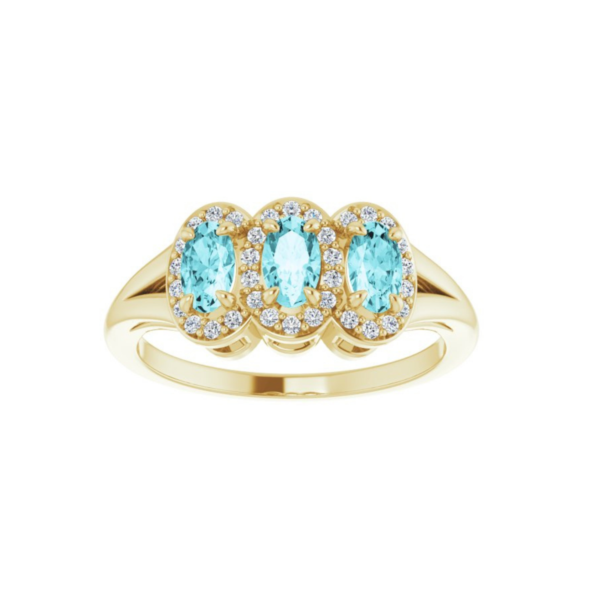 14K Yellow Gold Blue Zircon & Diamond Ring
