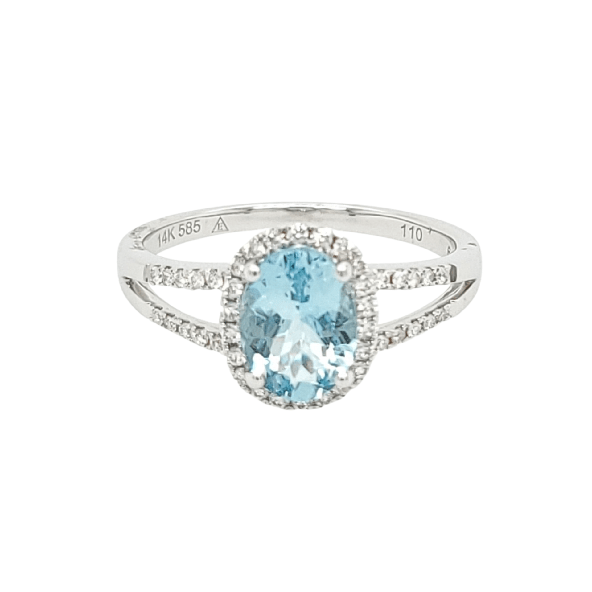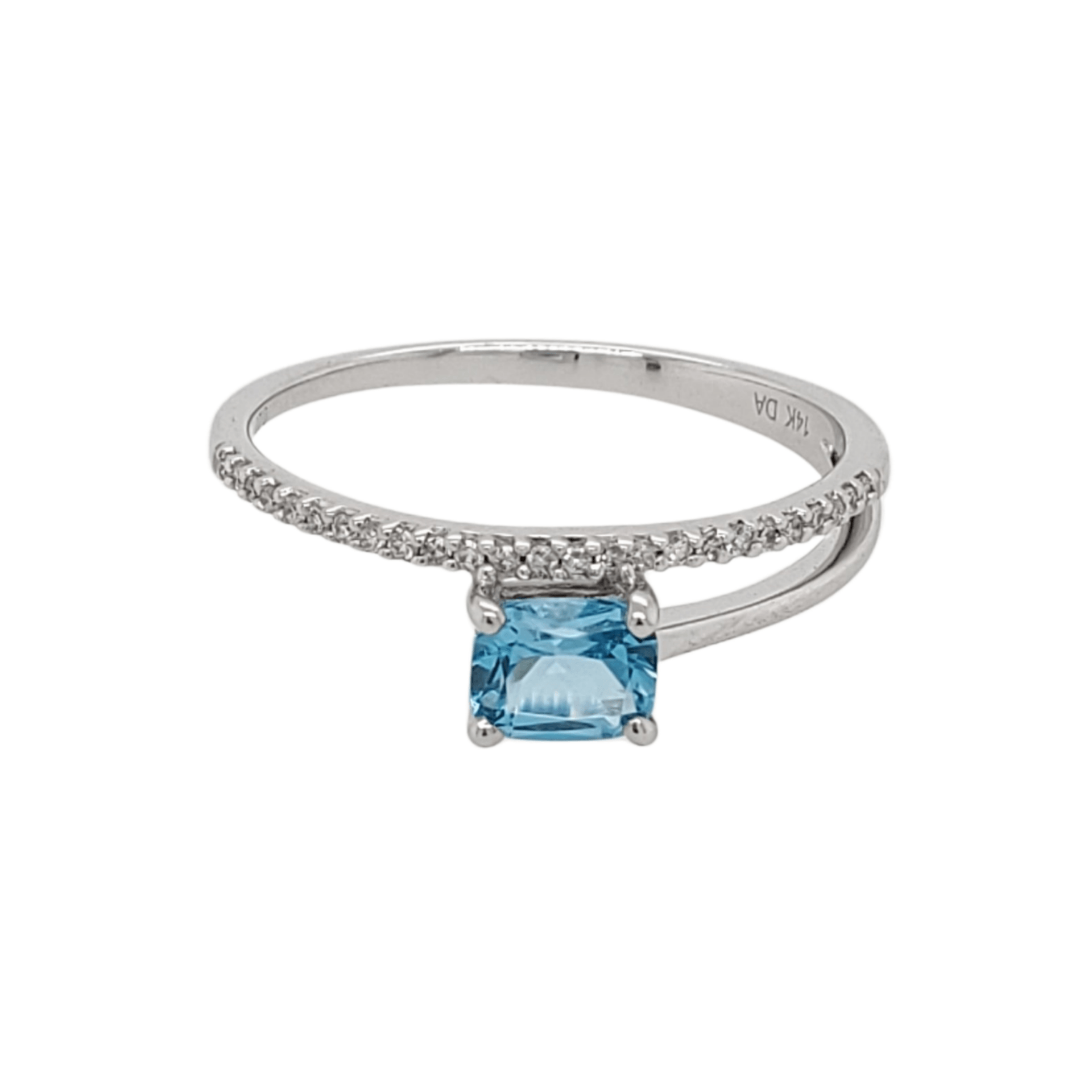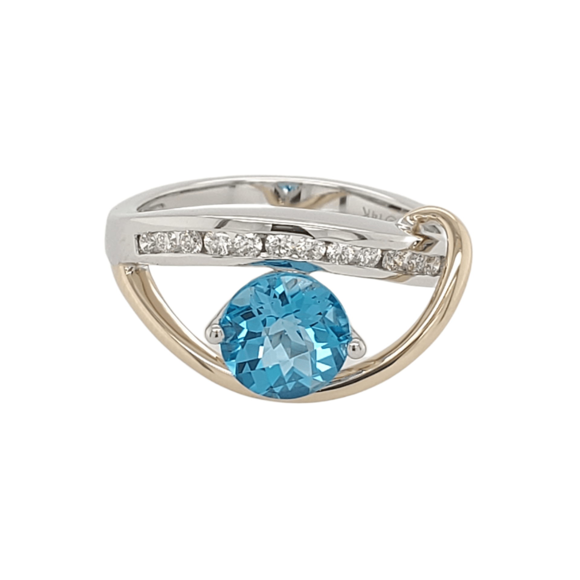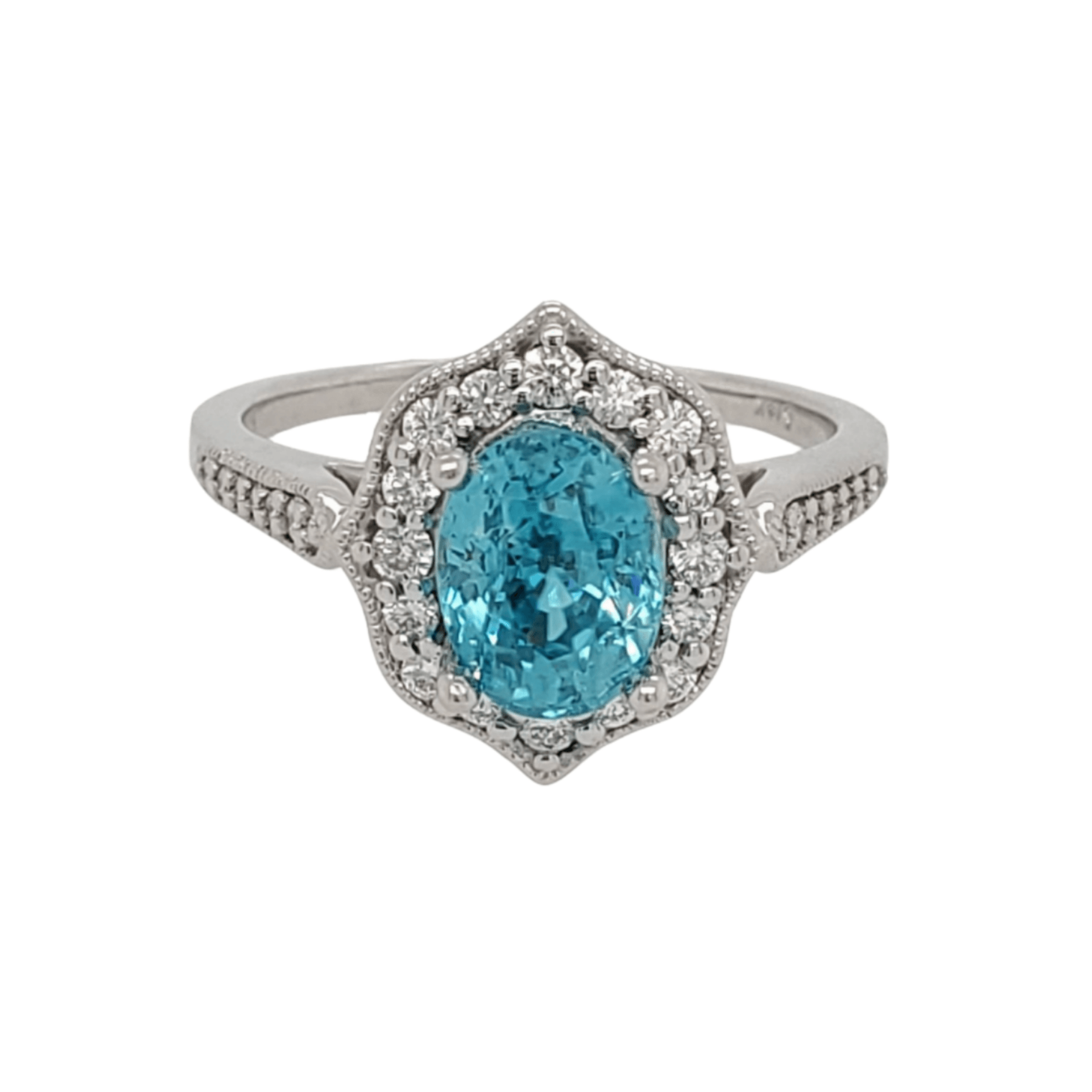 14K Yellow Gold Blue Zircon & Diamond Ring