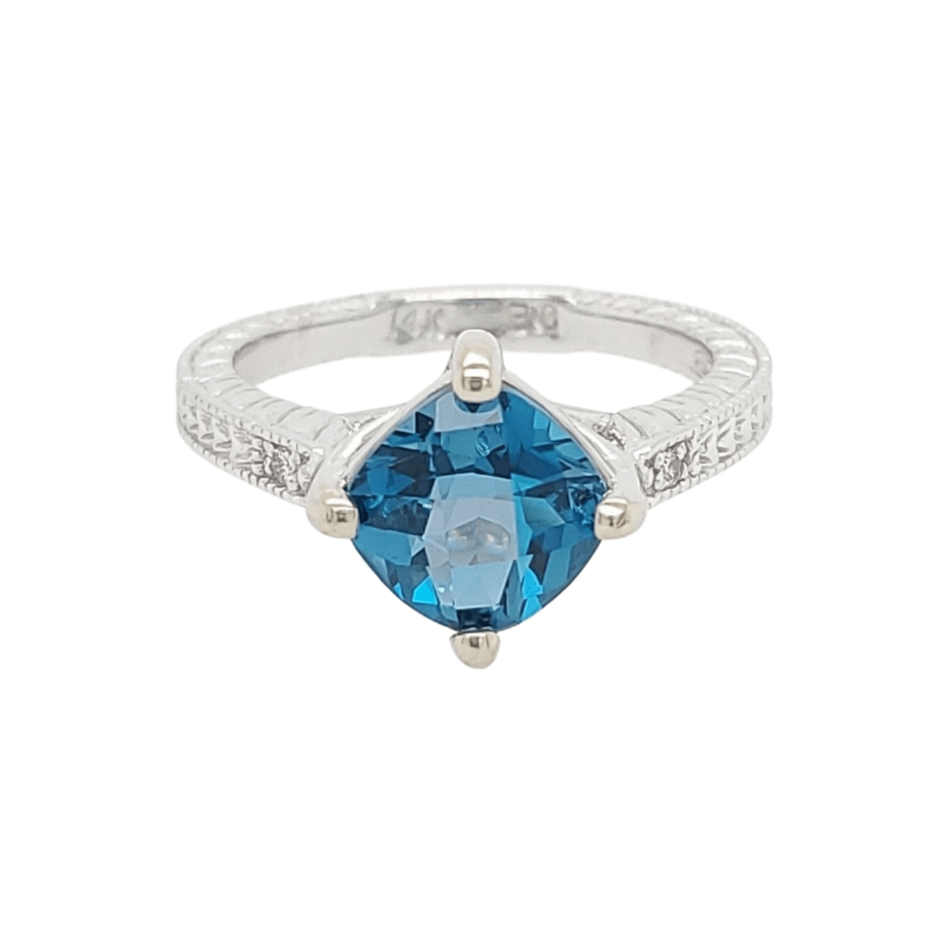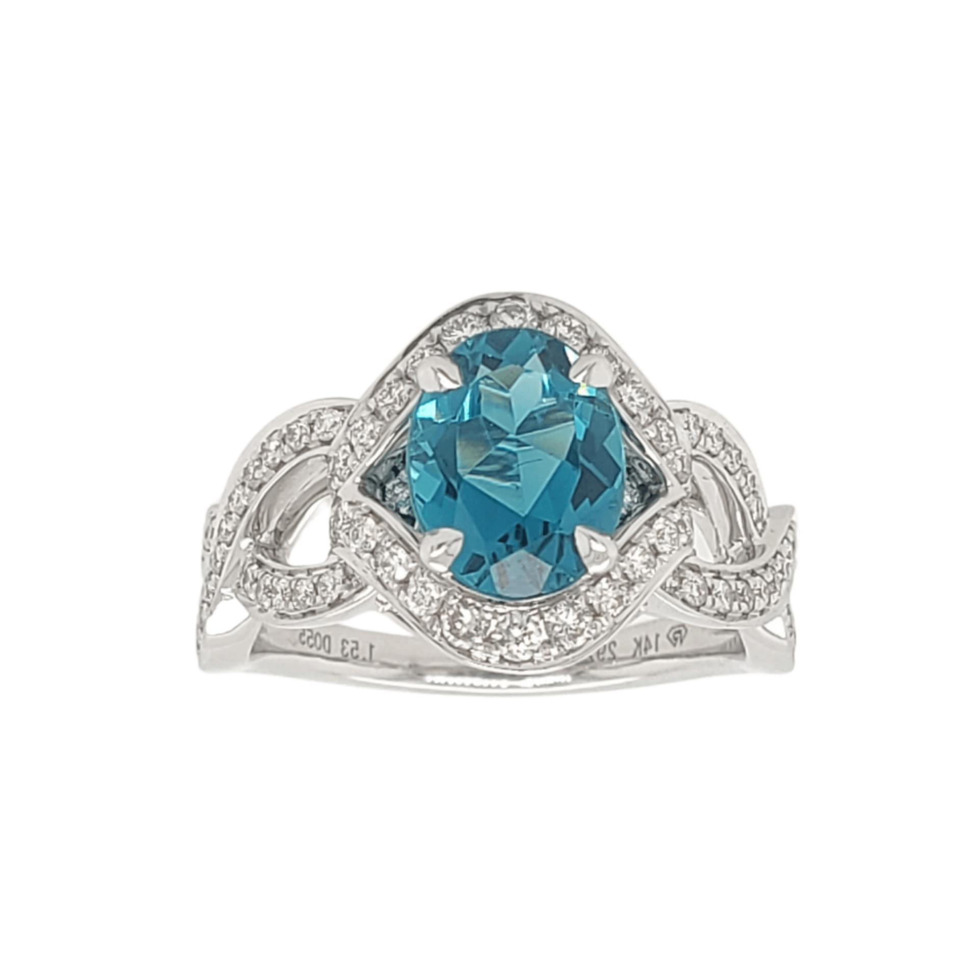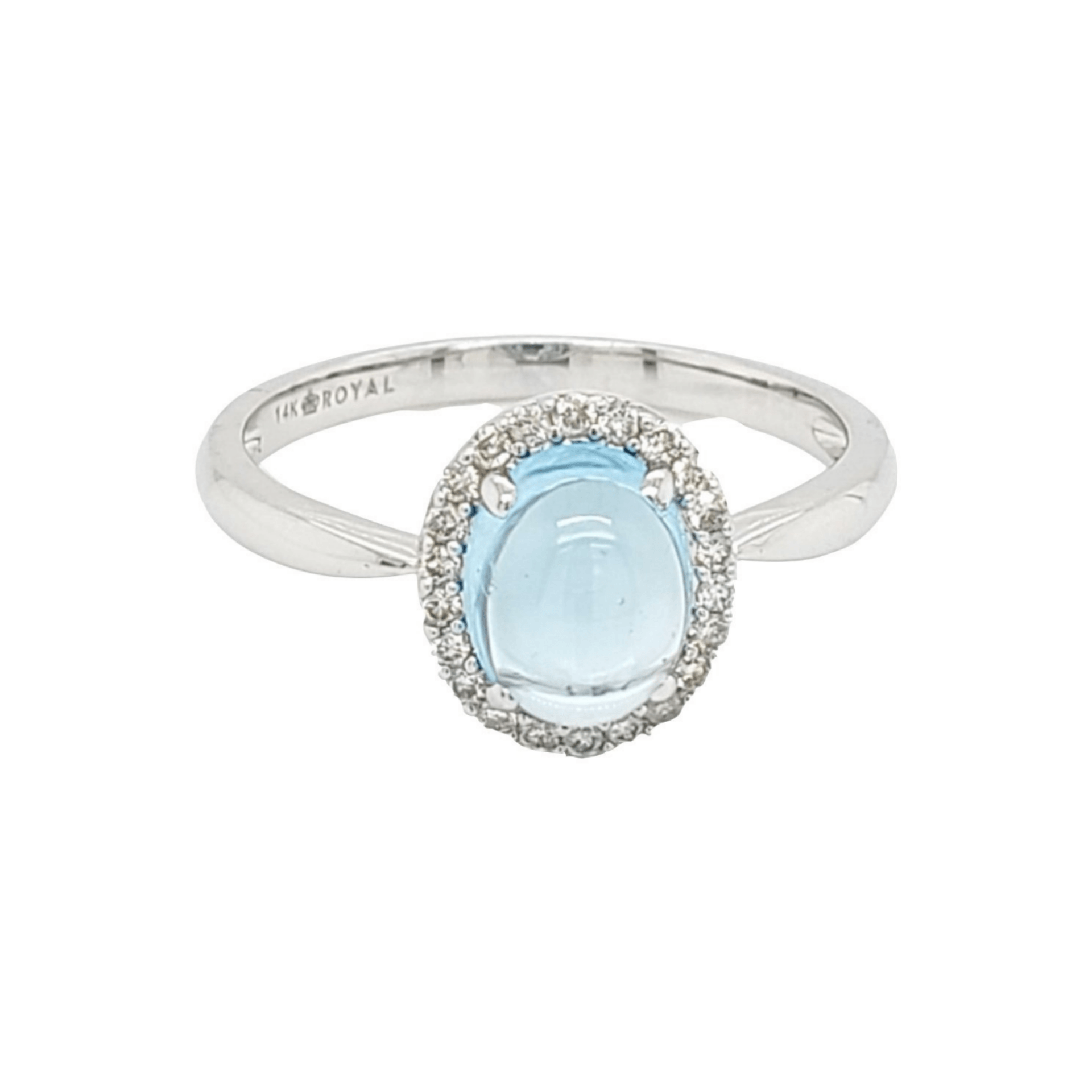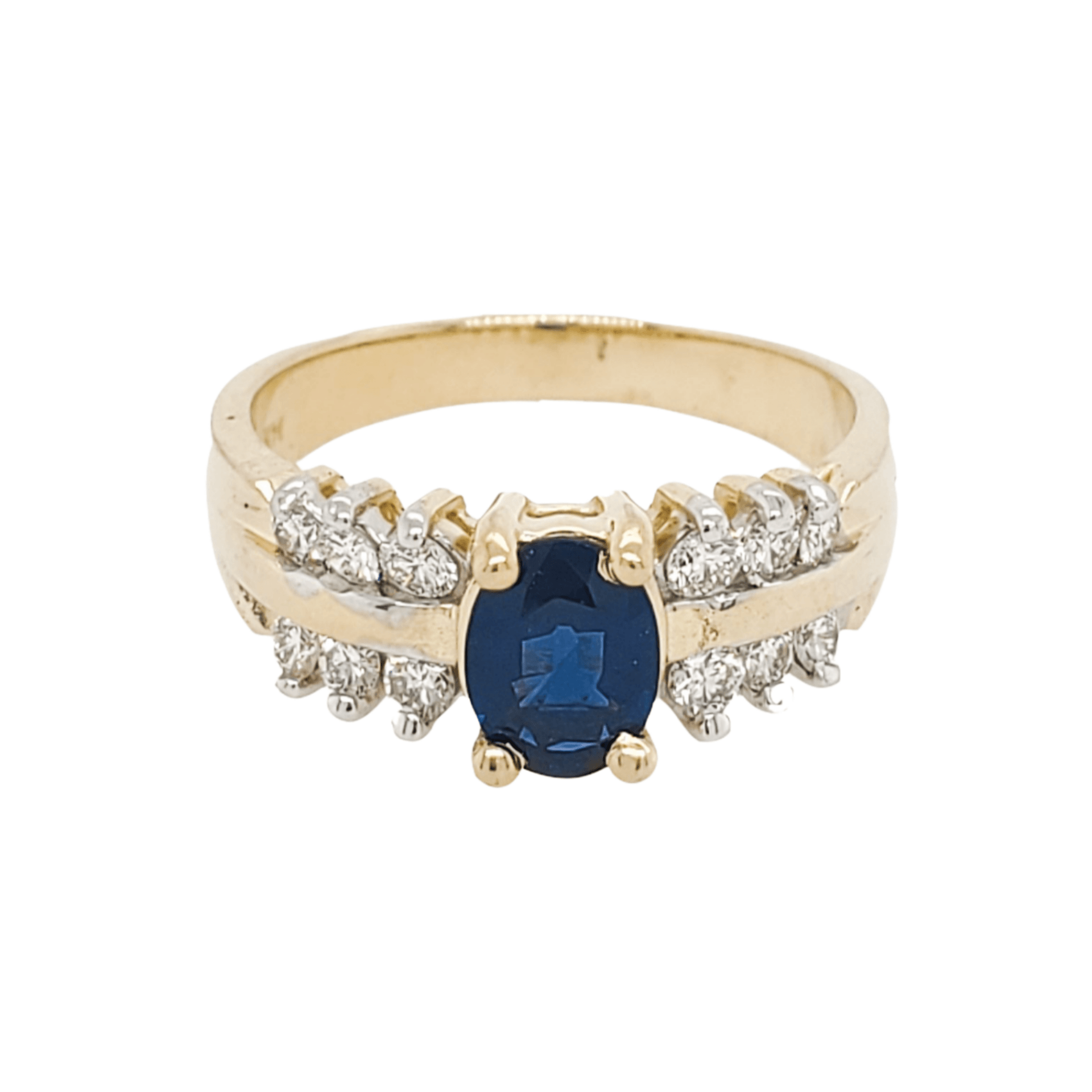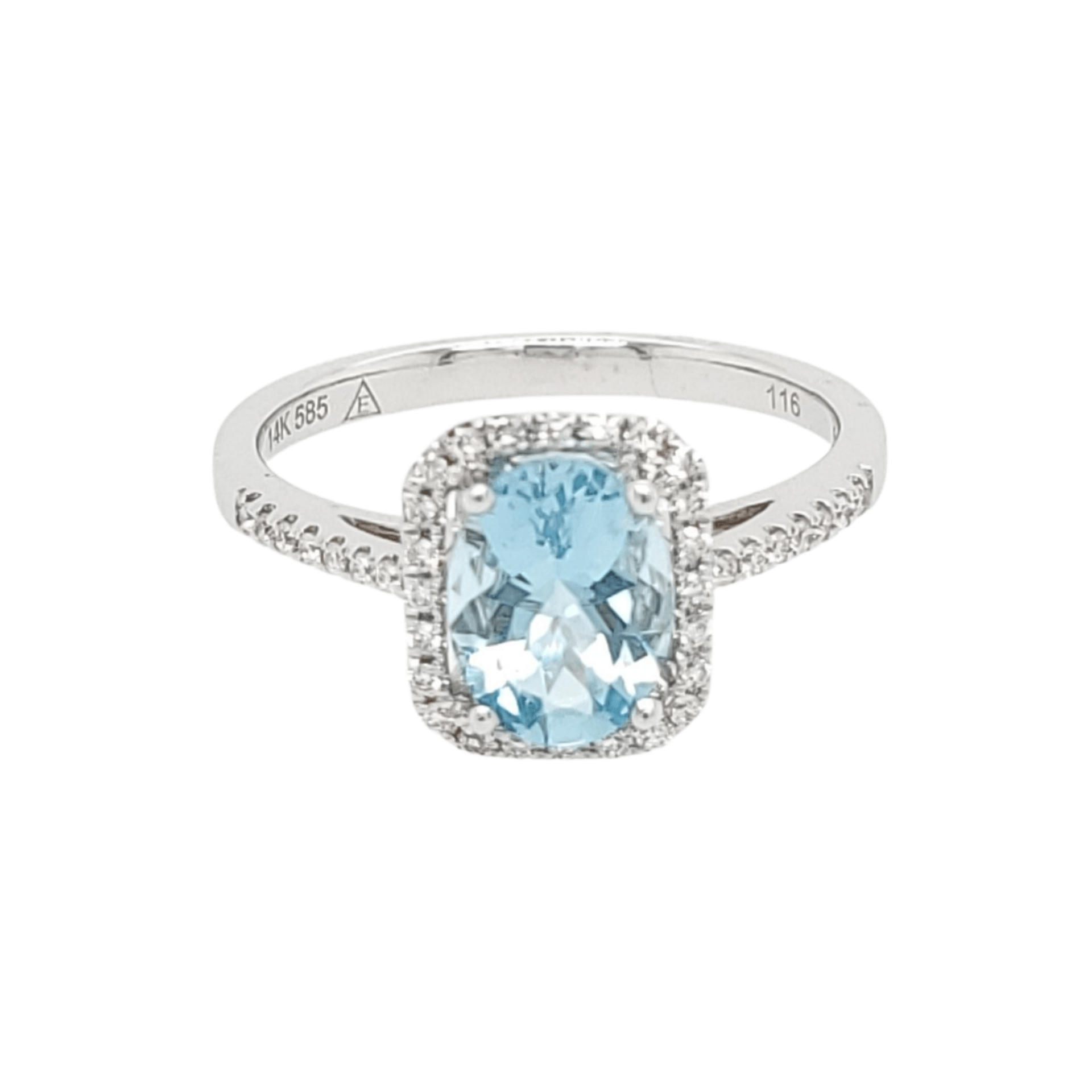 14K Yellow Gold Blue Zircon & Diamond Ring
