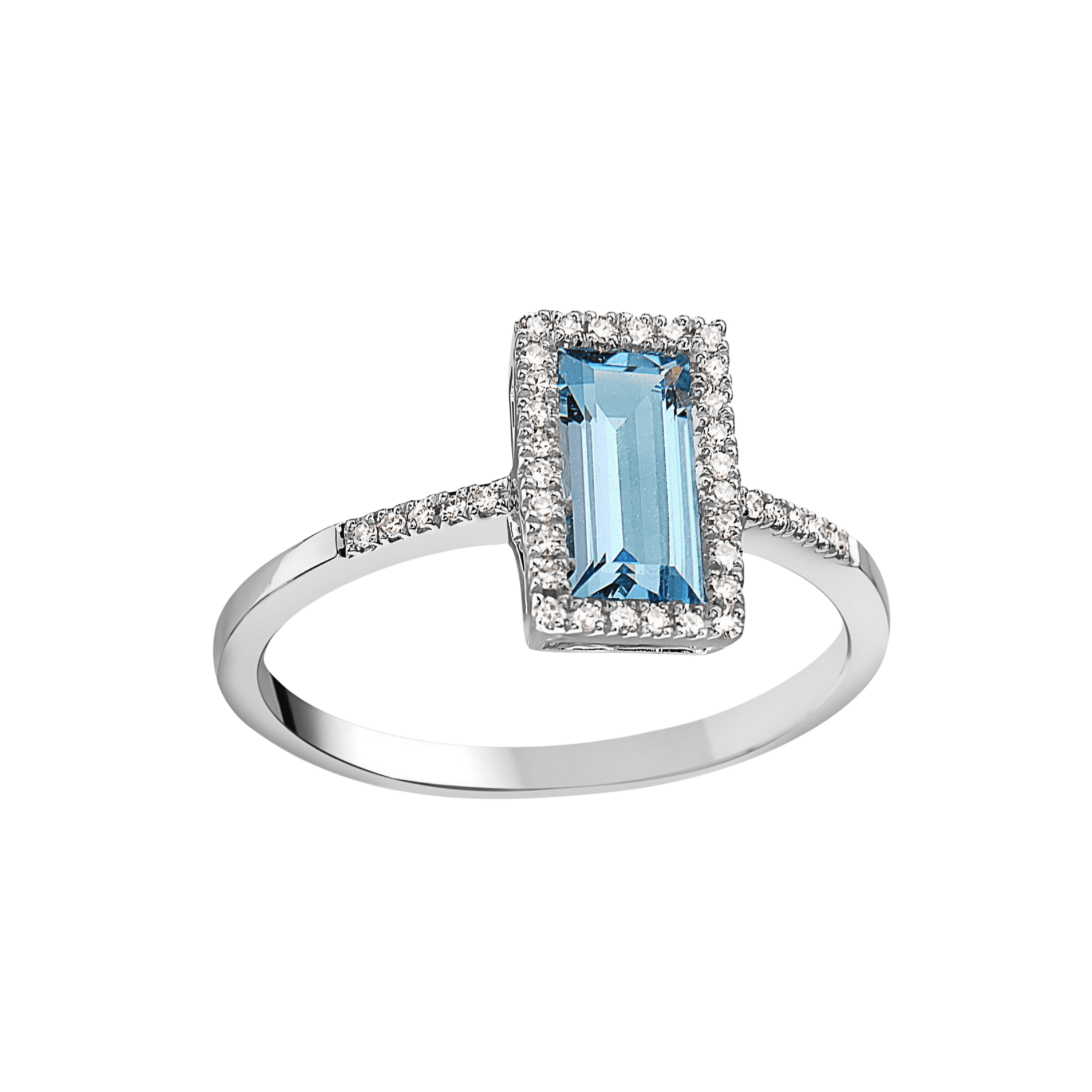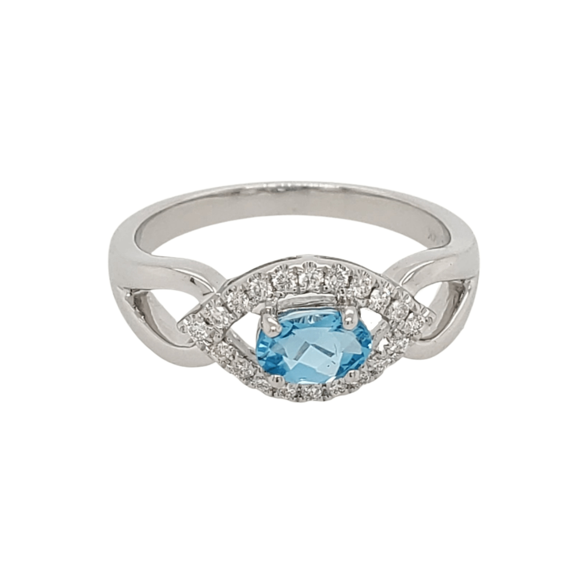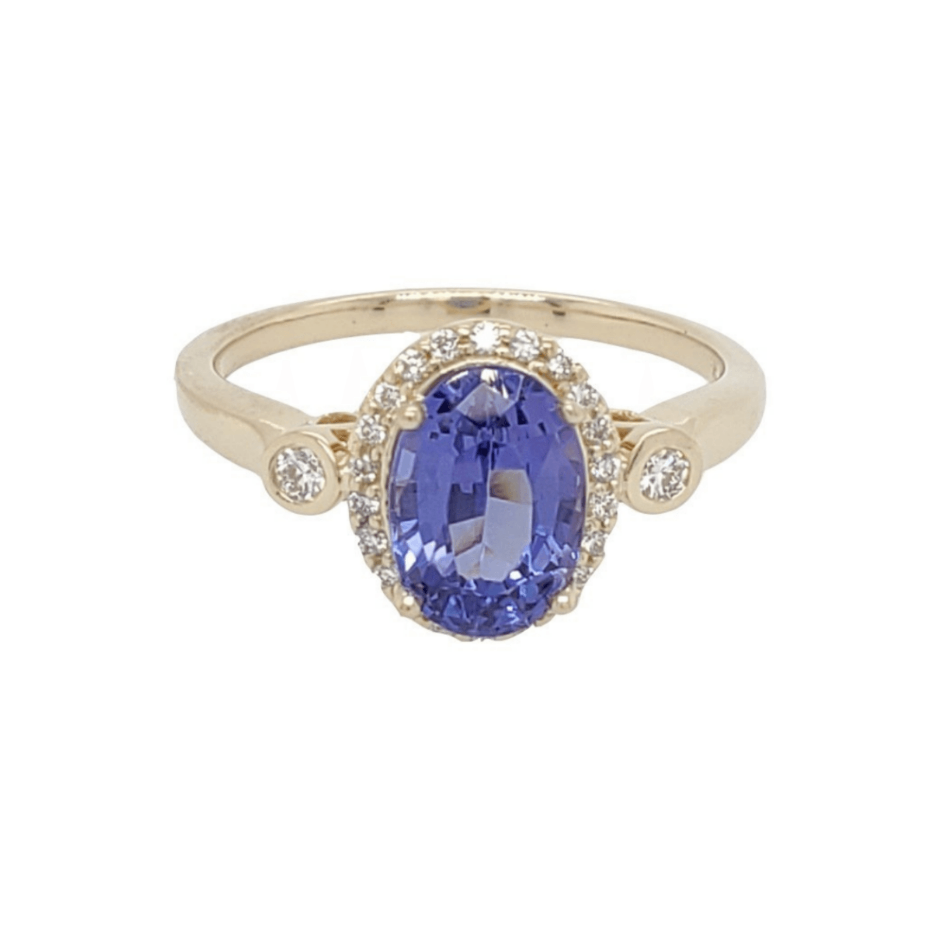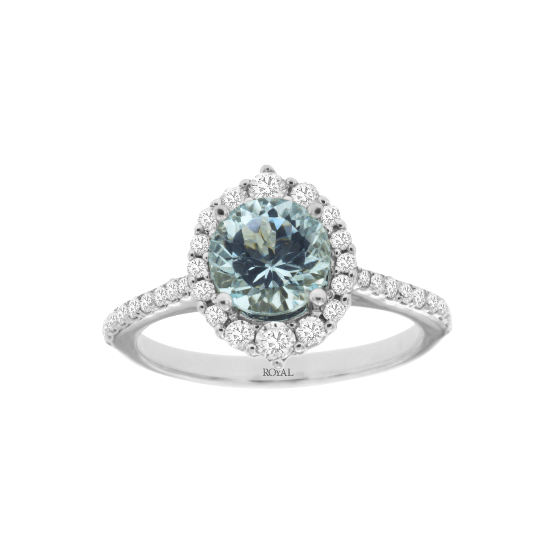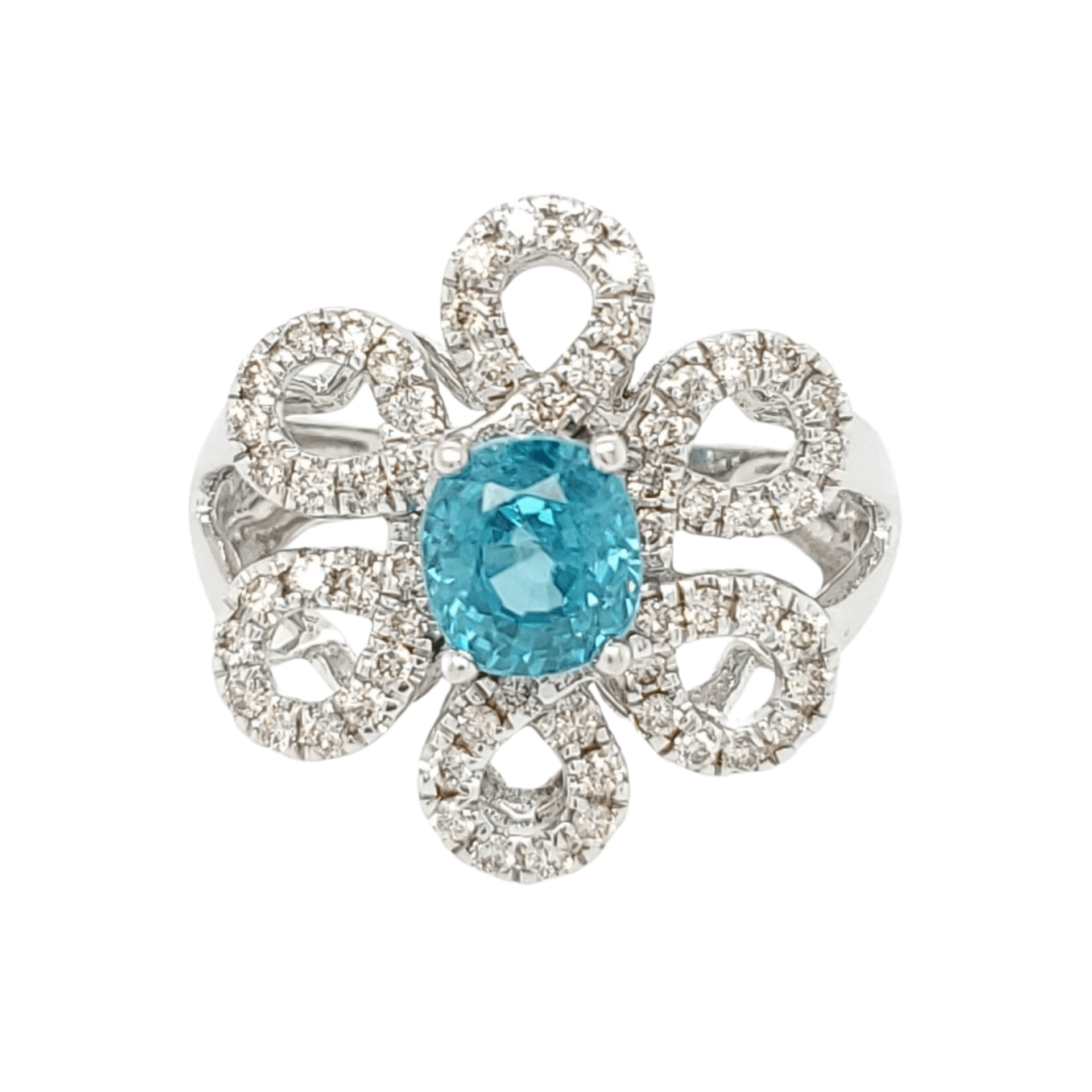 14K Yellow Gold Blue Zircon & Diamond Ring