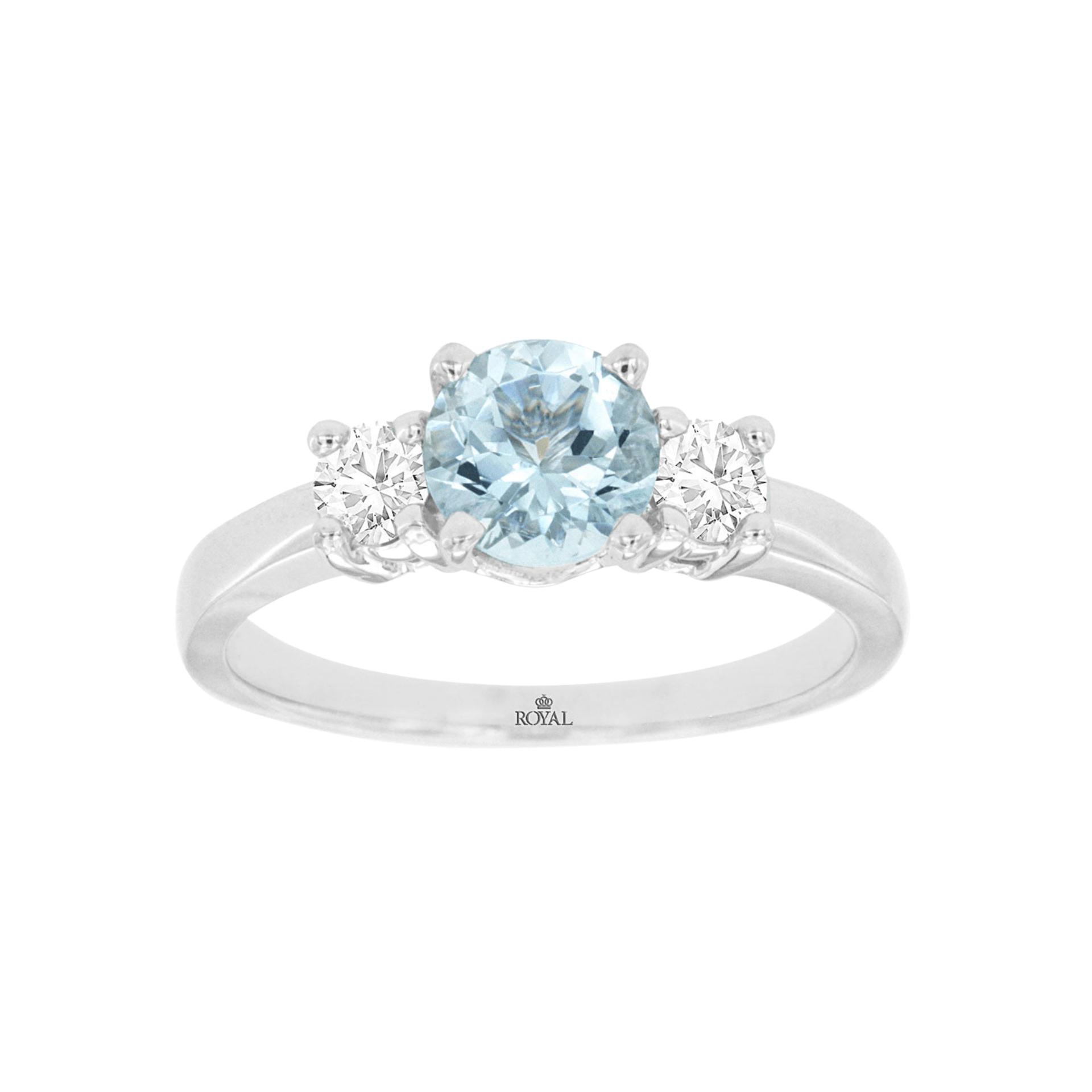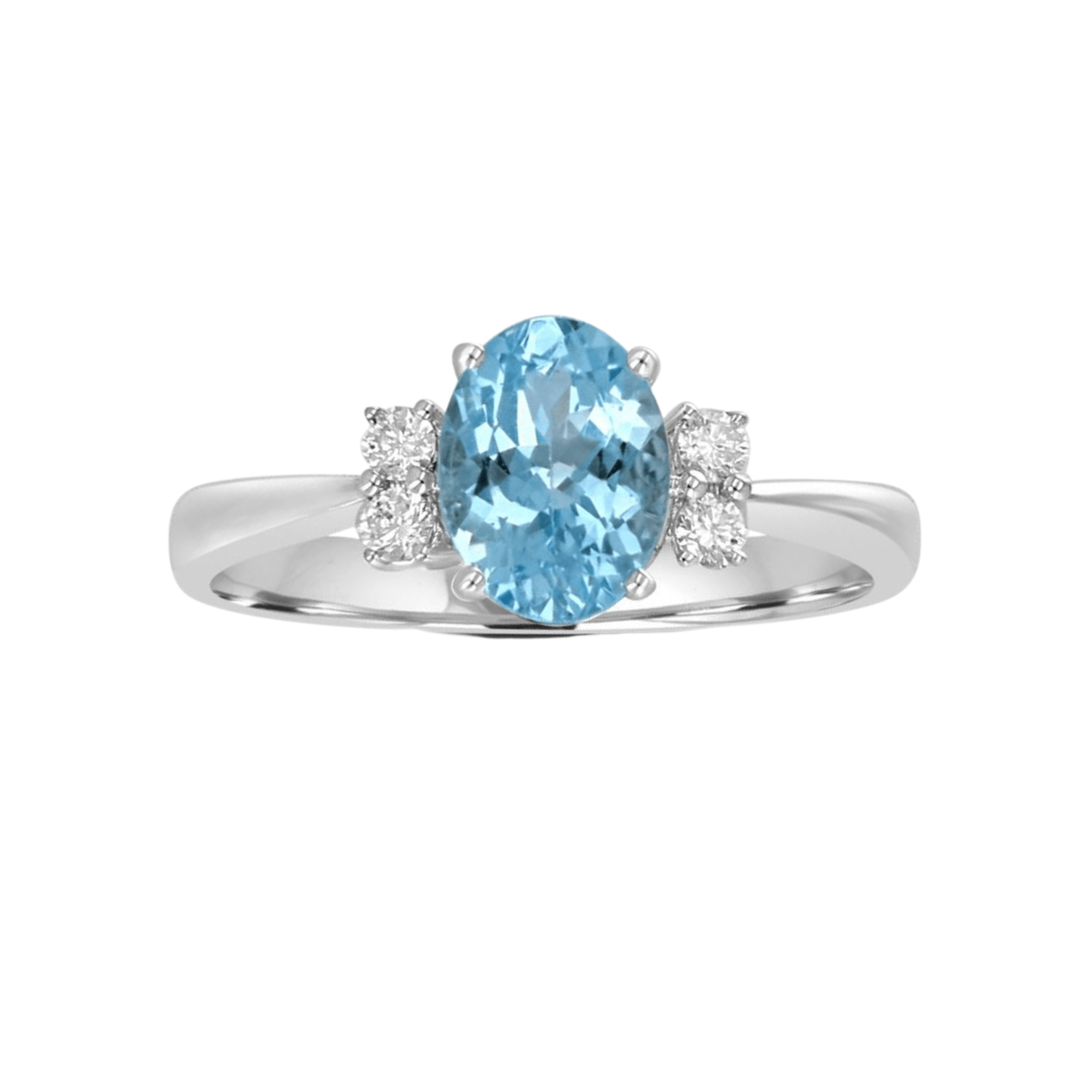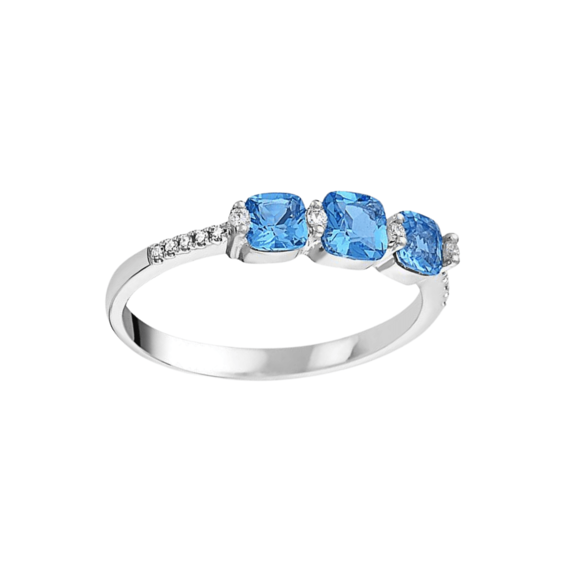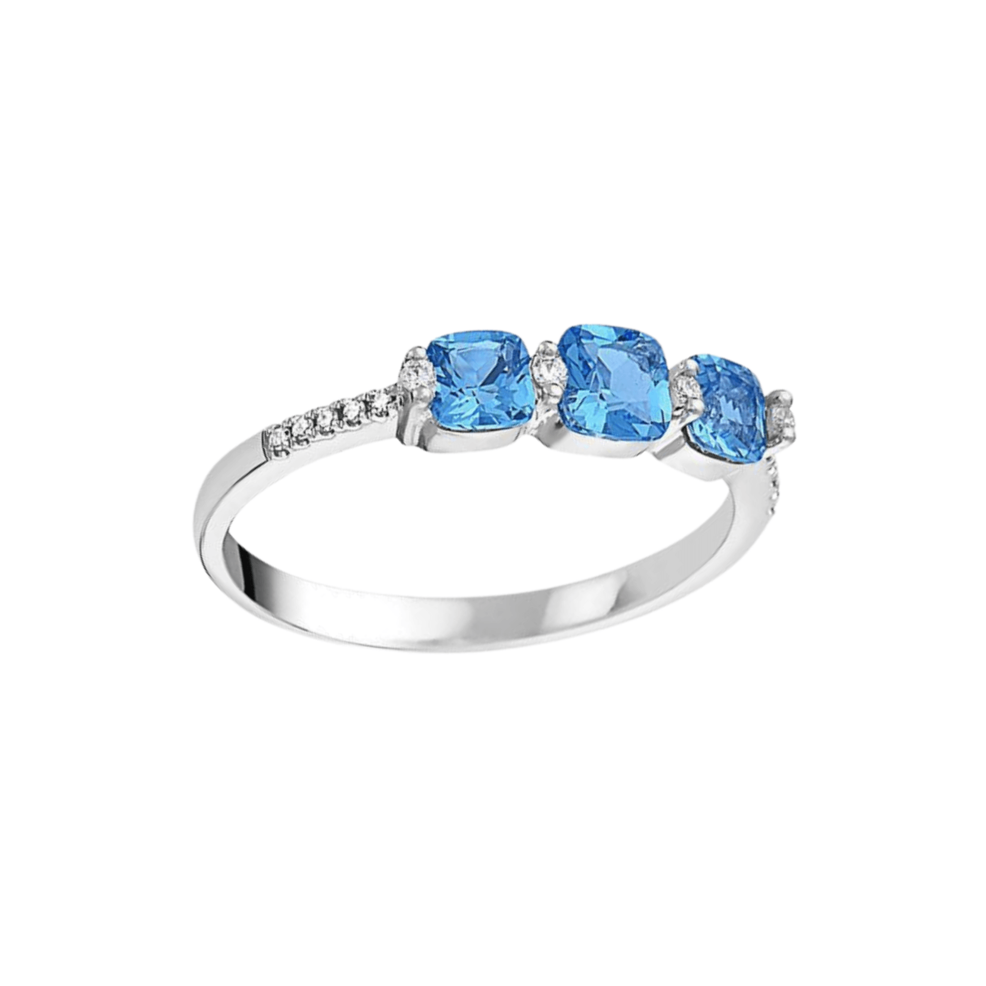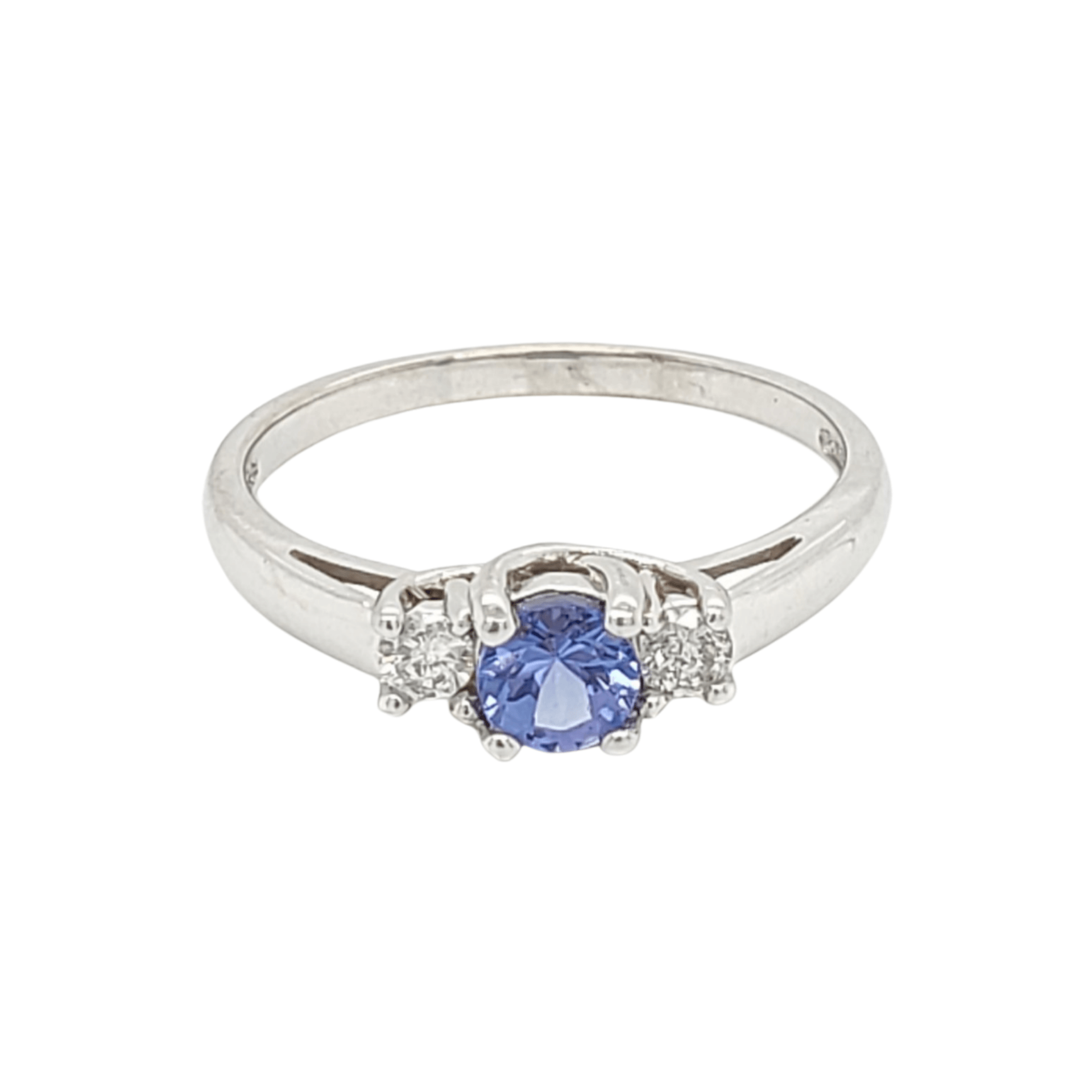 14K Yellow Gold Blue Zircon & Diamond Ring