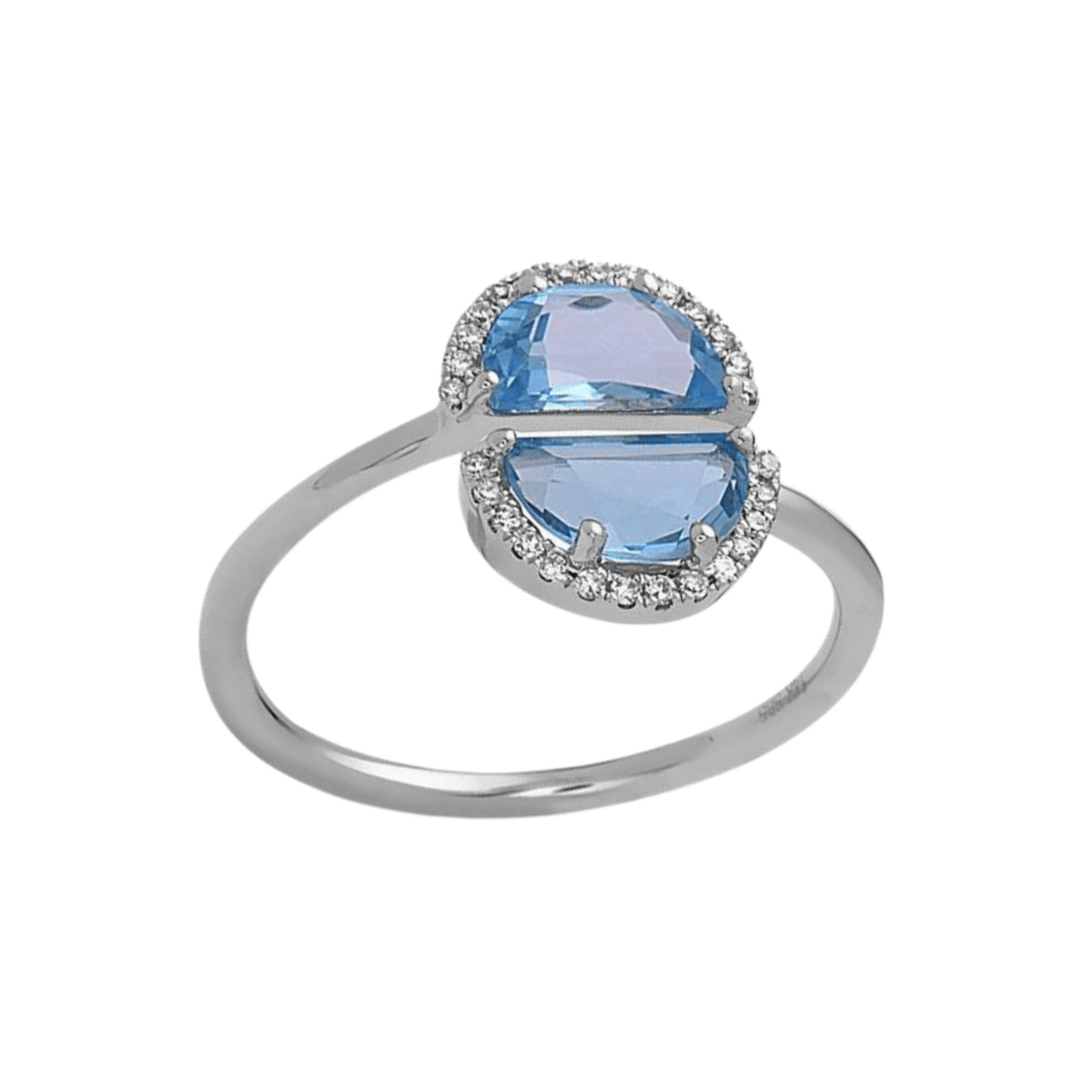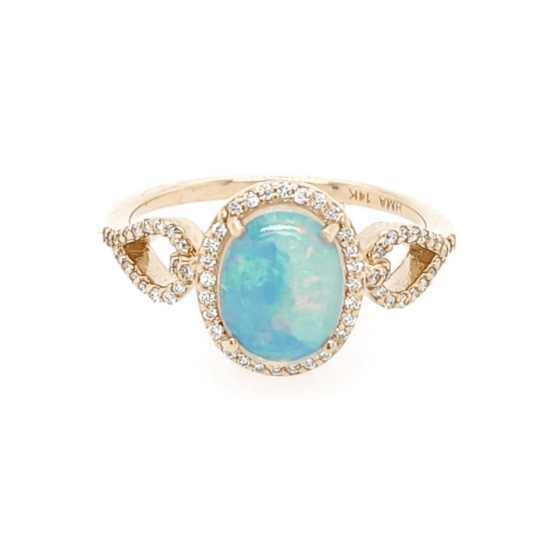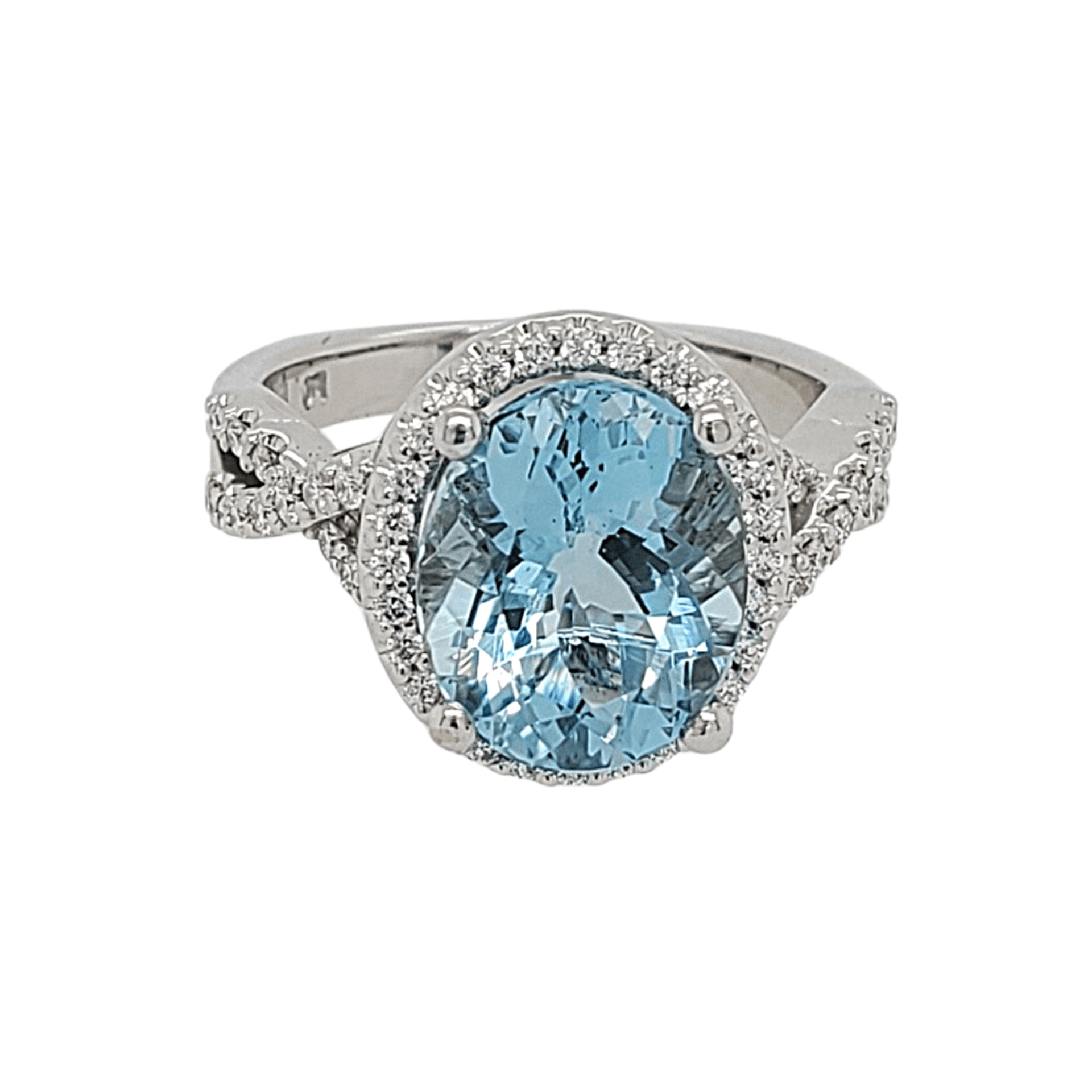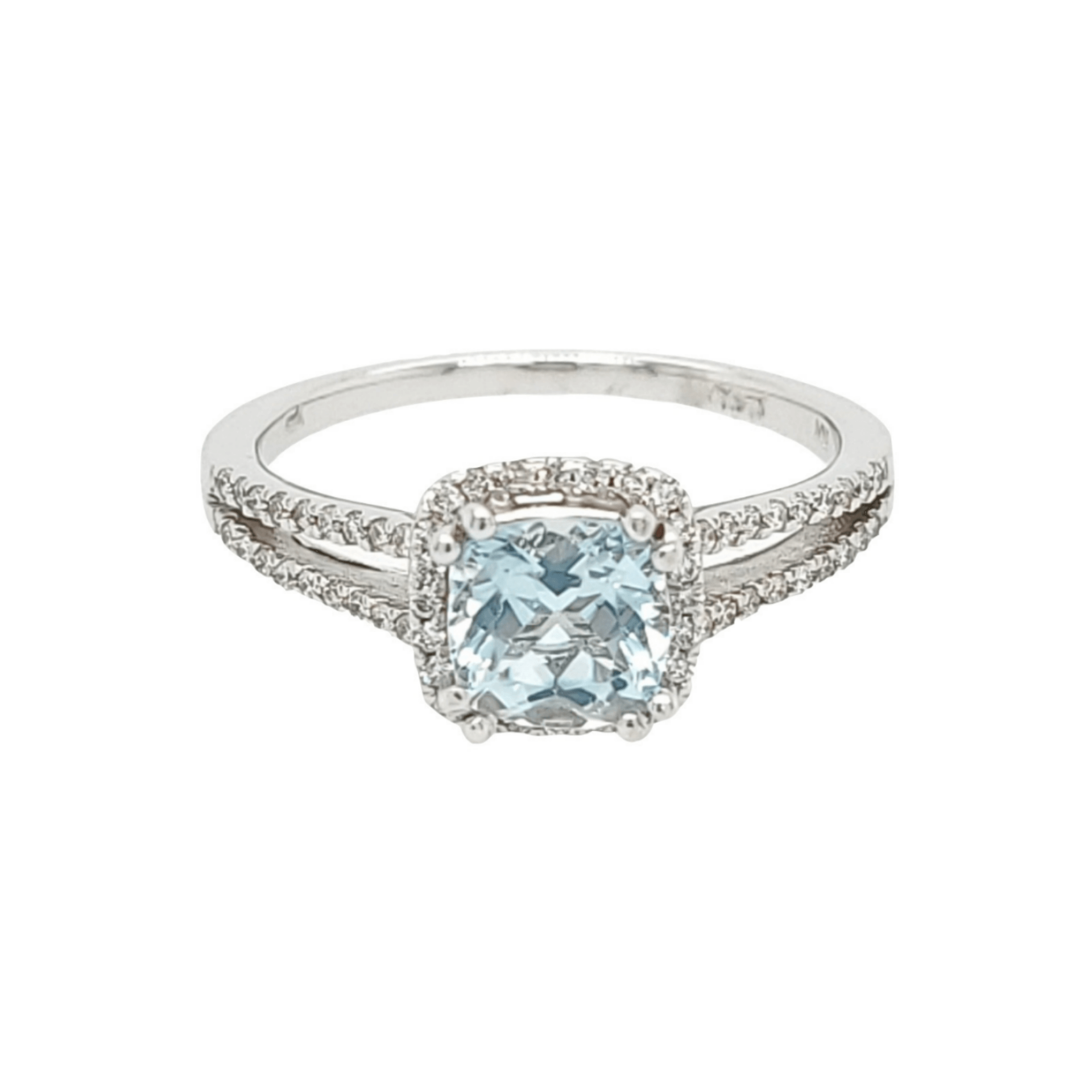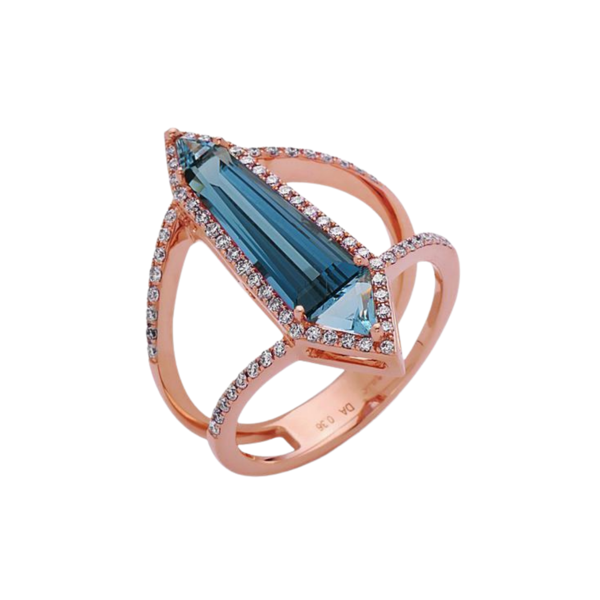 14K Yellow Gold Blue Zircon & Diamond Ring