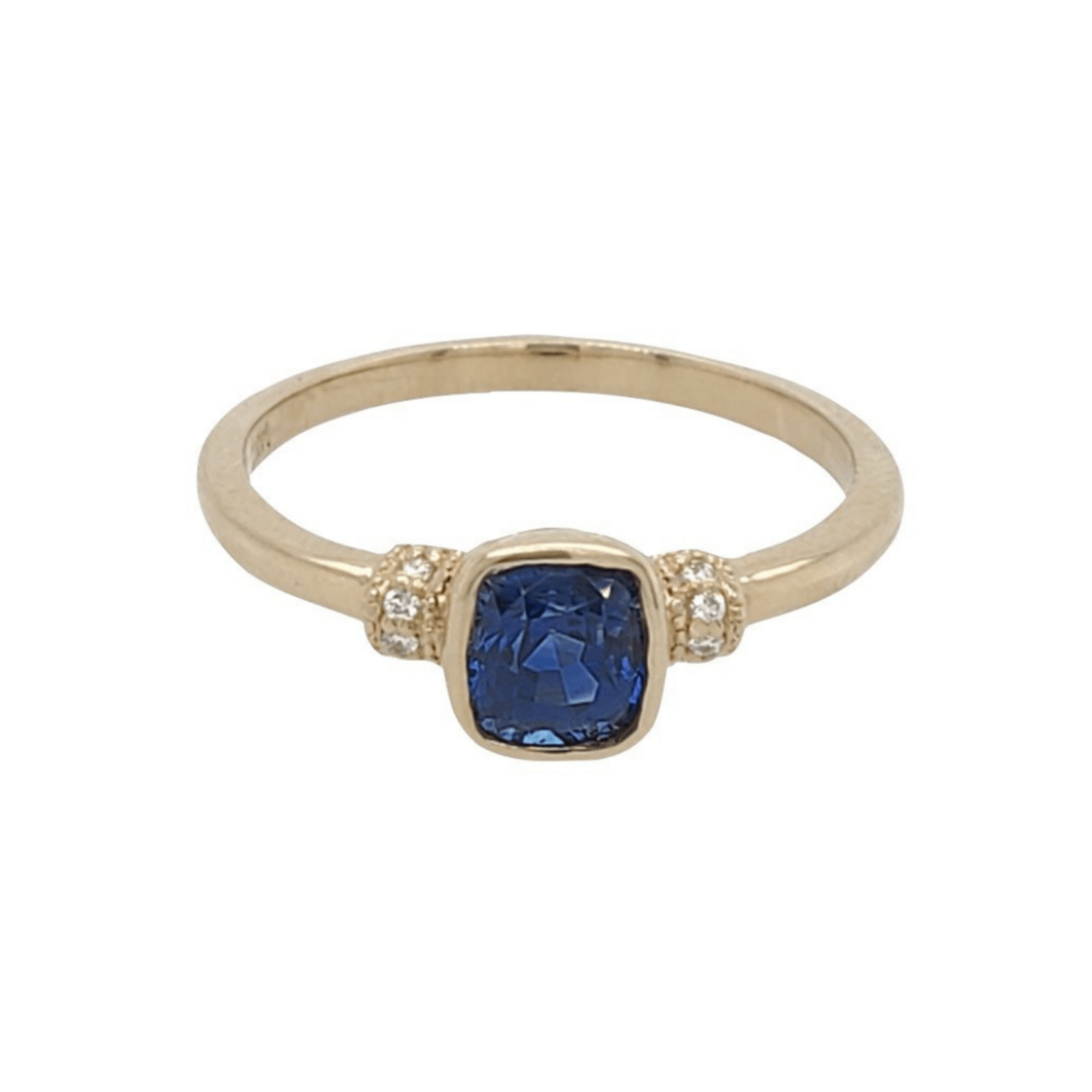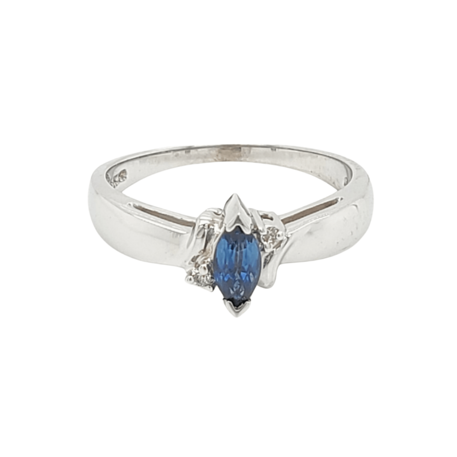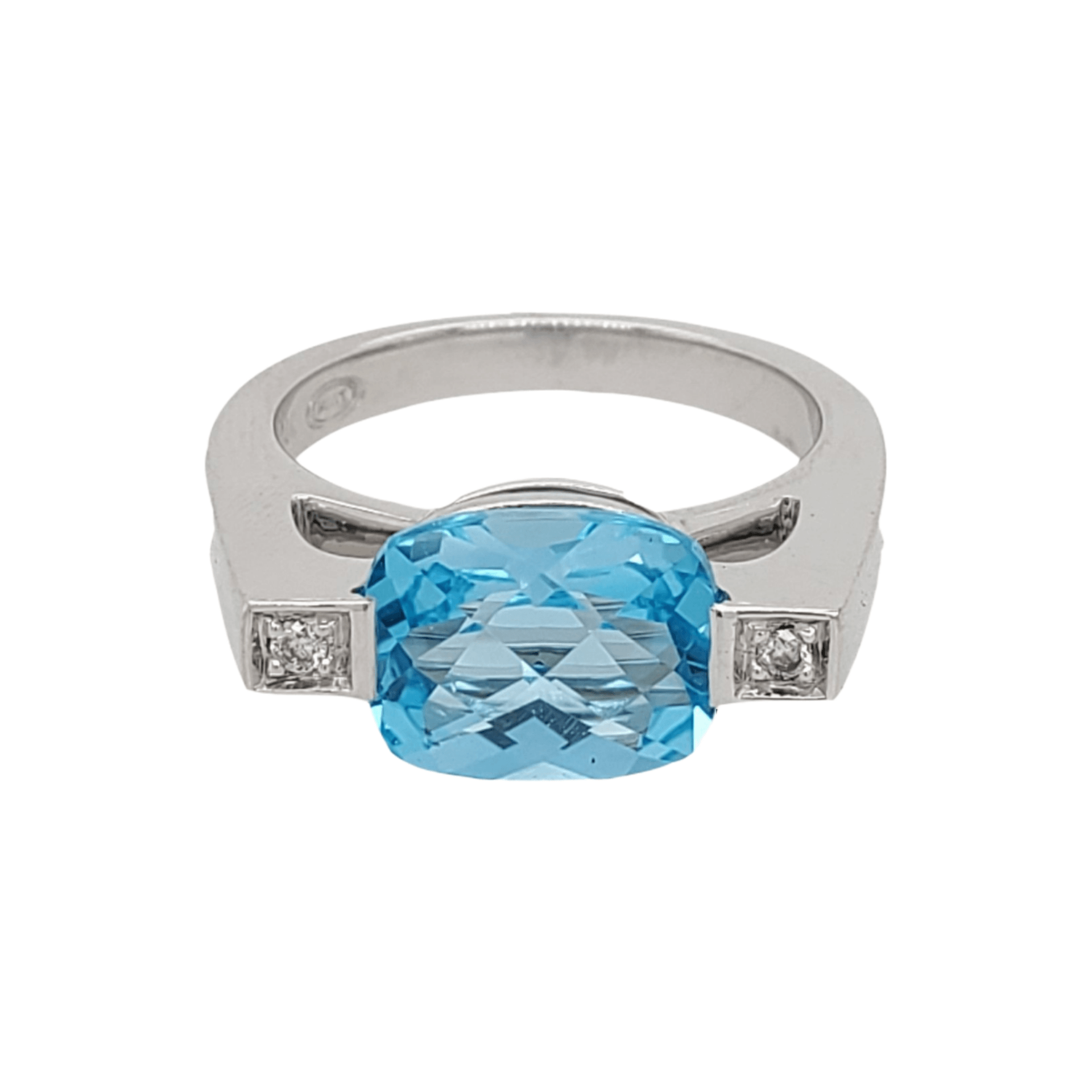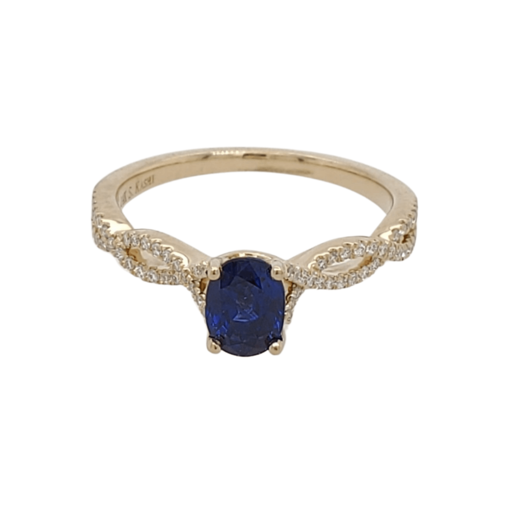 14K Yellow Gold Blue Zircon & Diamond Ring