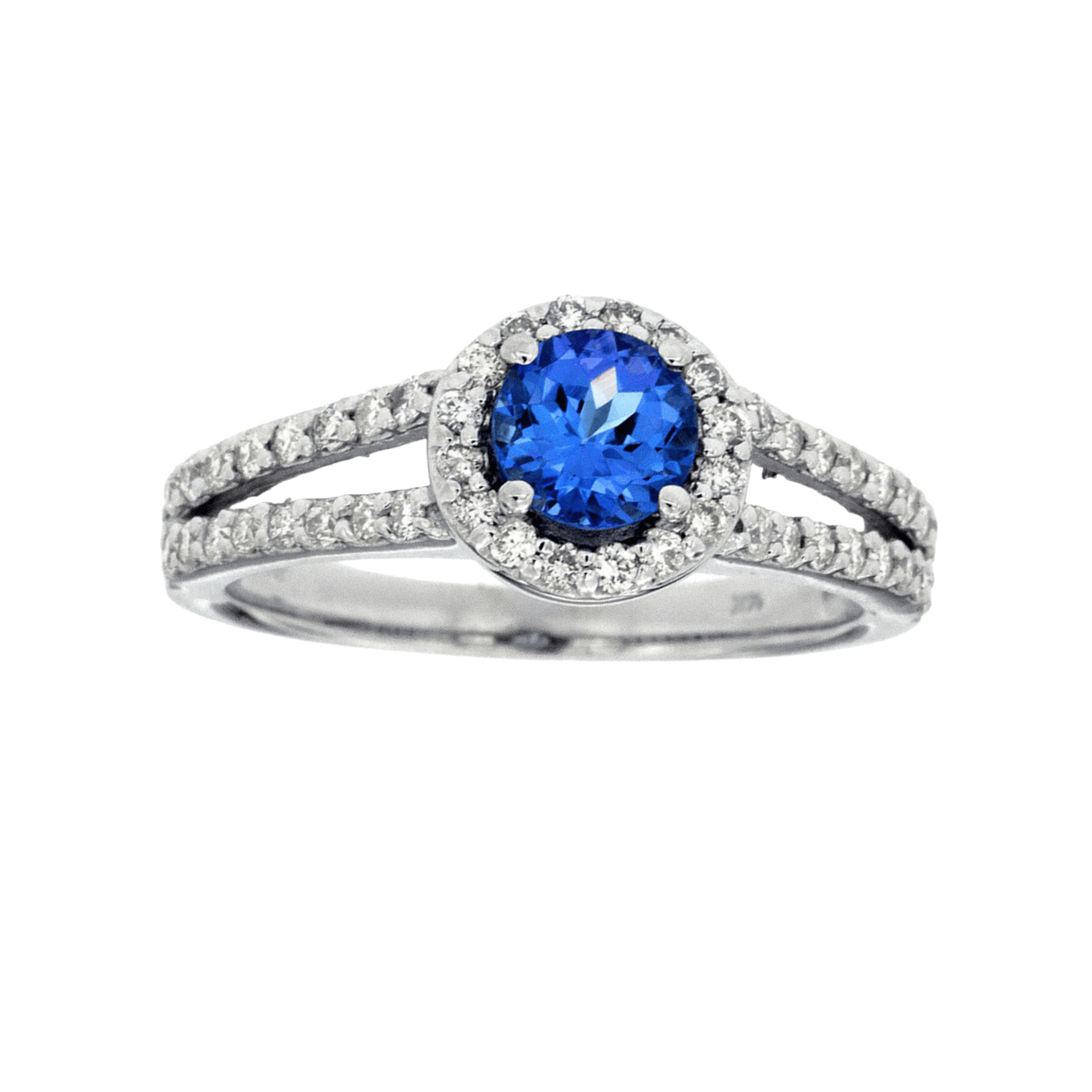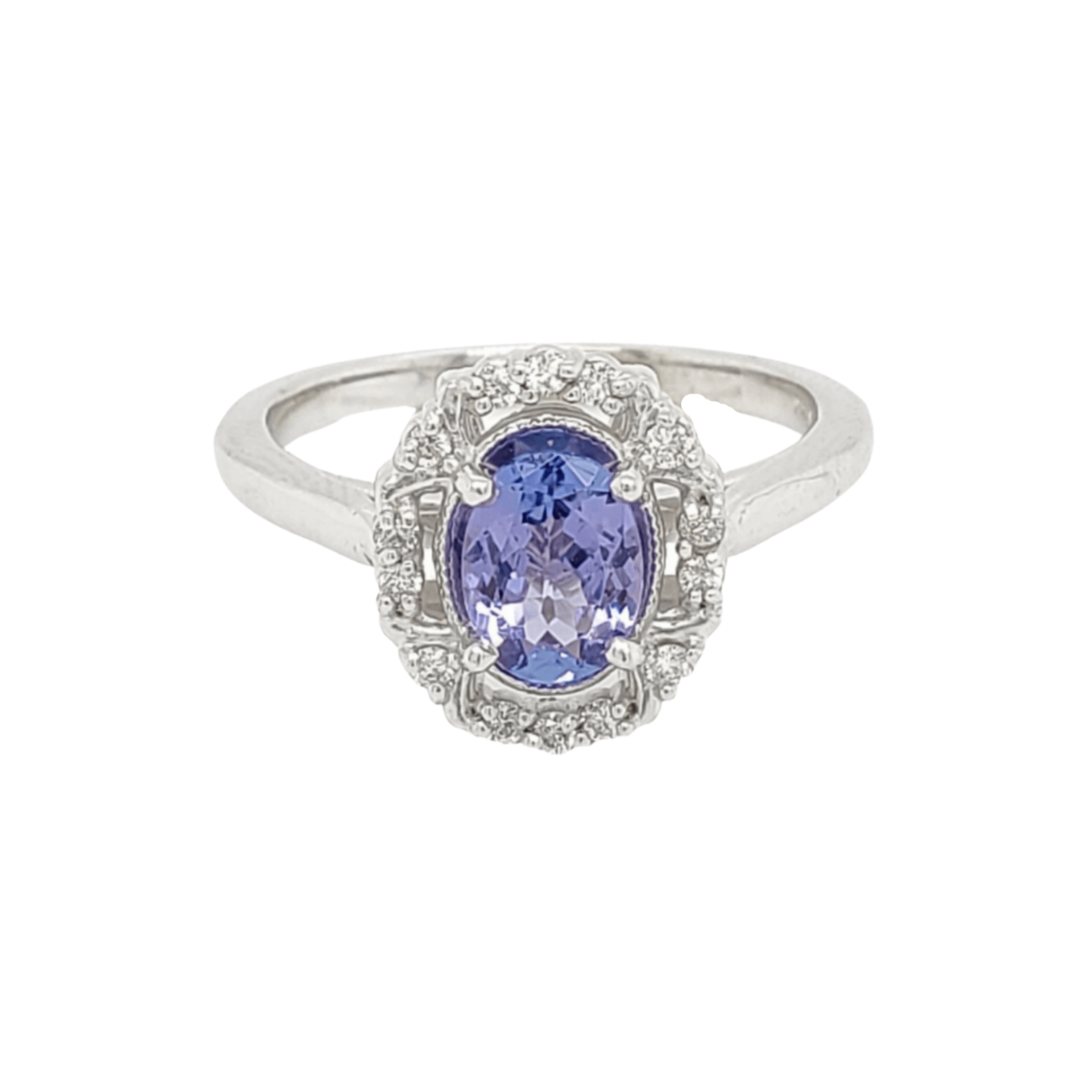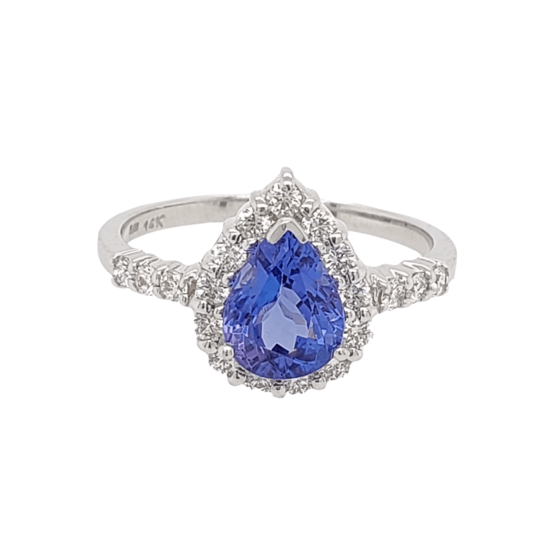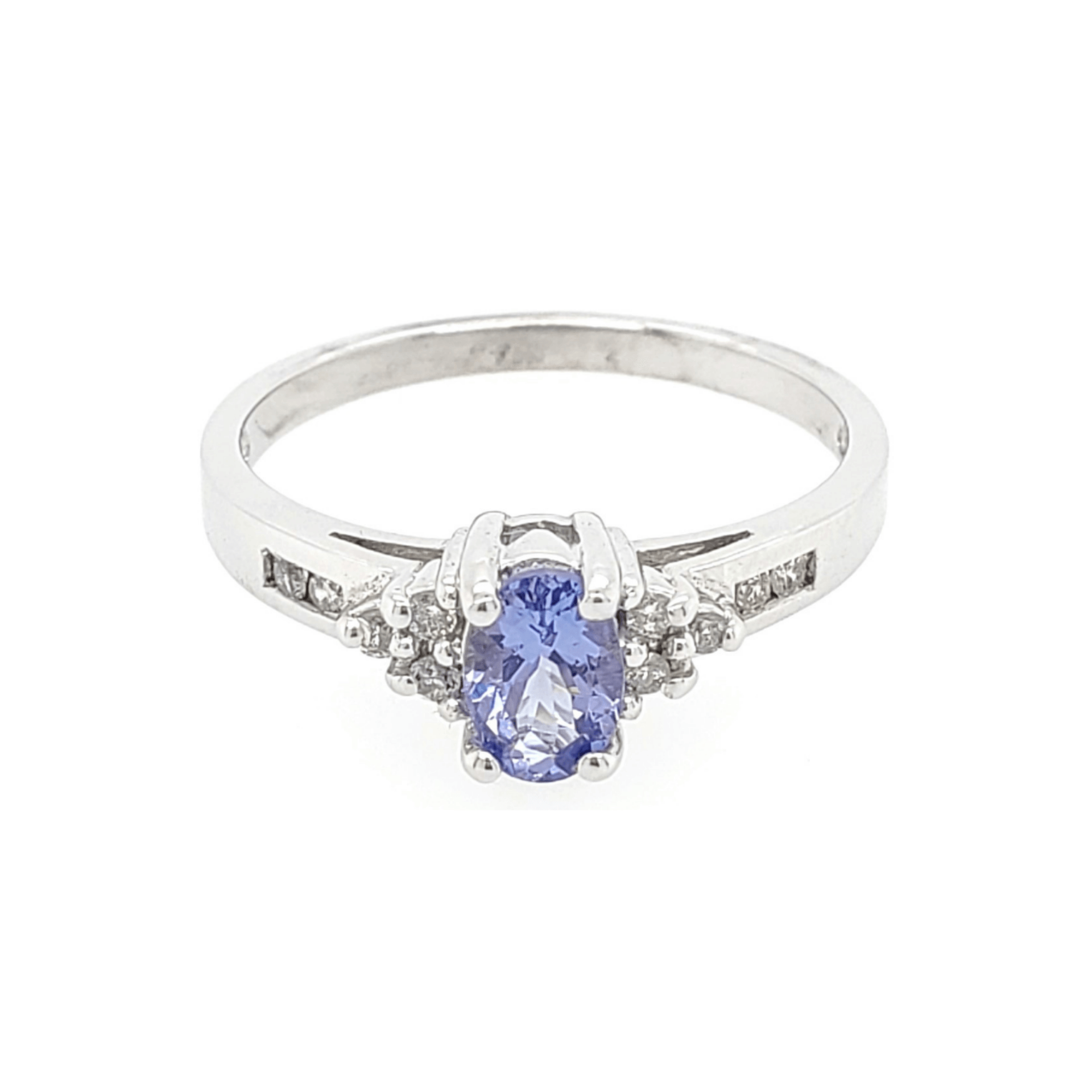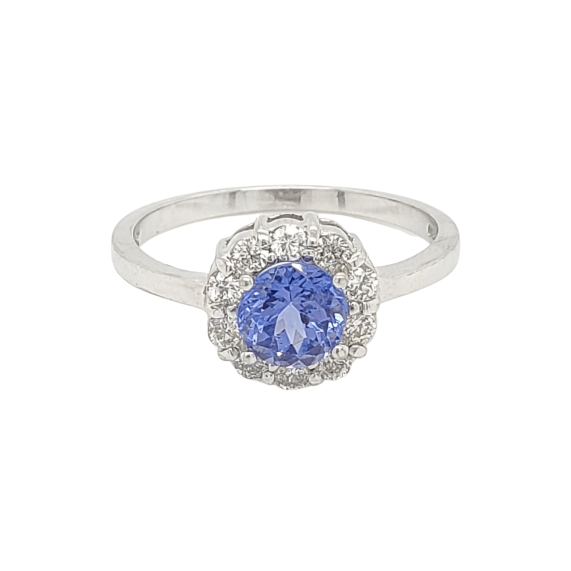14K Yellow Gold Blue Zircon & Diamond Ring