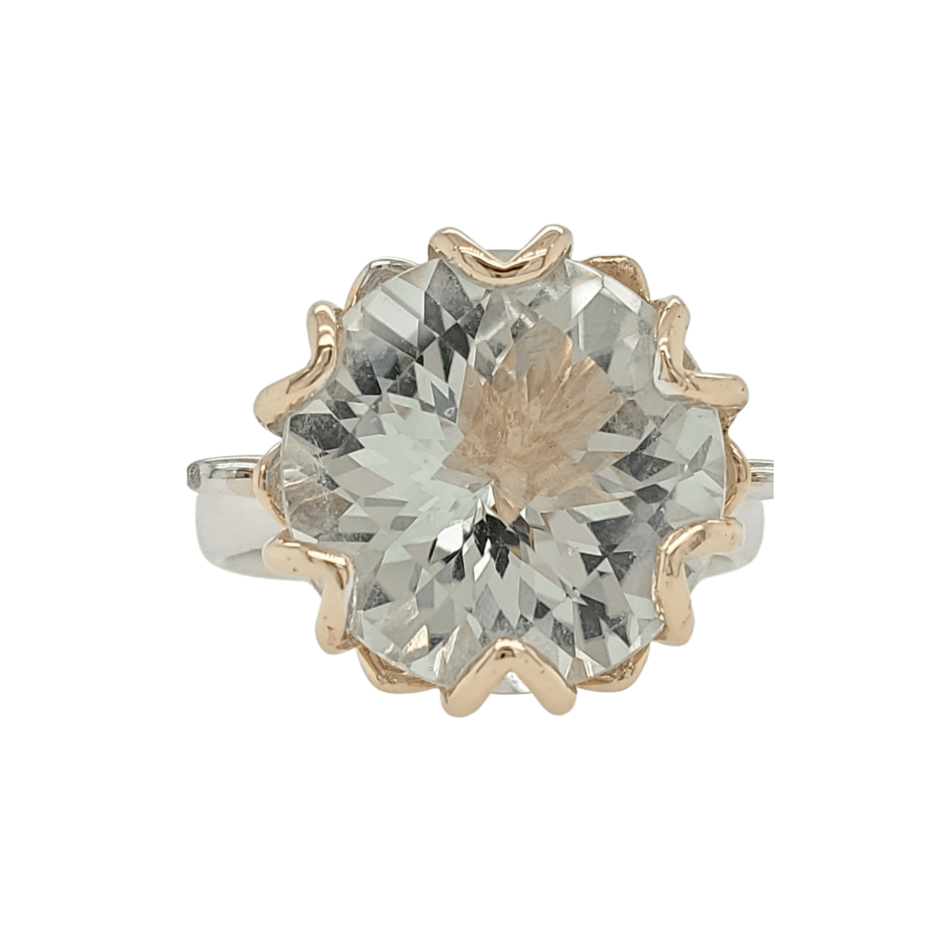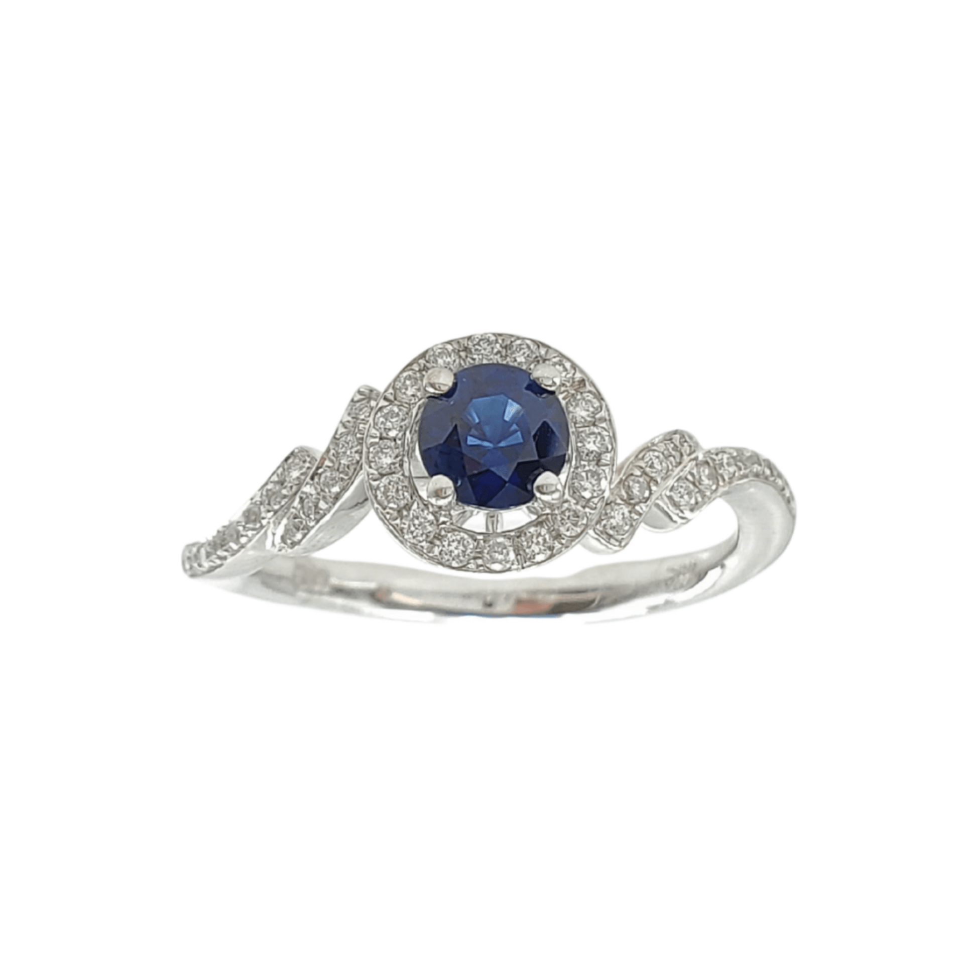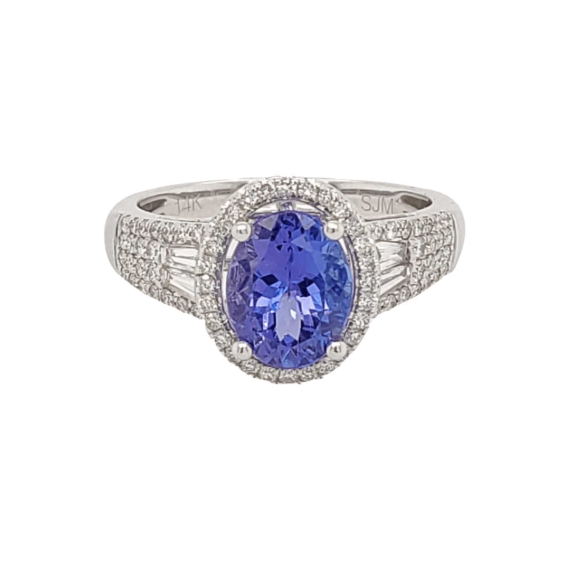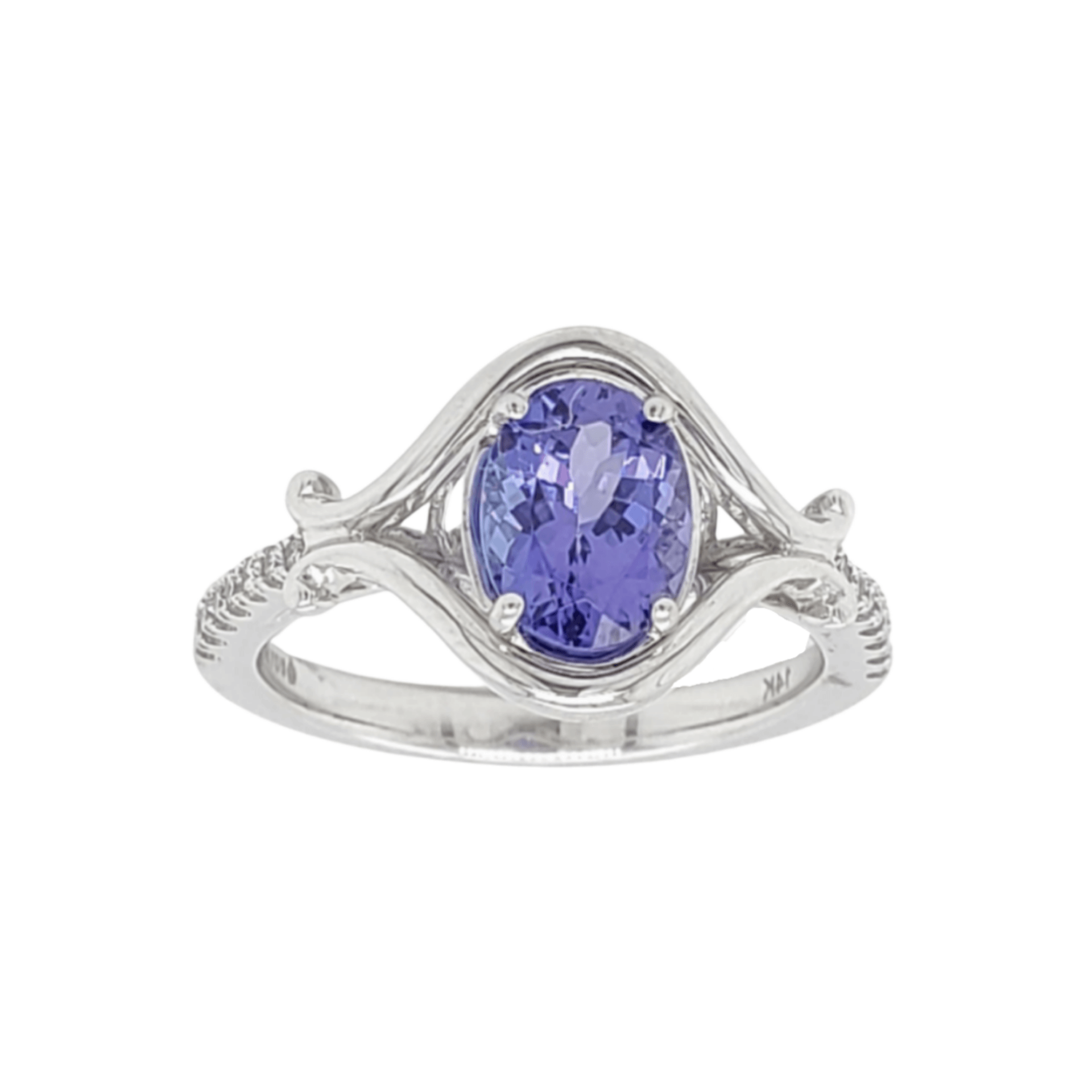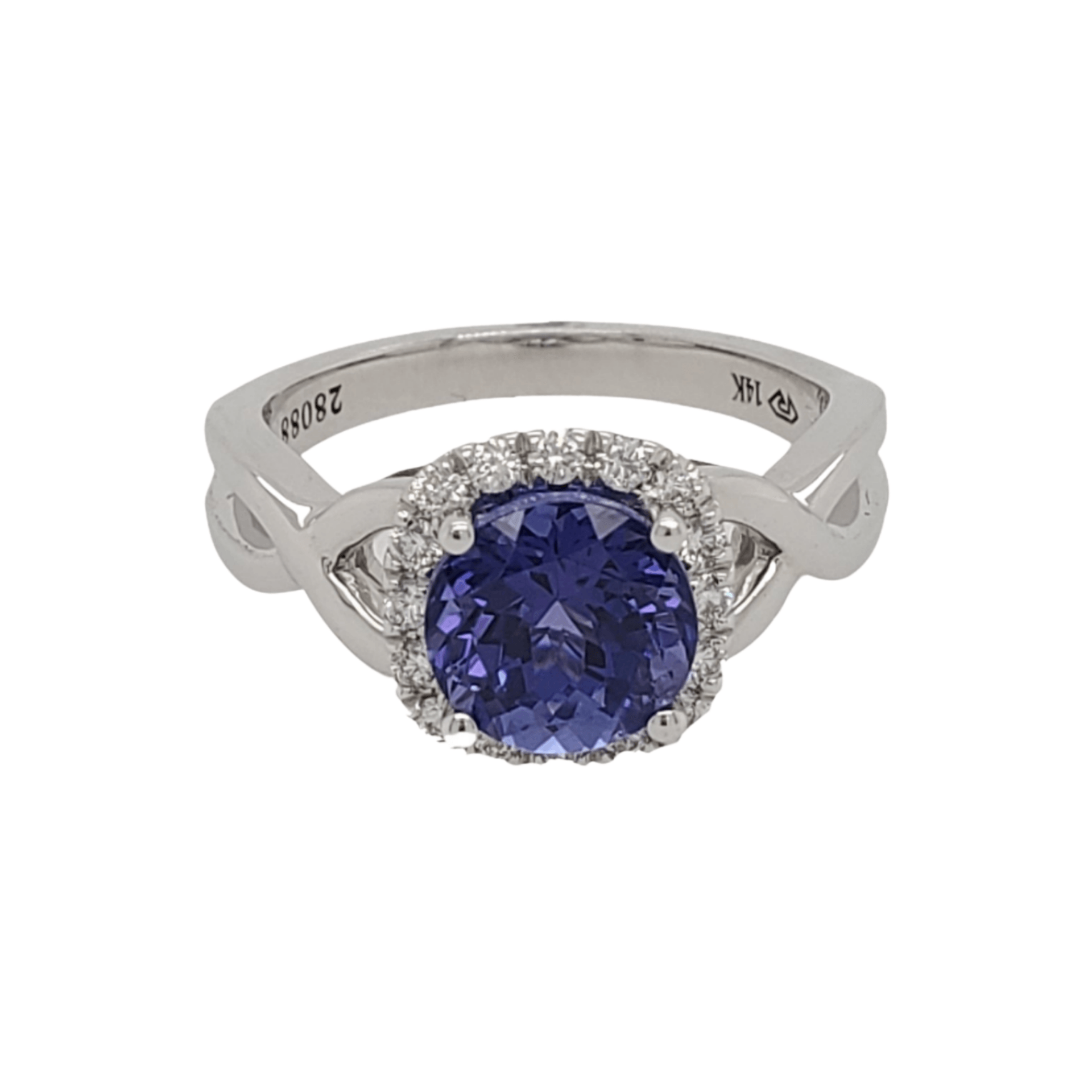 14K Yellow Gold Blue Zircon & Diamond Ring