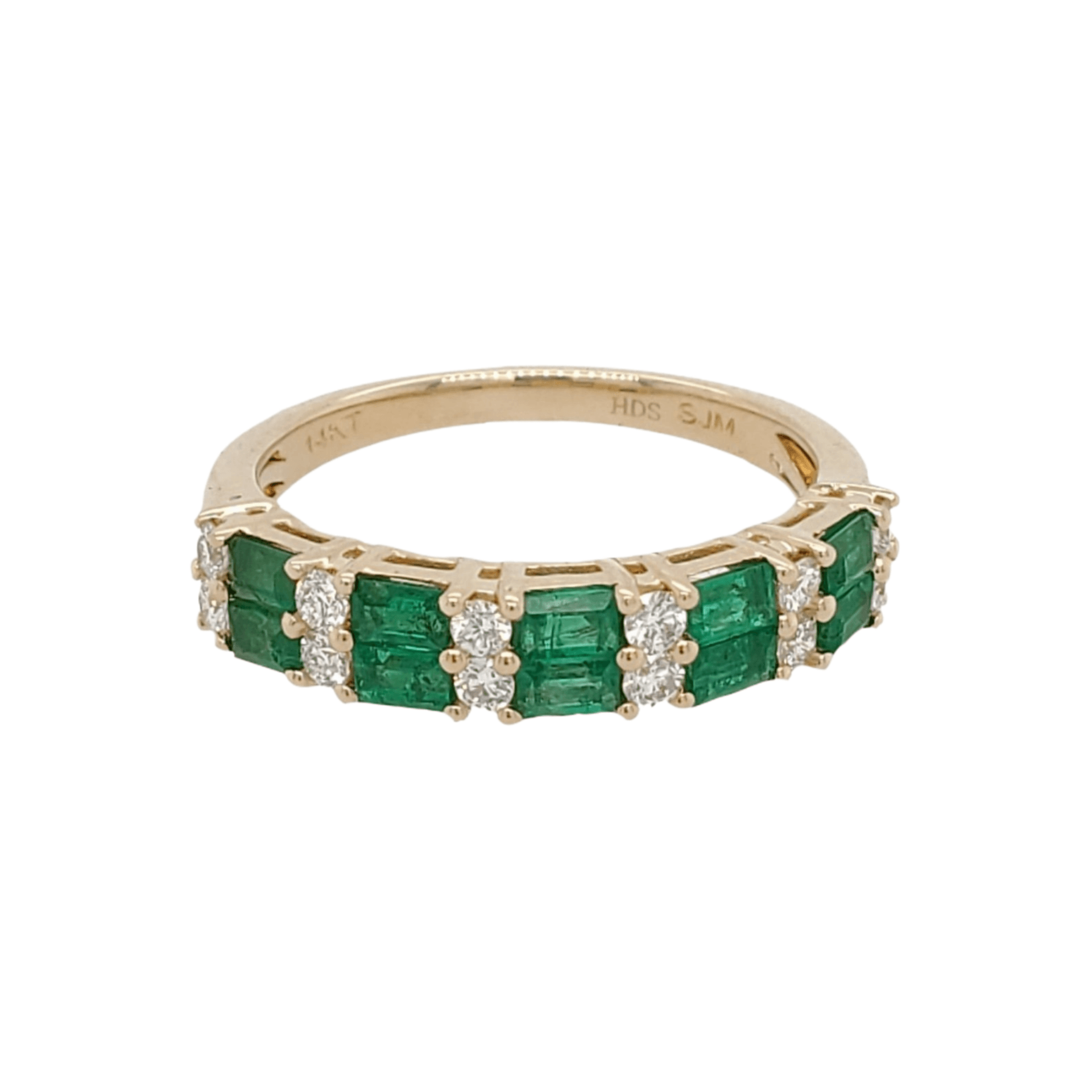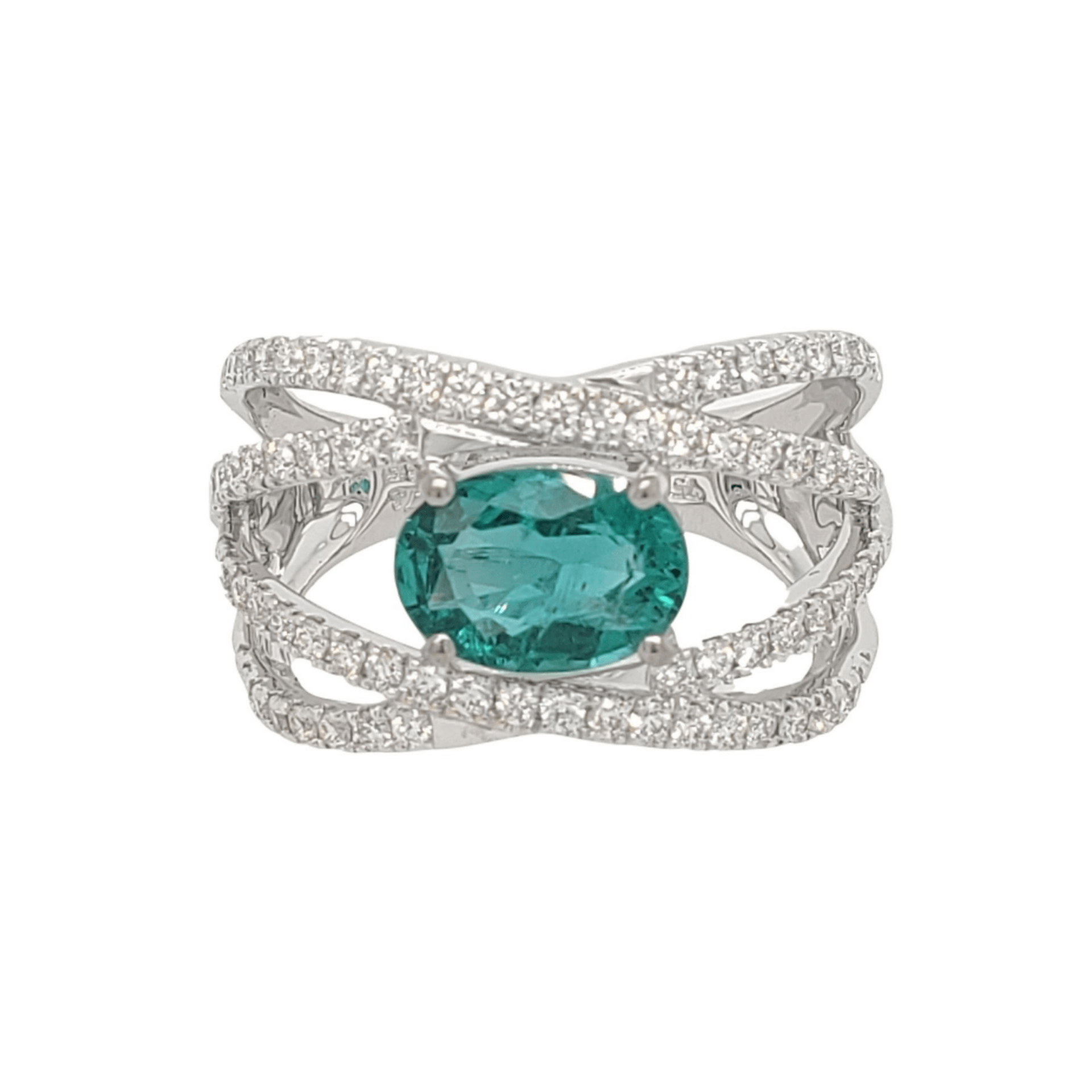 Green Tourmaline with eight baguette diamonds and eight round diamonds