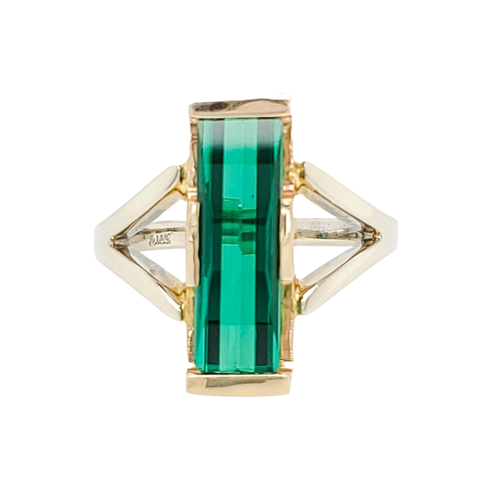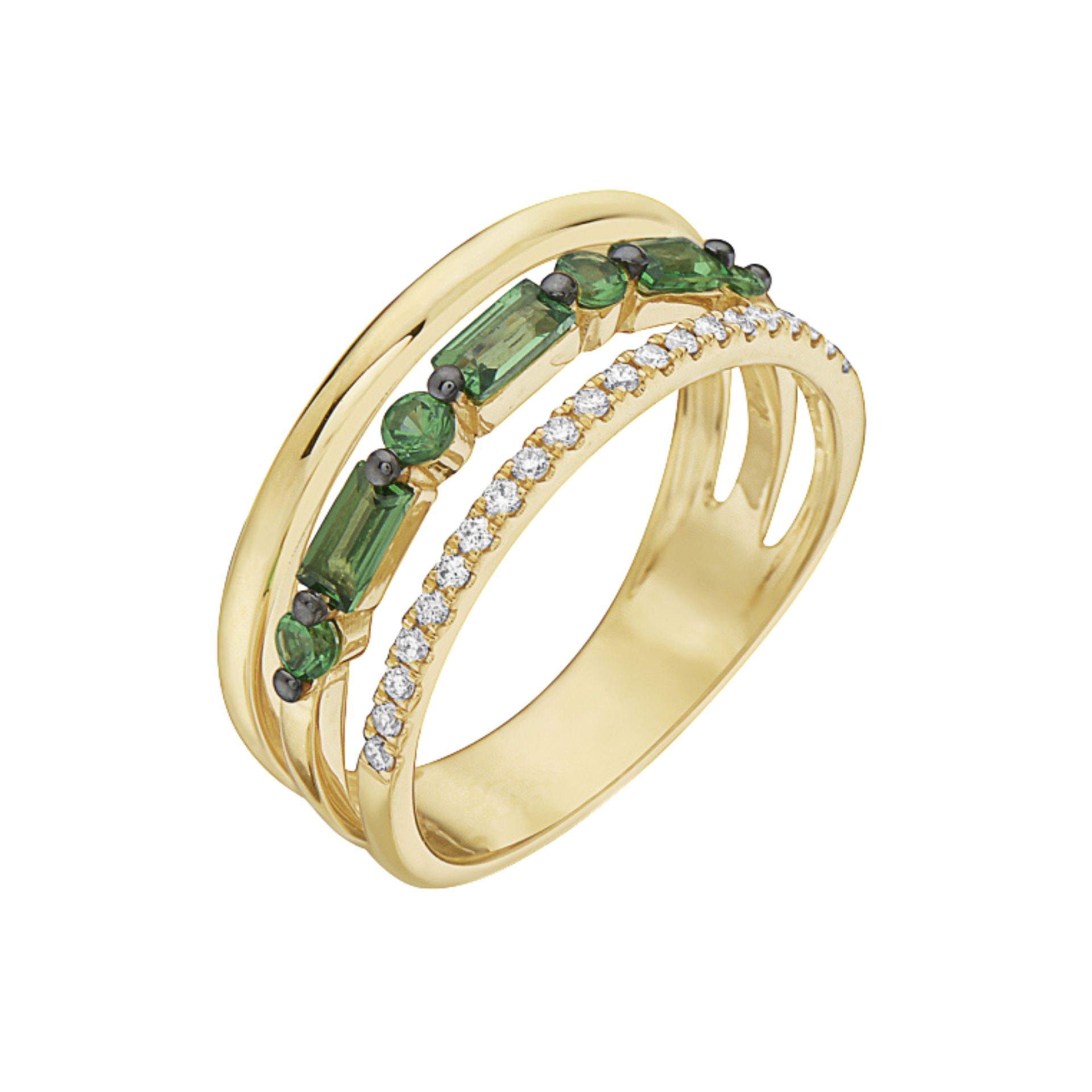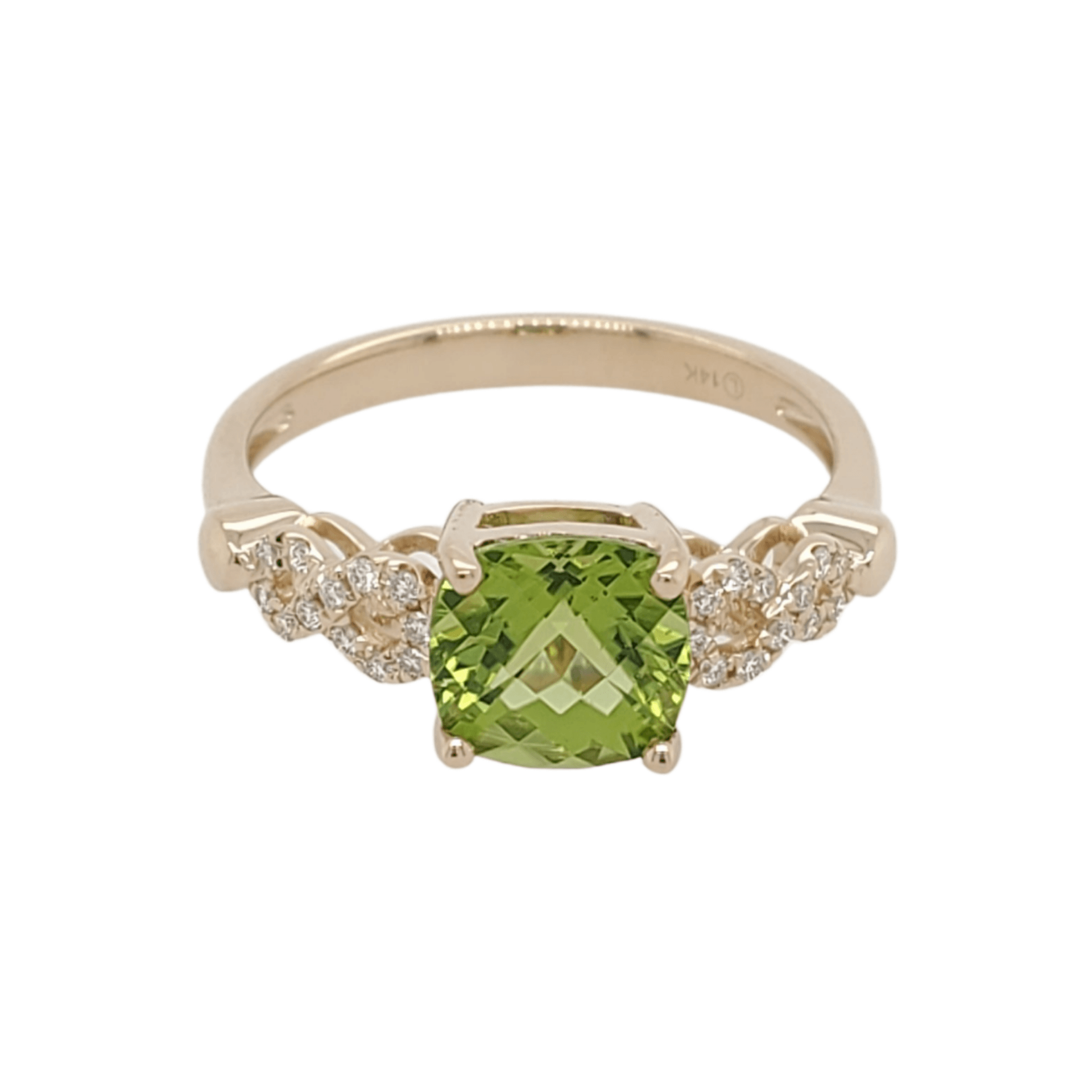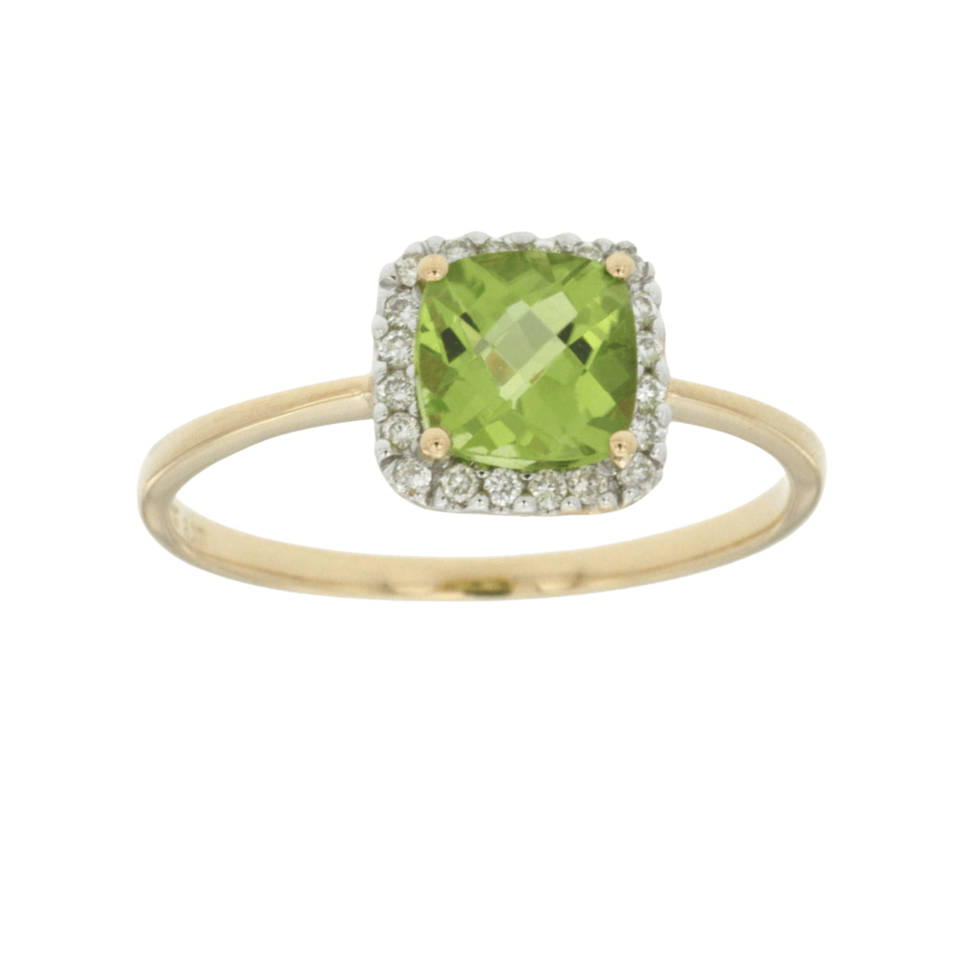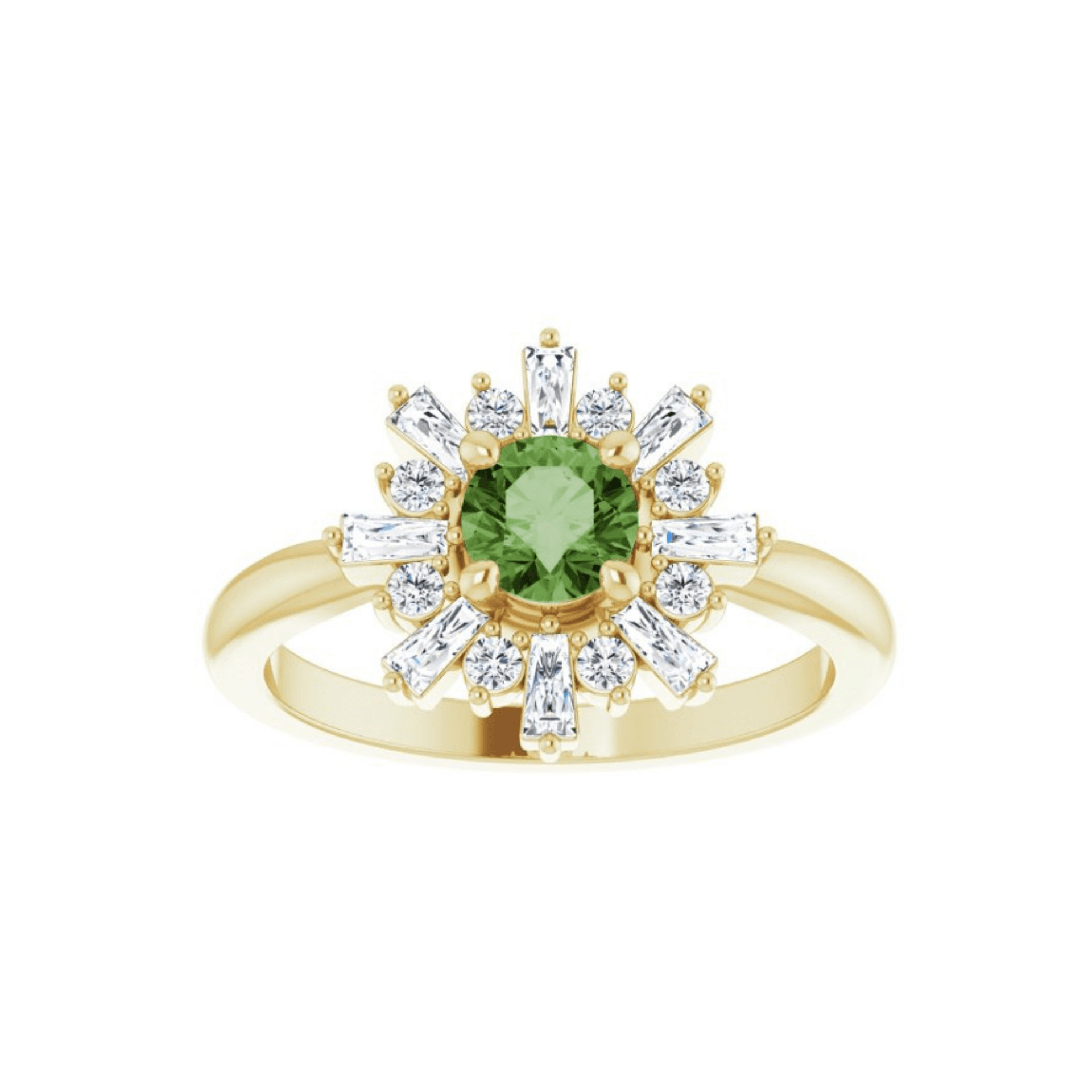 14K Yellow Gold Green Tourmaline & Diamond Ring