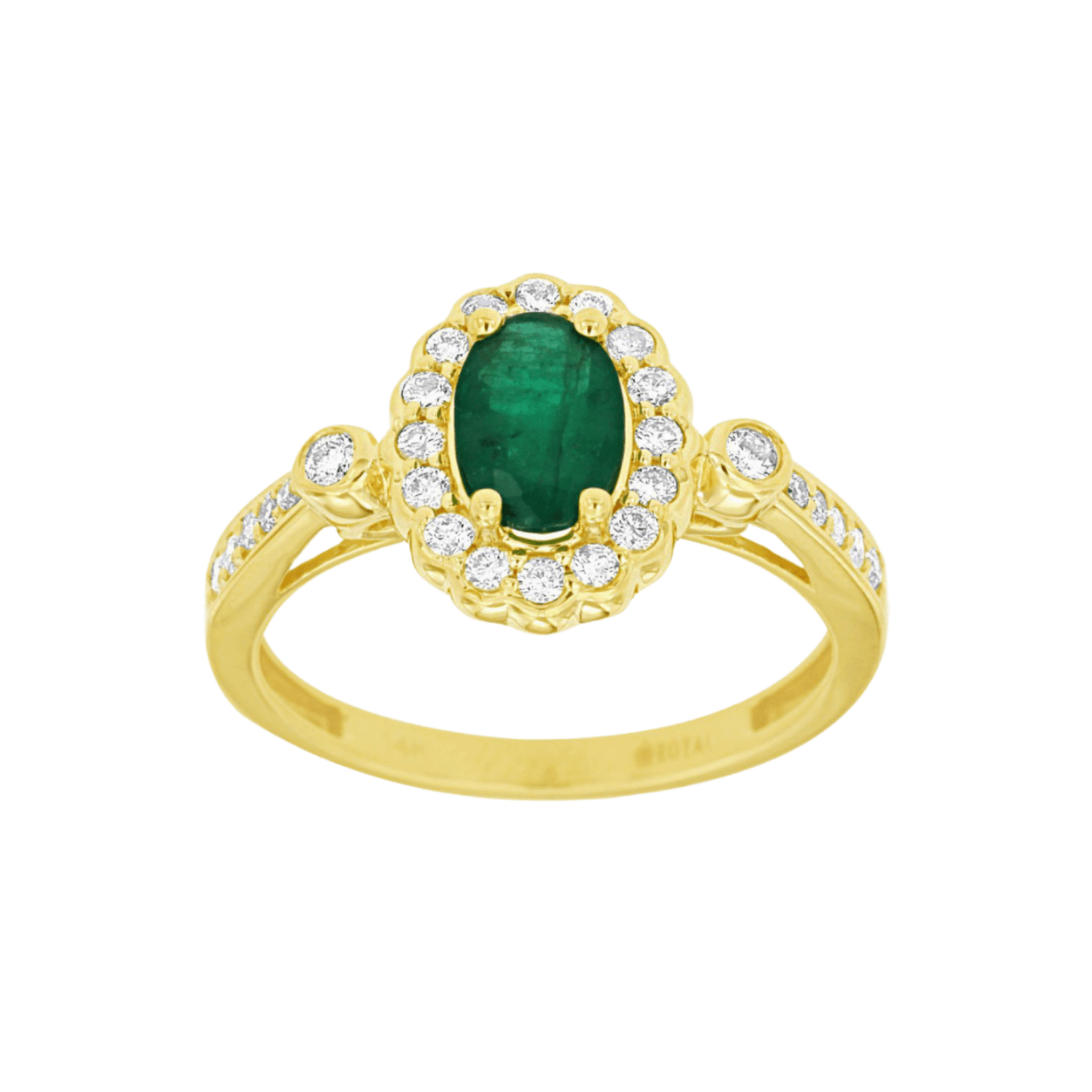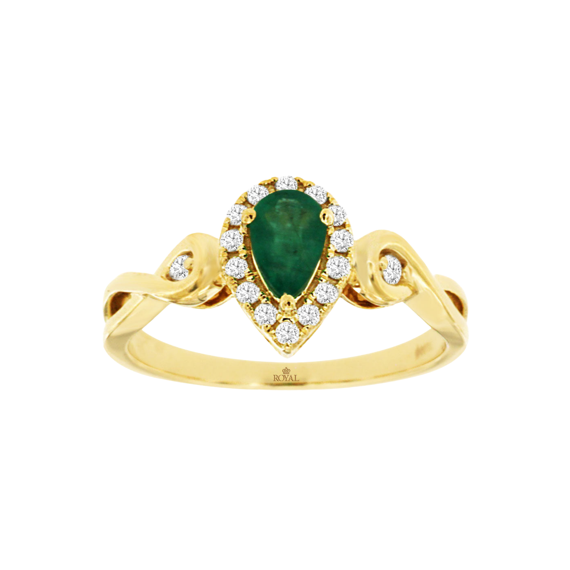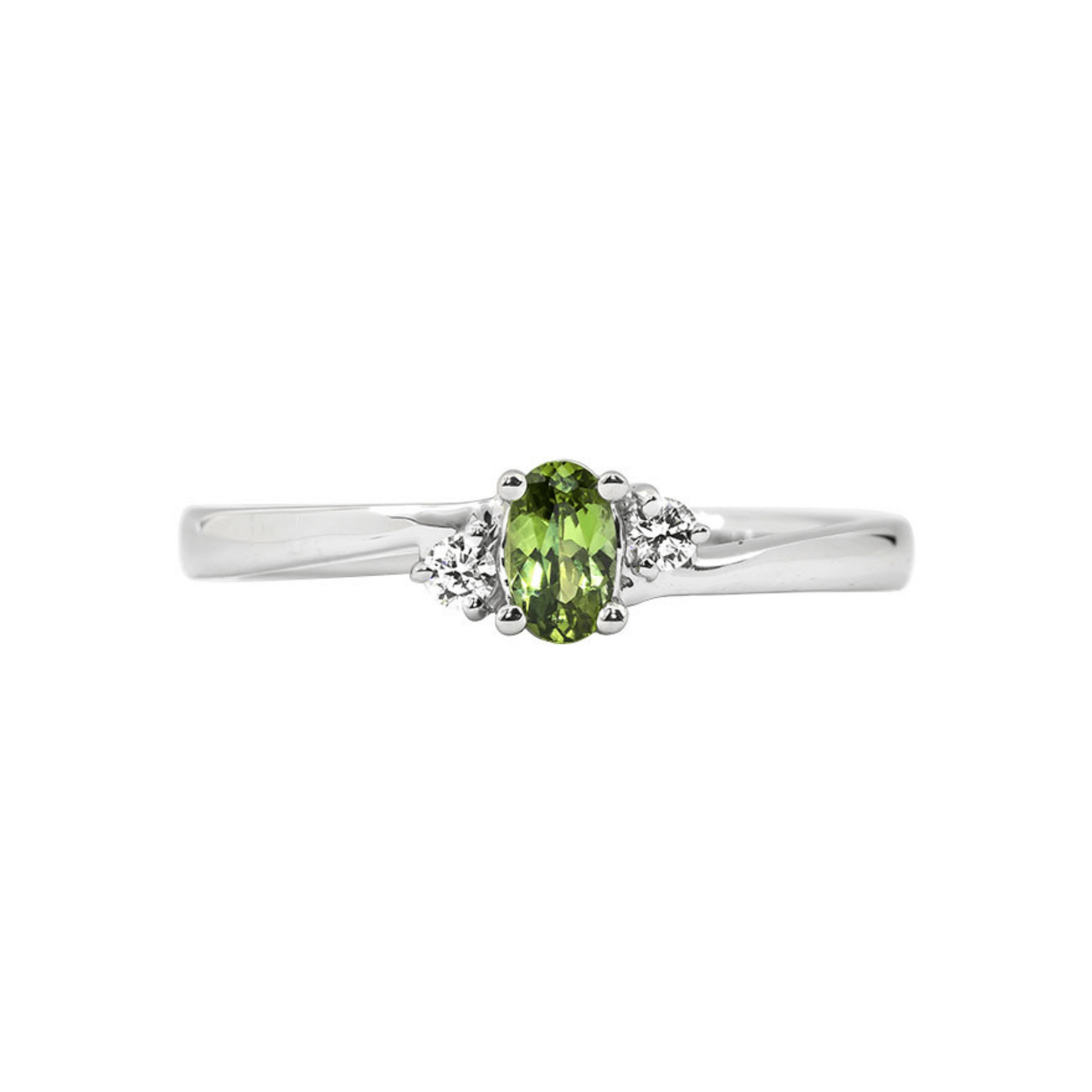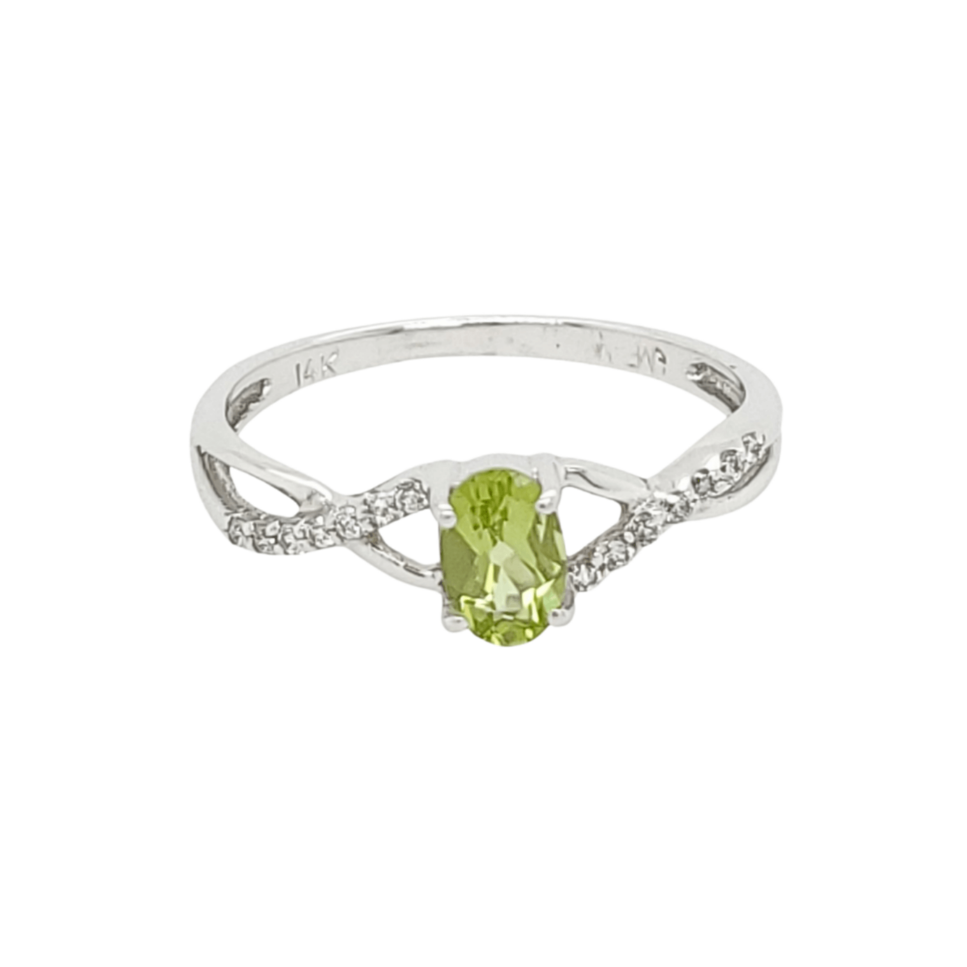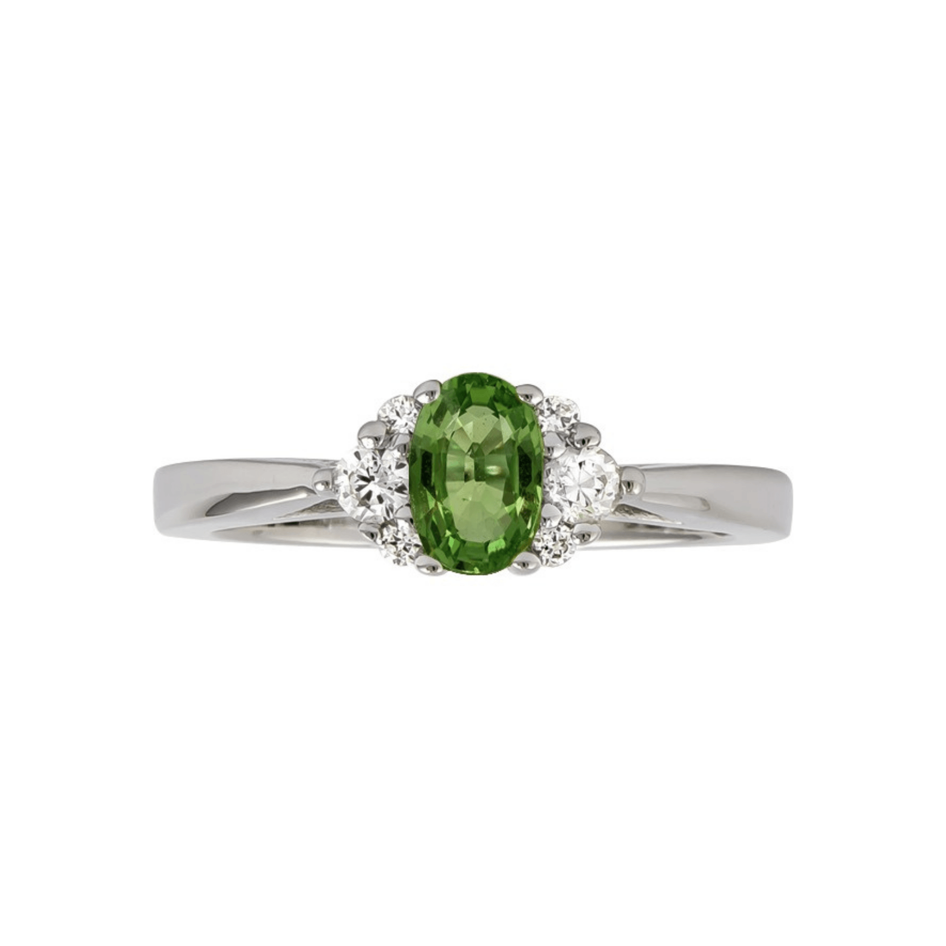 14K Yellow Gold Green Tourmaline & Diamond Ring