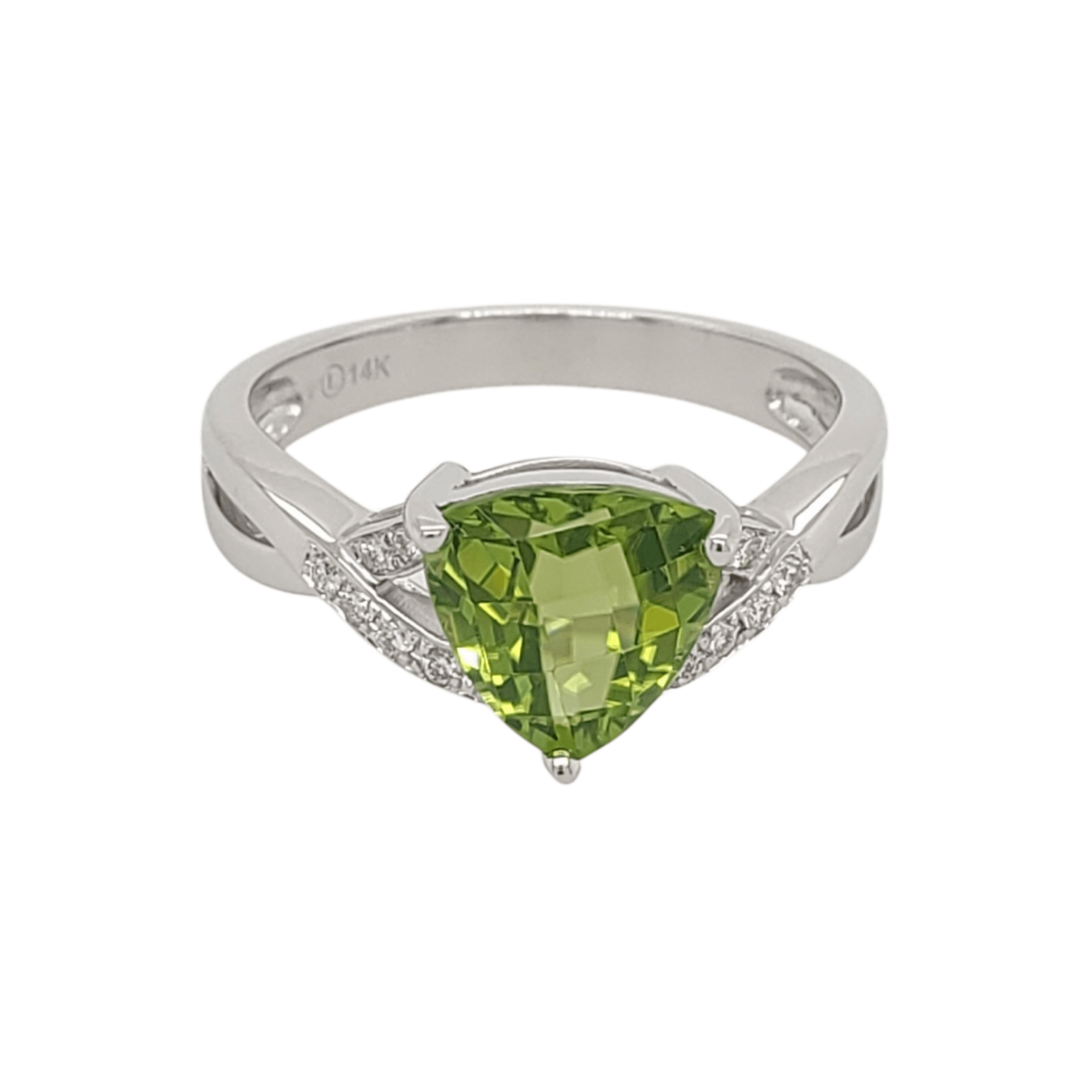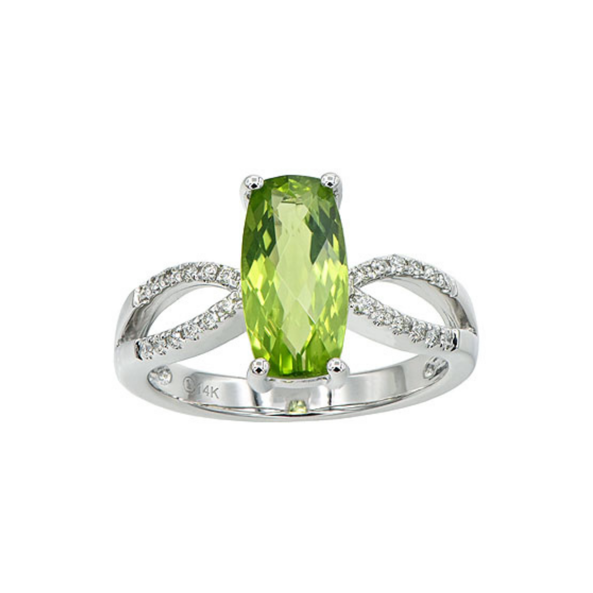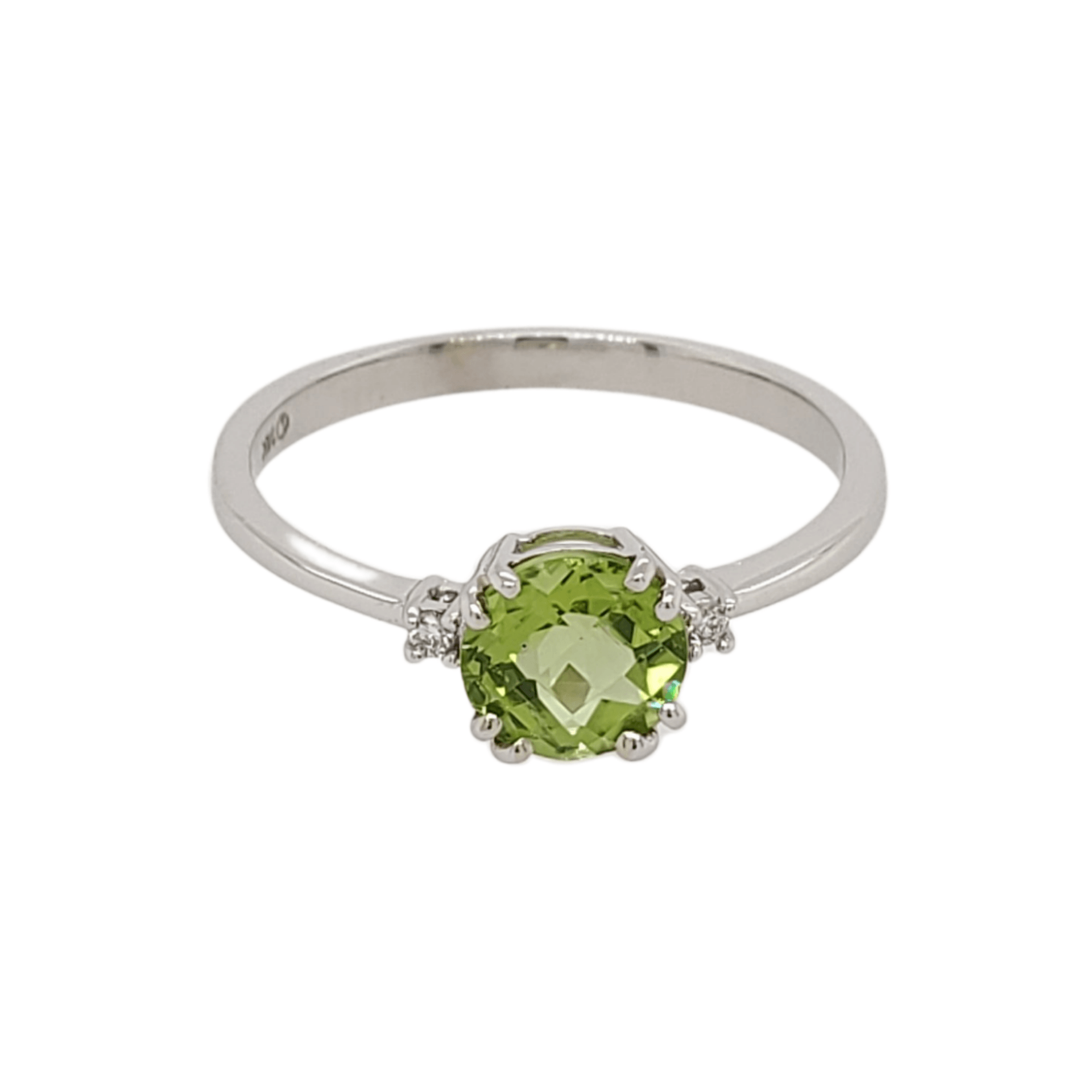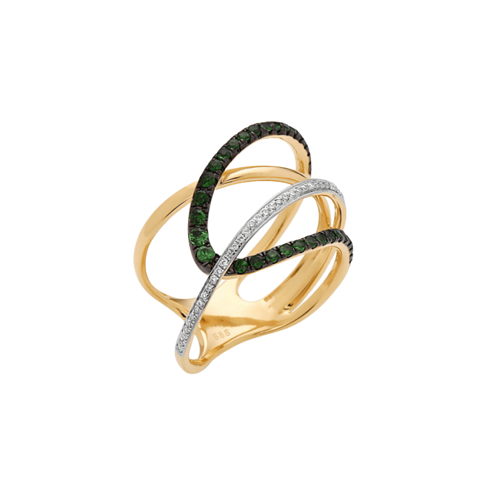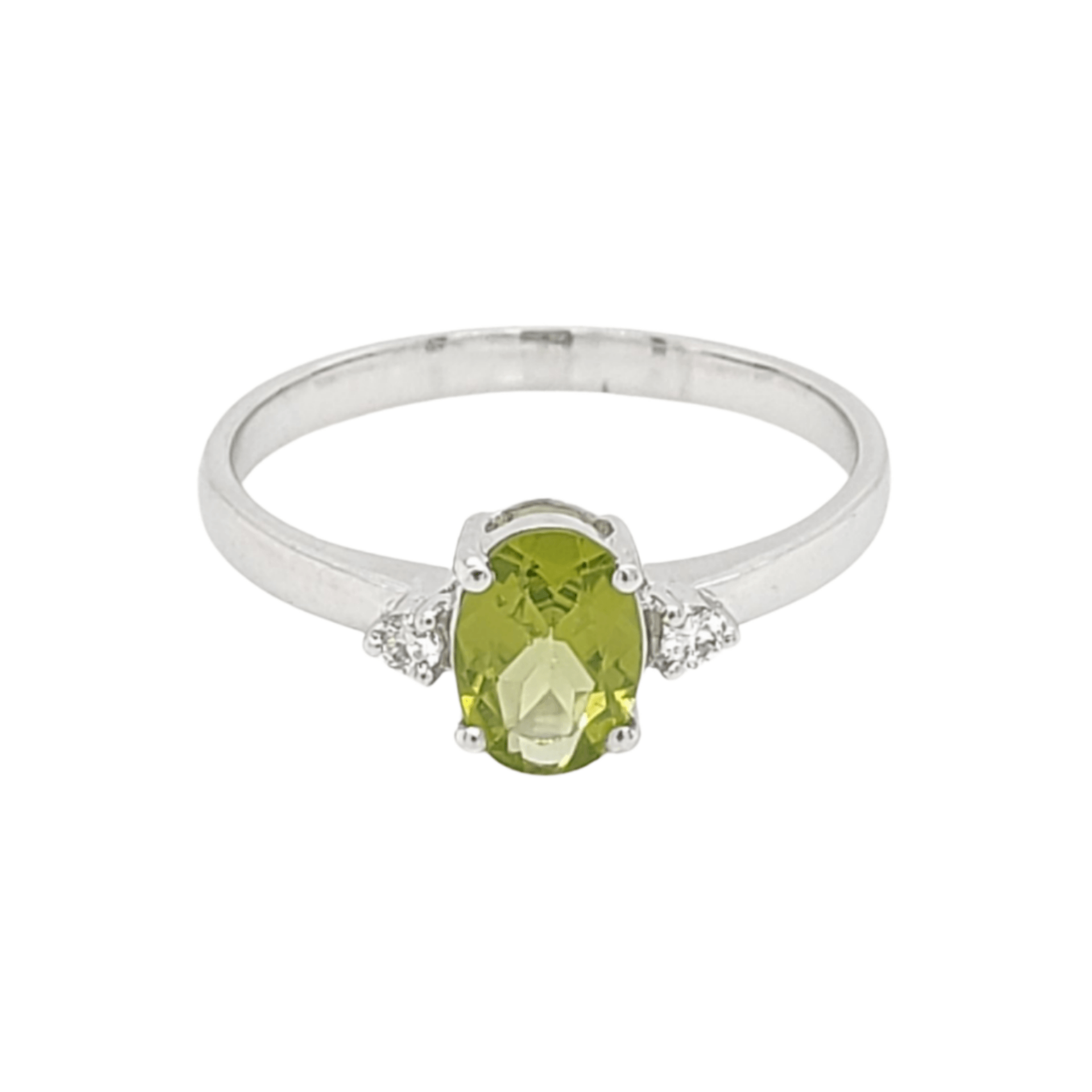 14K Yellow Gold Green Tourmaline & Diamond Ring