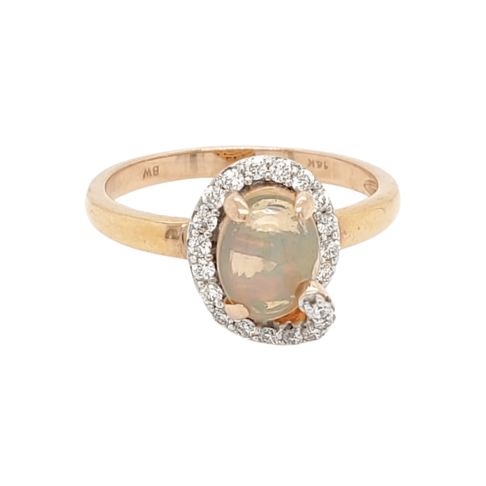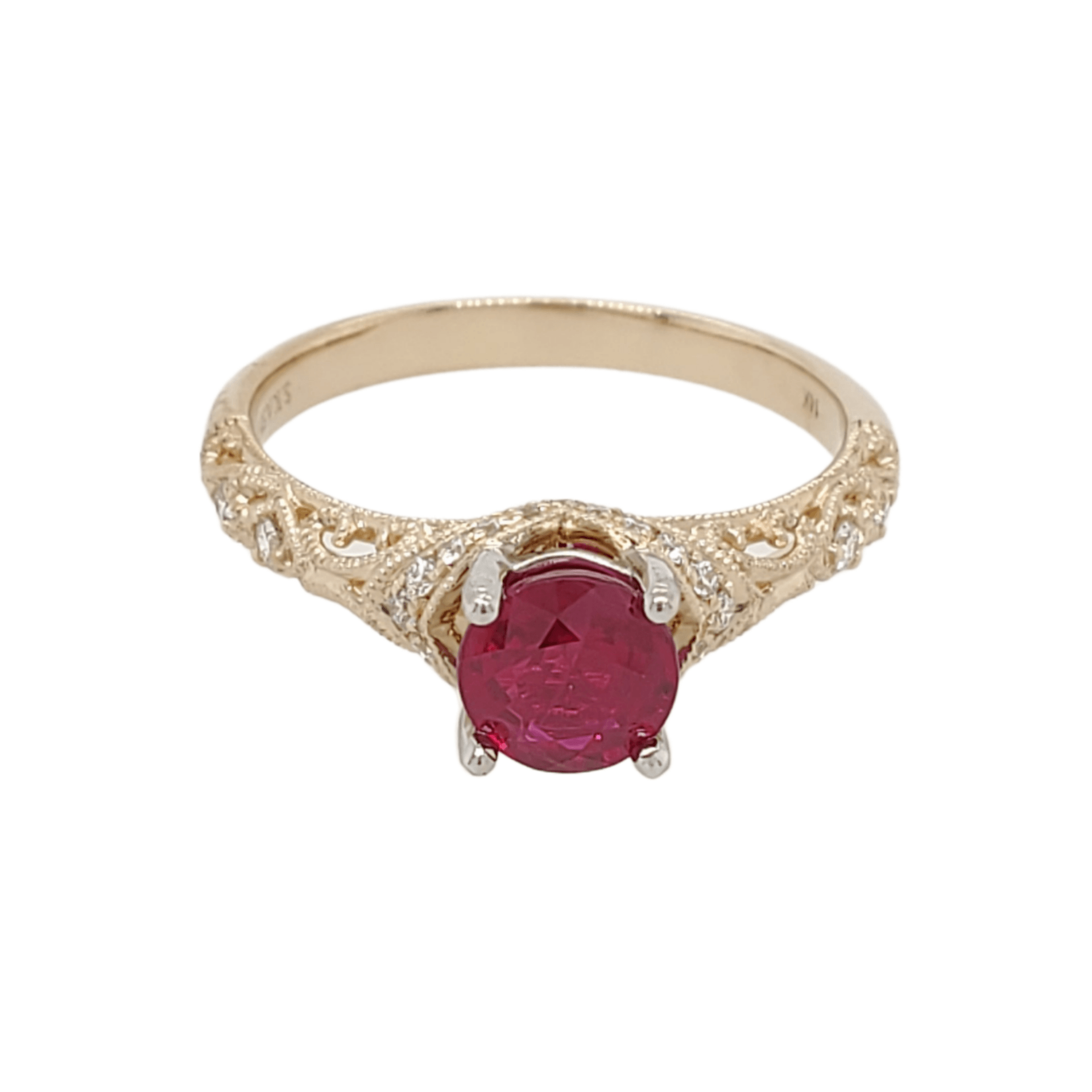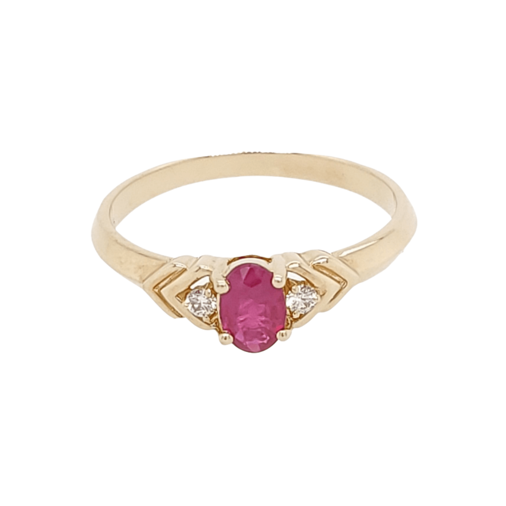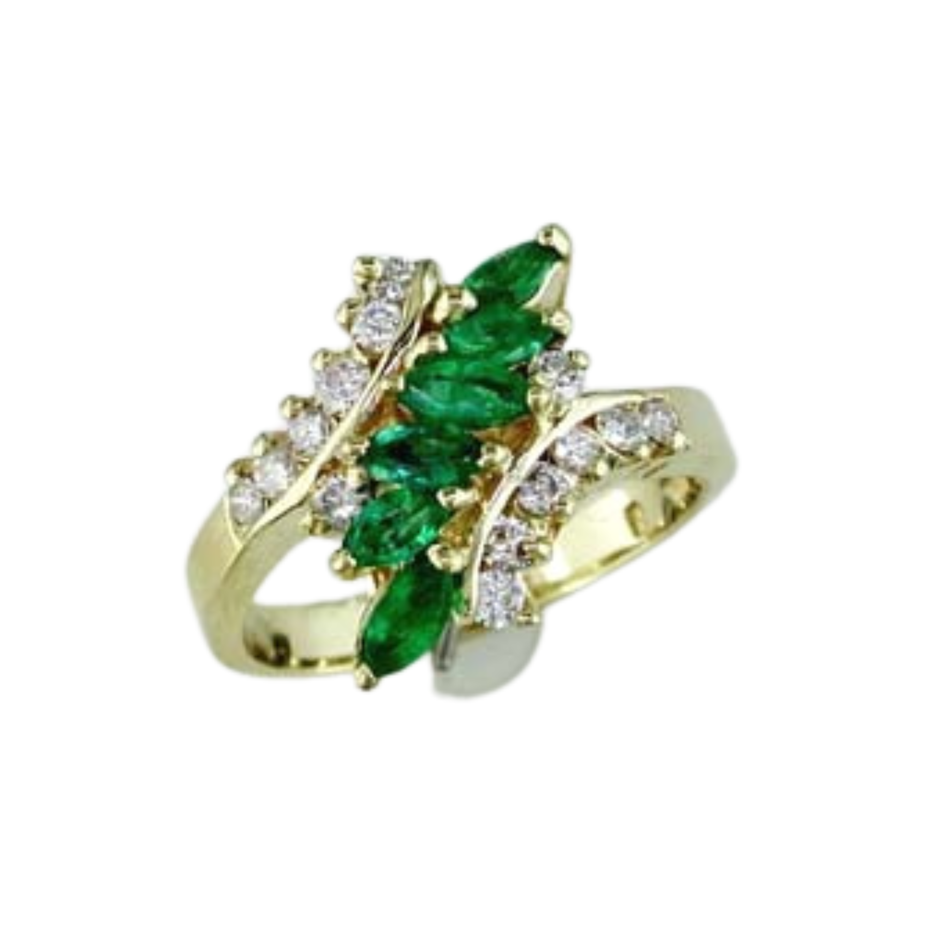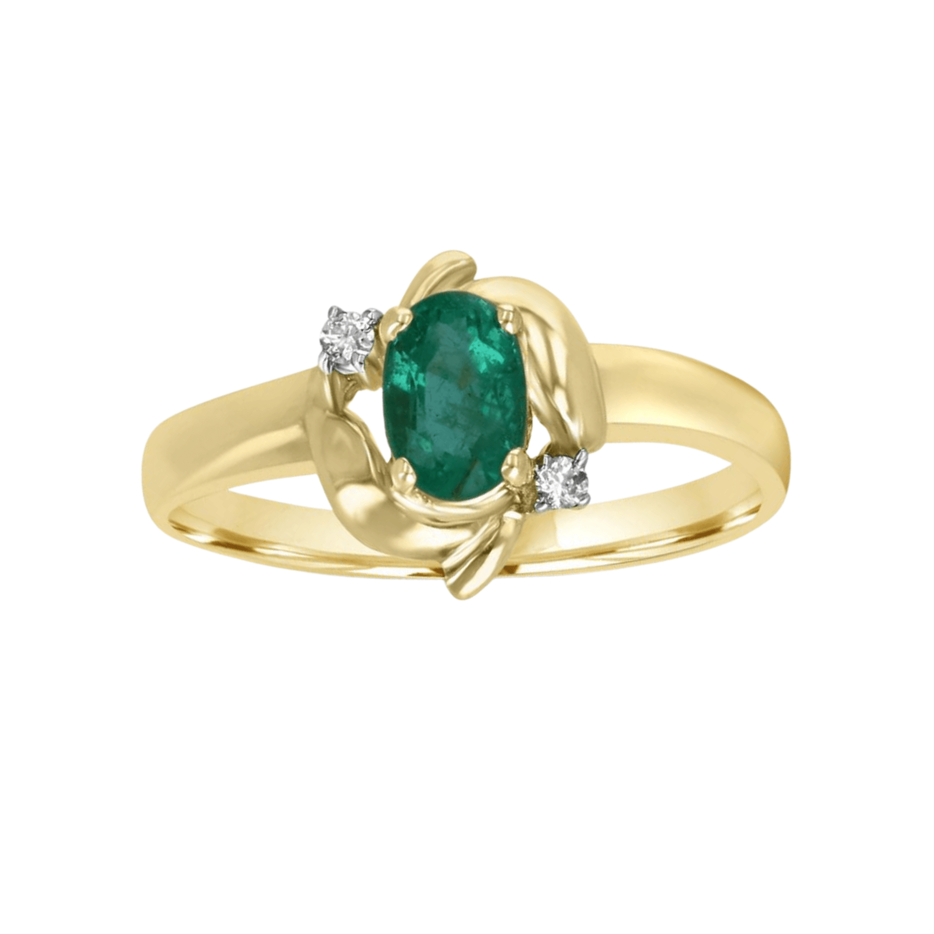 14K Yellow Gold Green Tourmaline & Diamond Ring