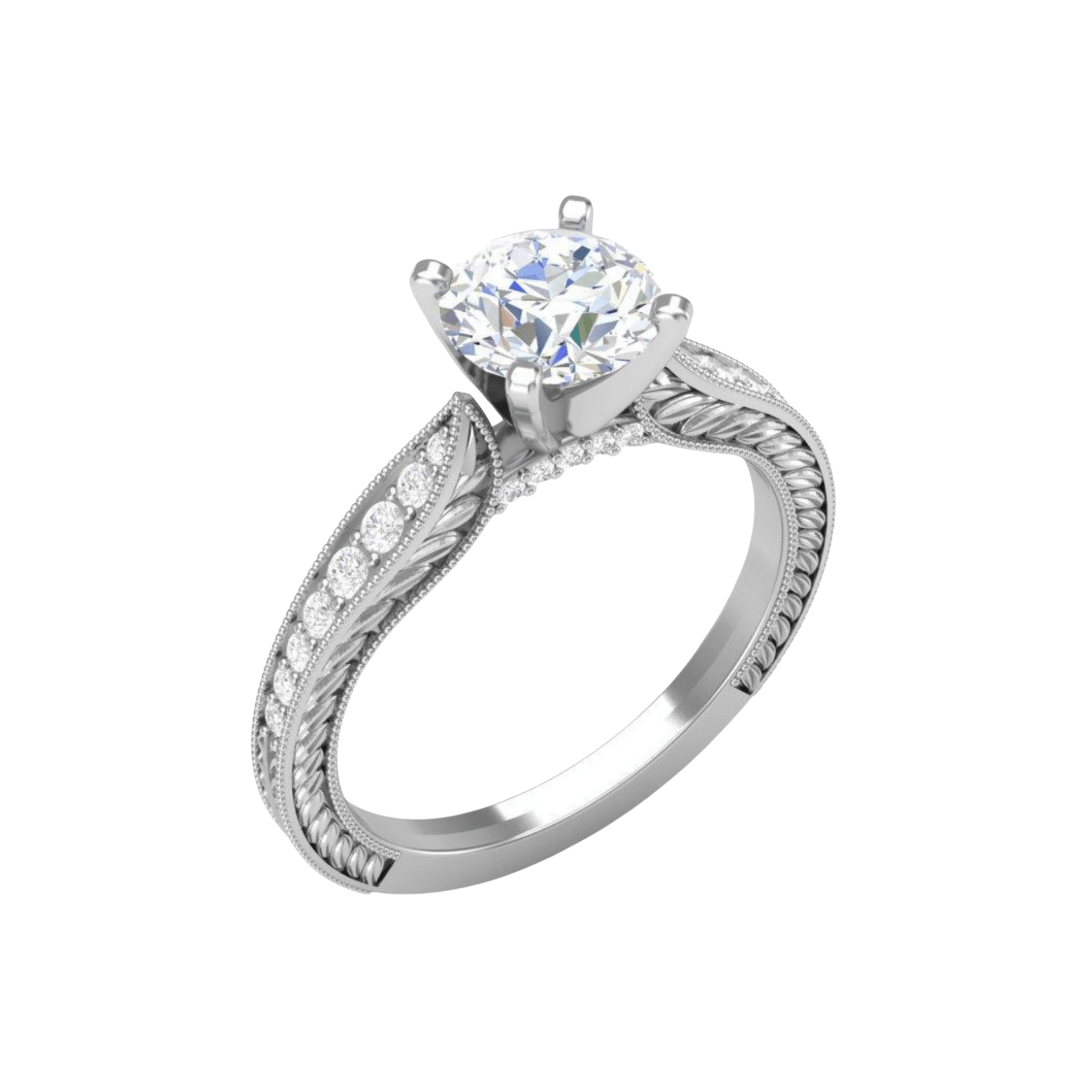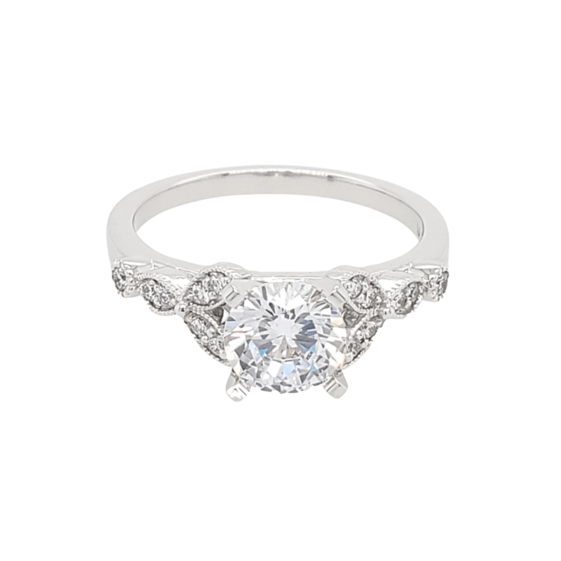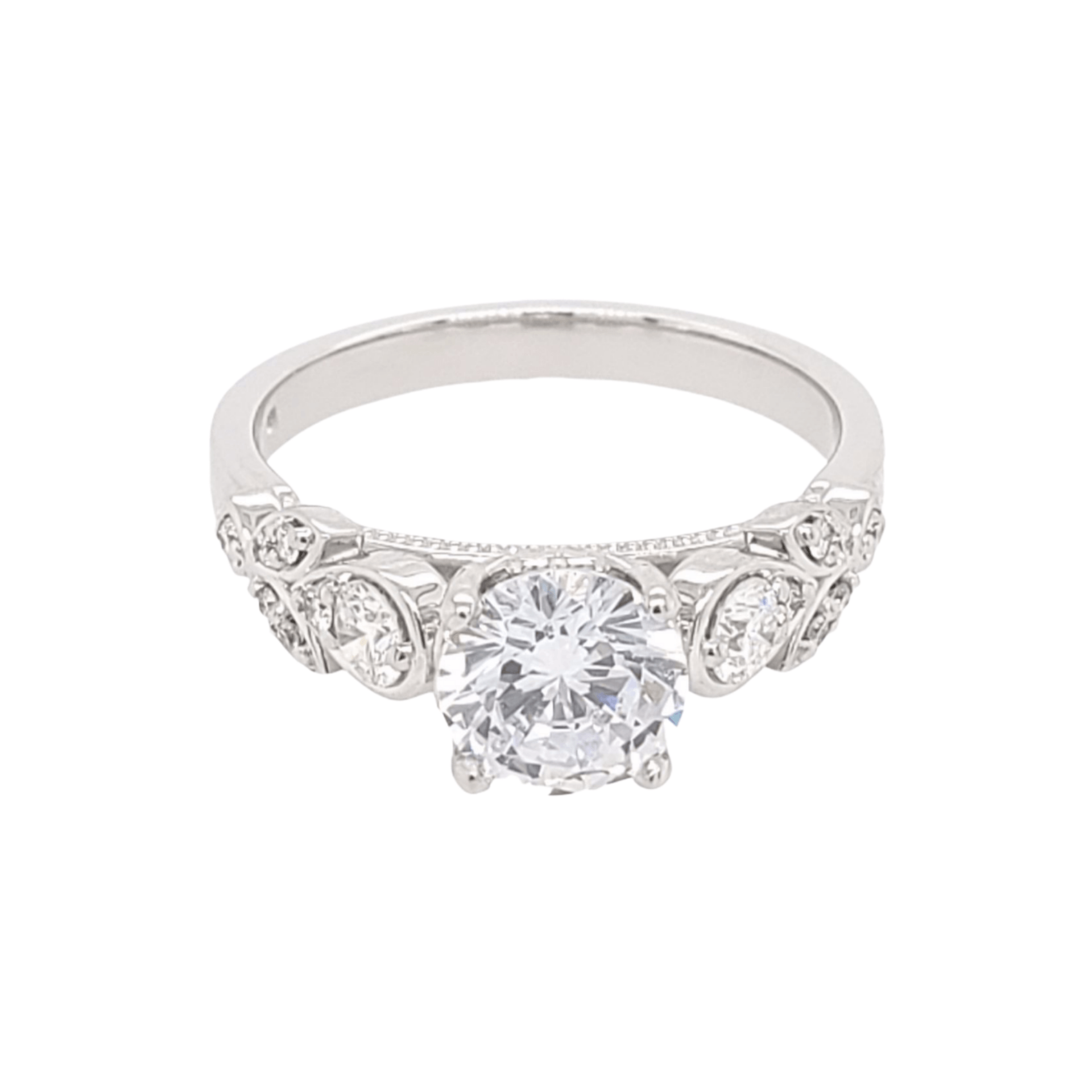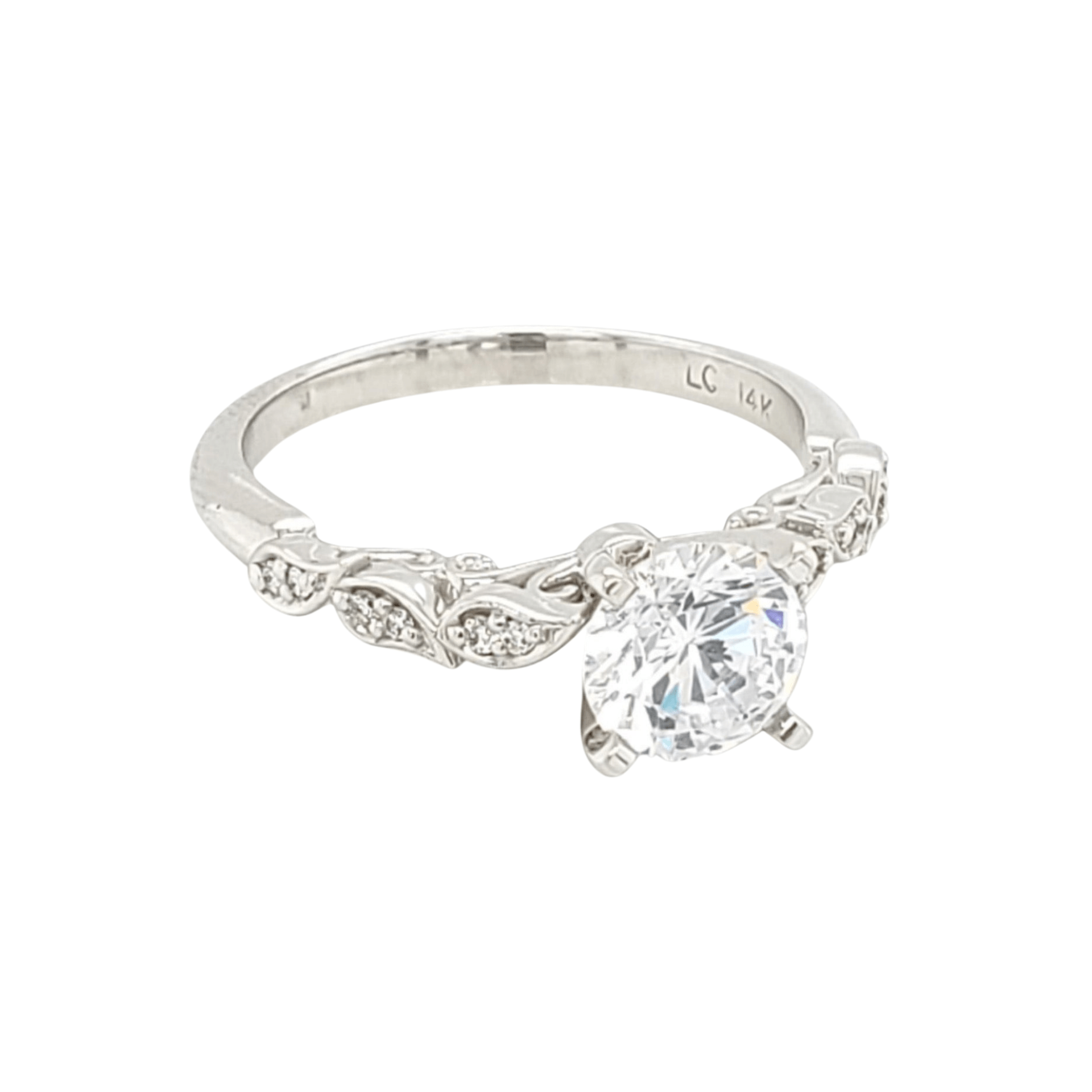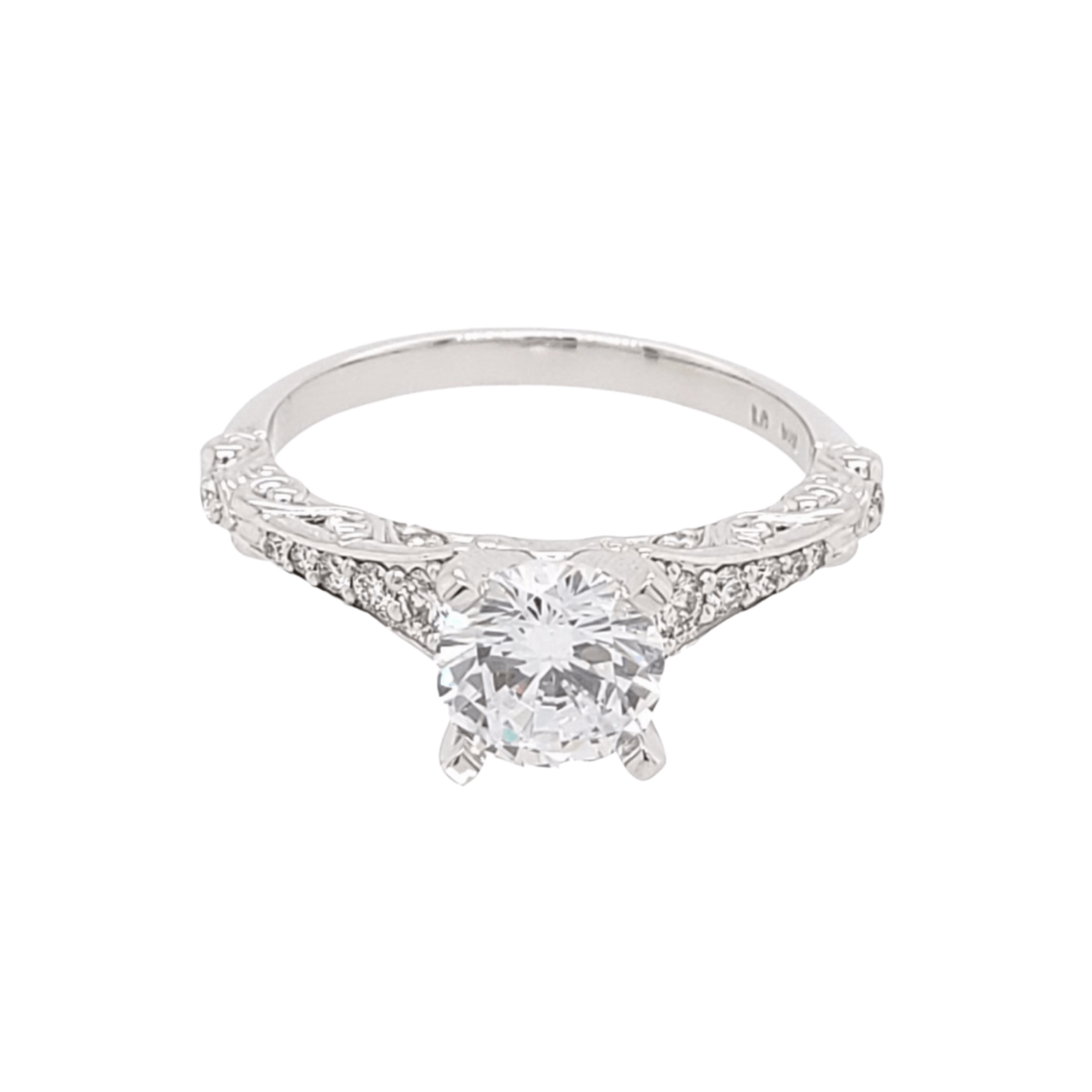 14K White Gold Diamond Carved Cathederal Engagement Ring
