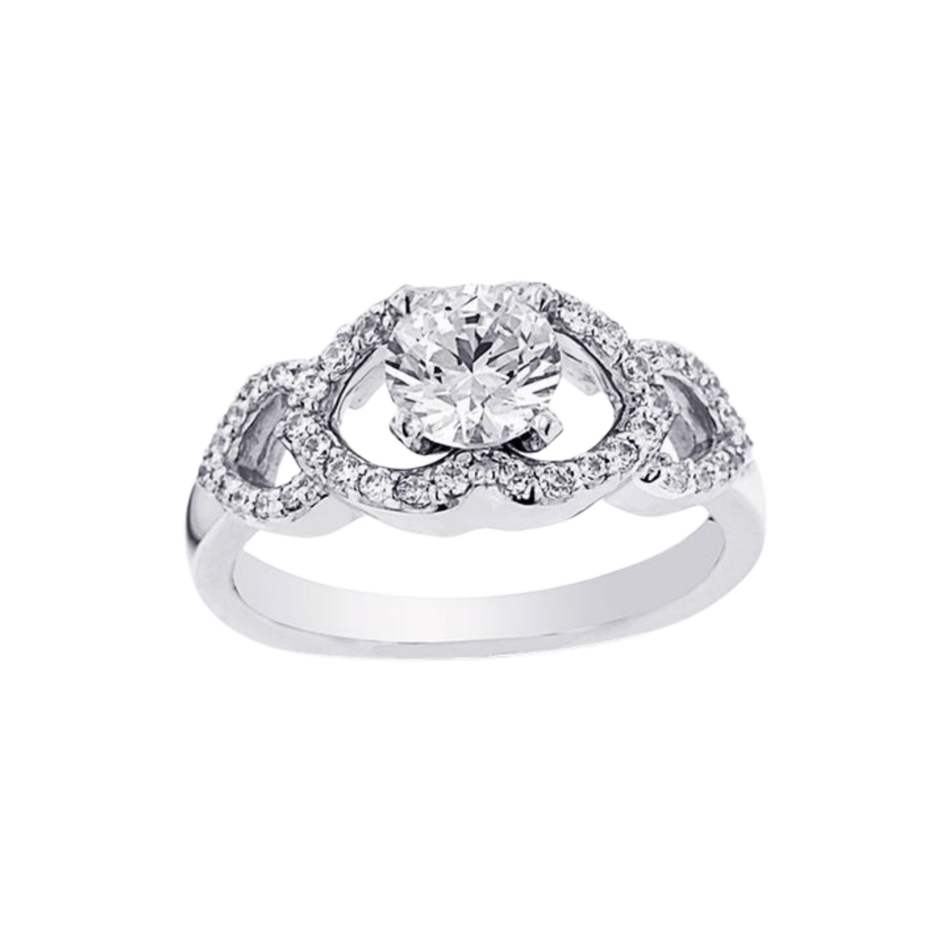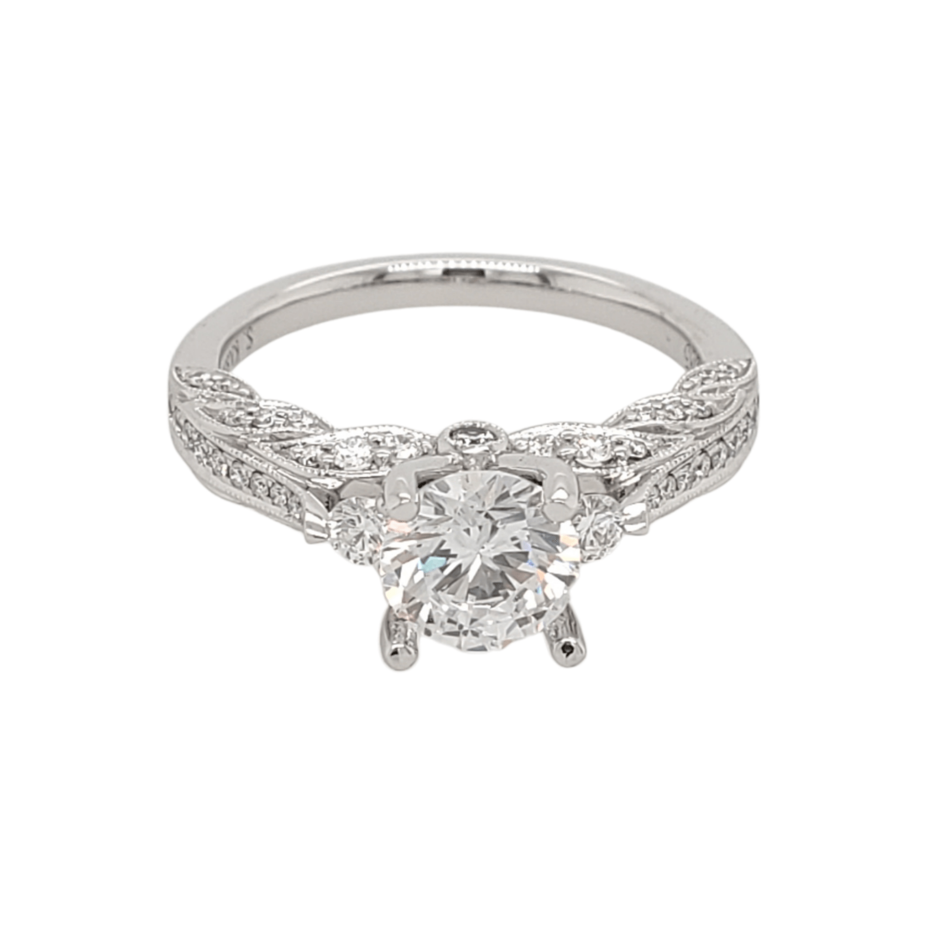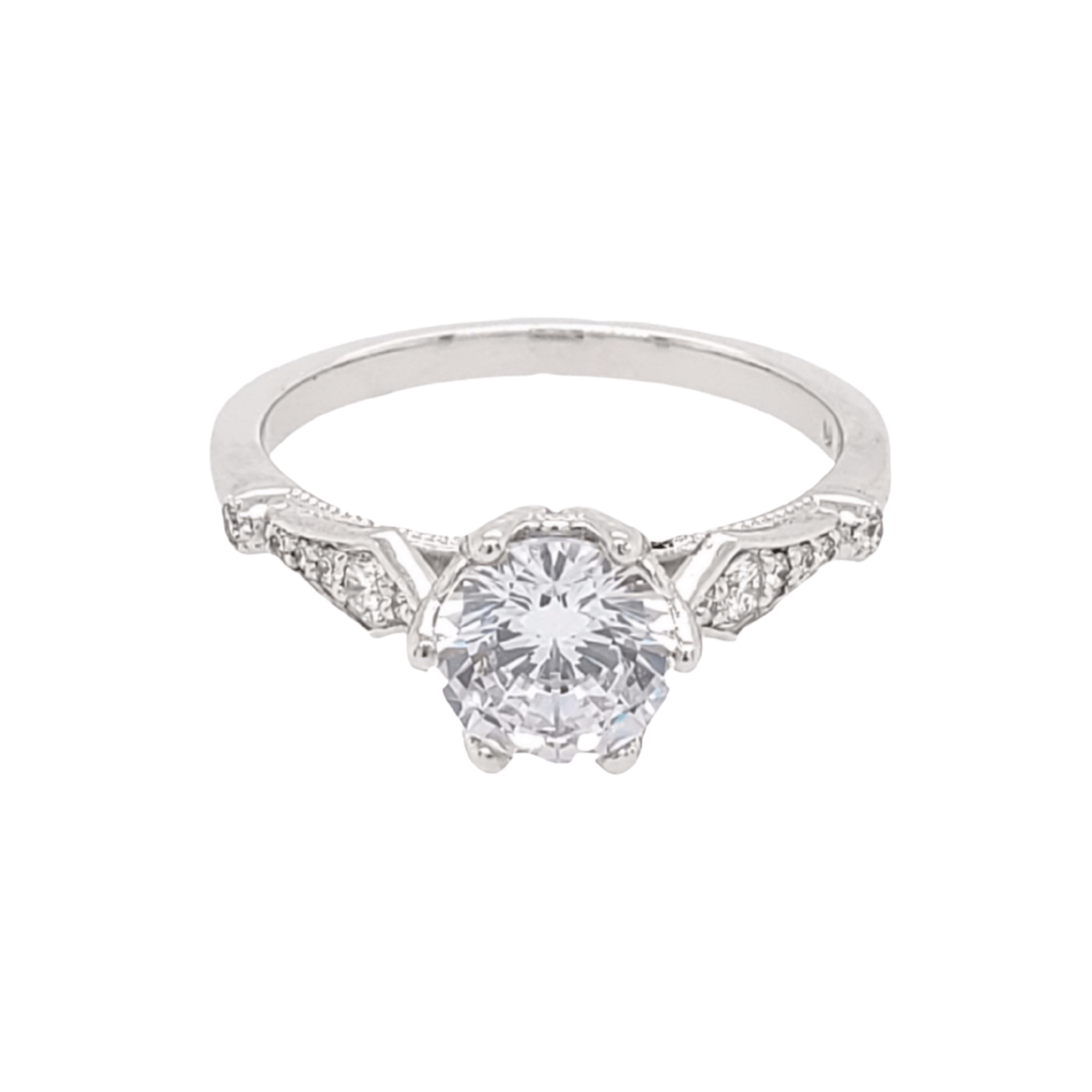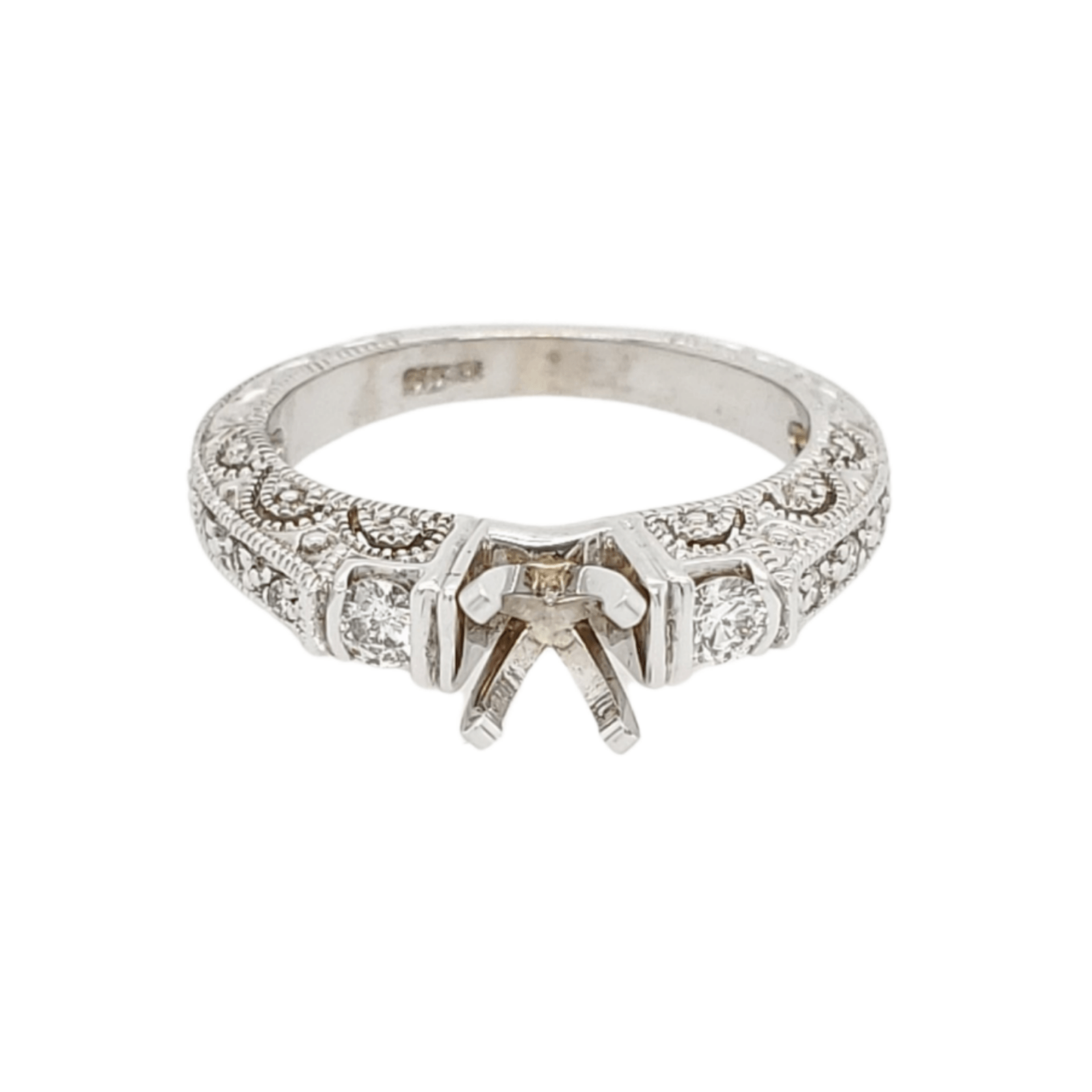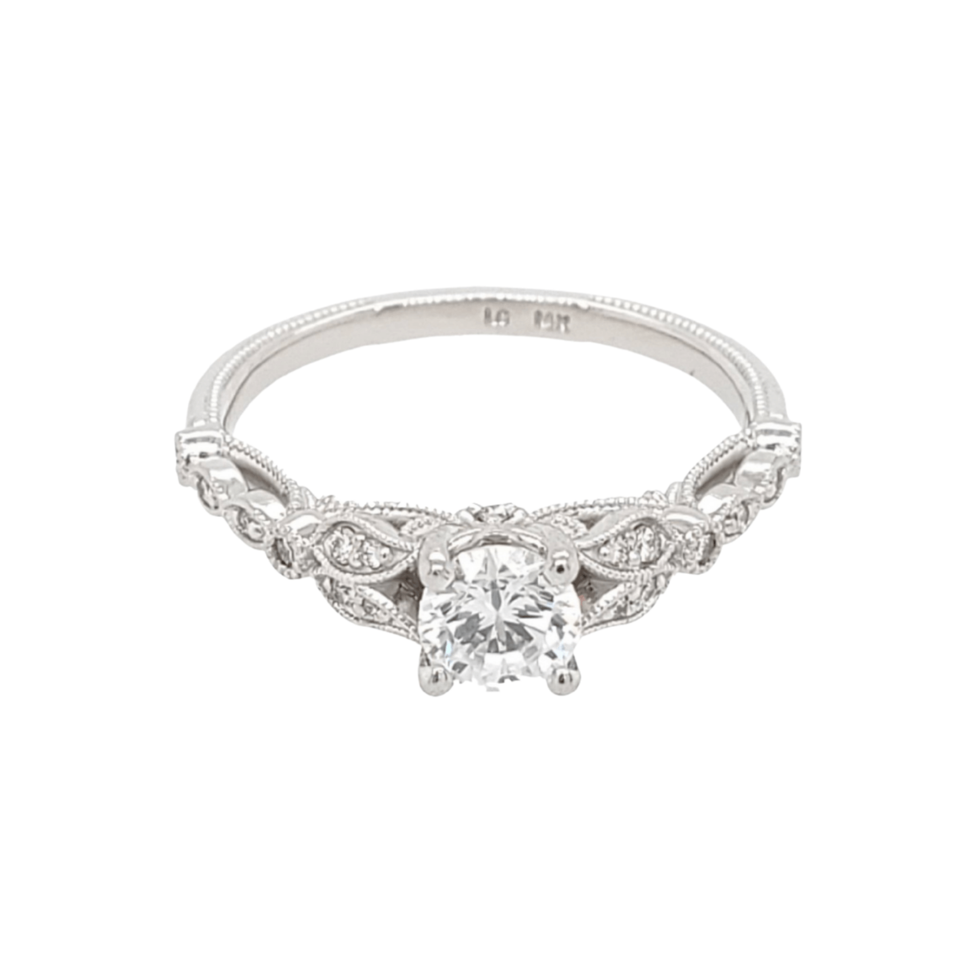 14K White Gold Diamond Carved Cathederal Engagement Ring
