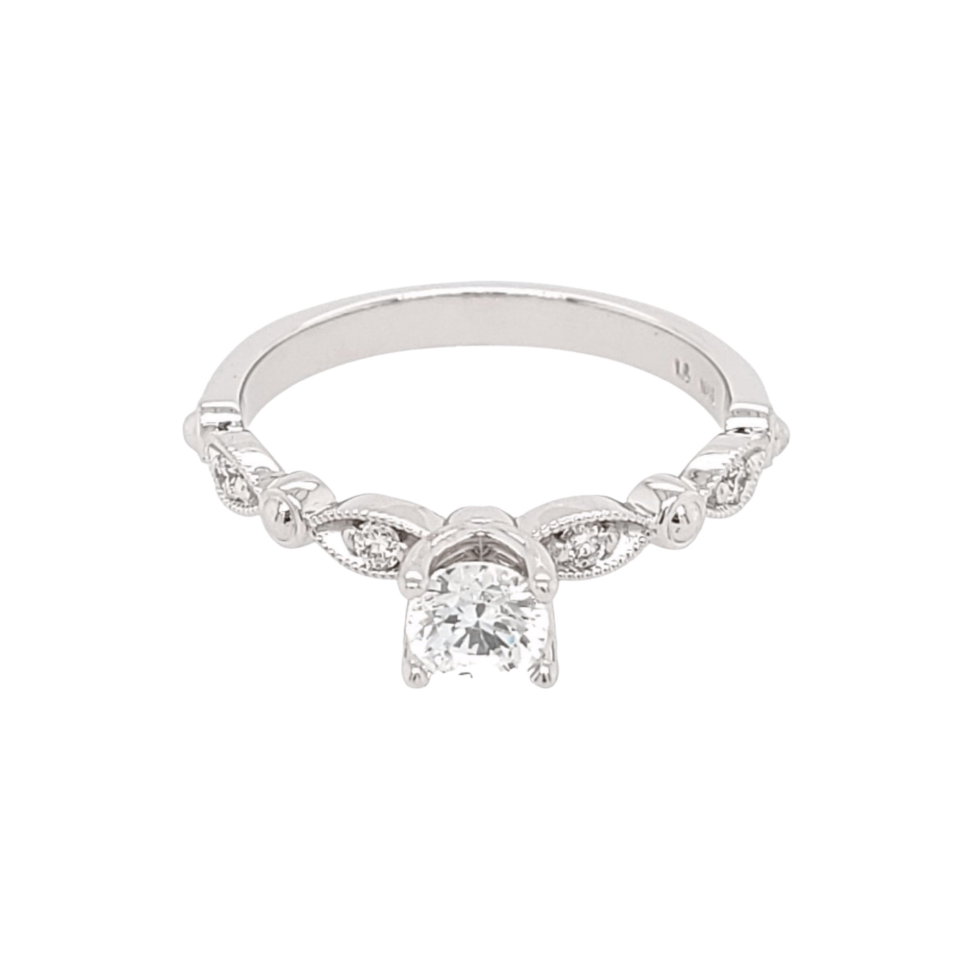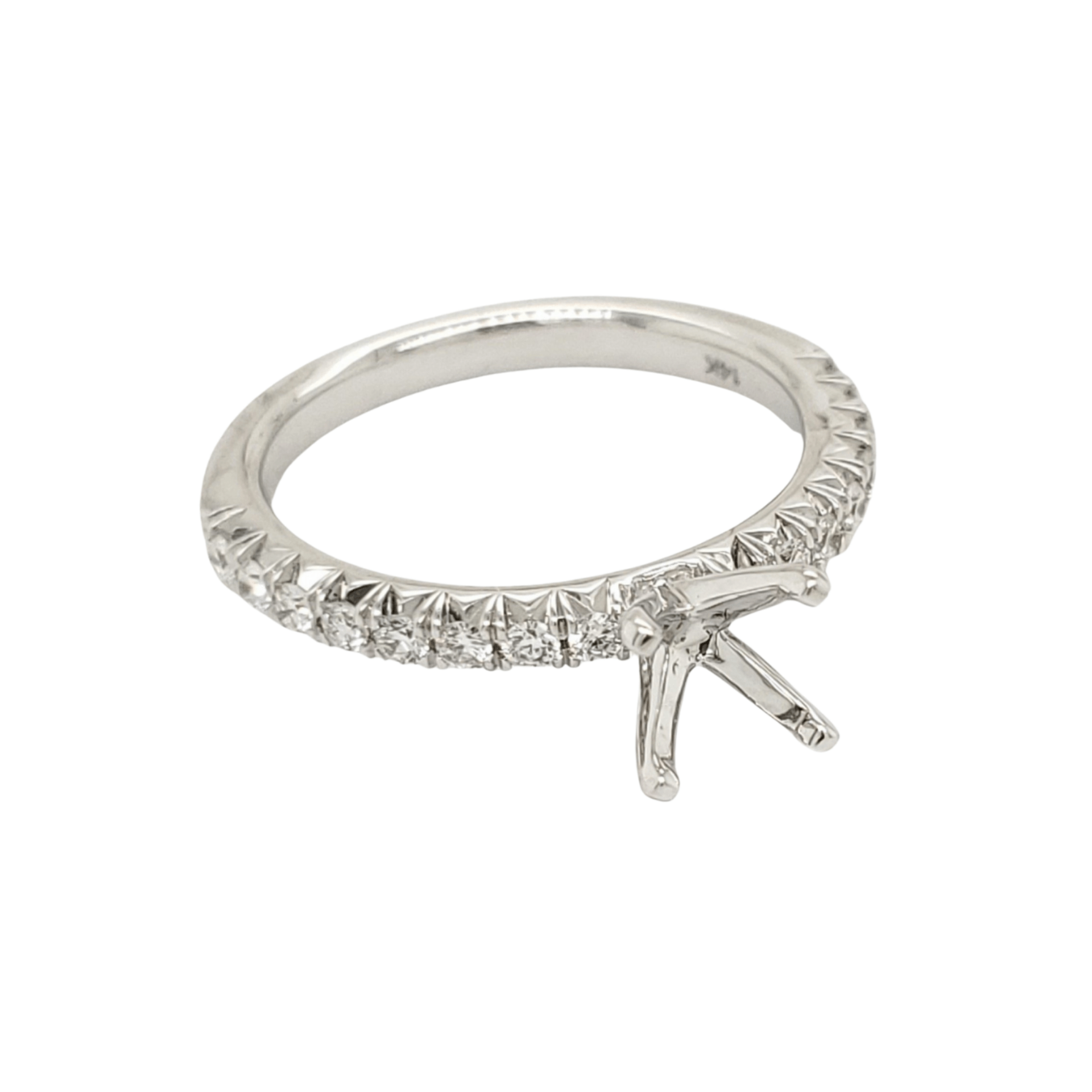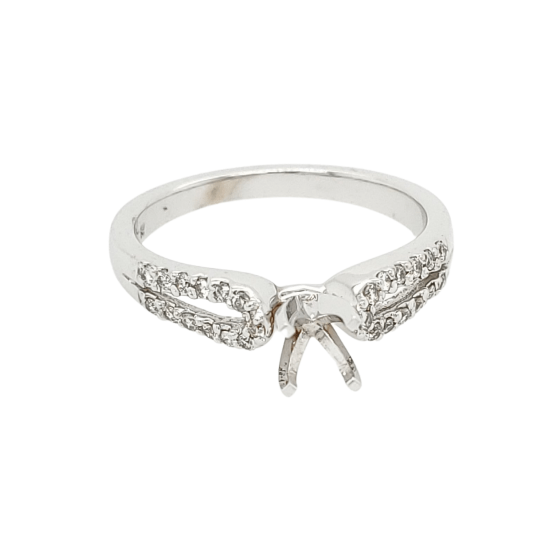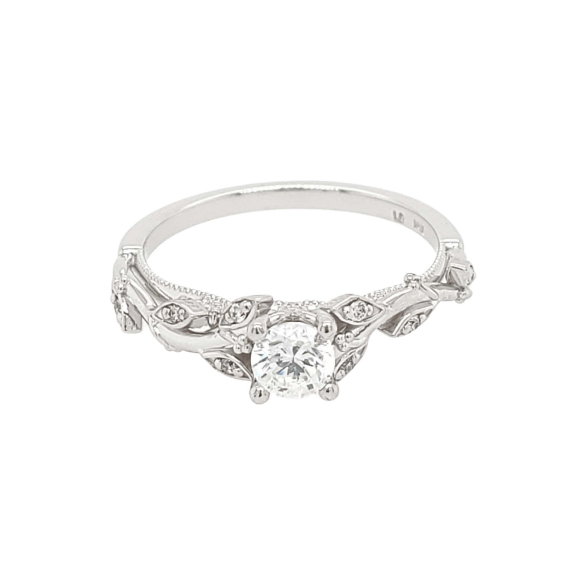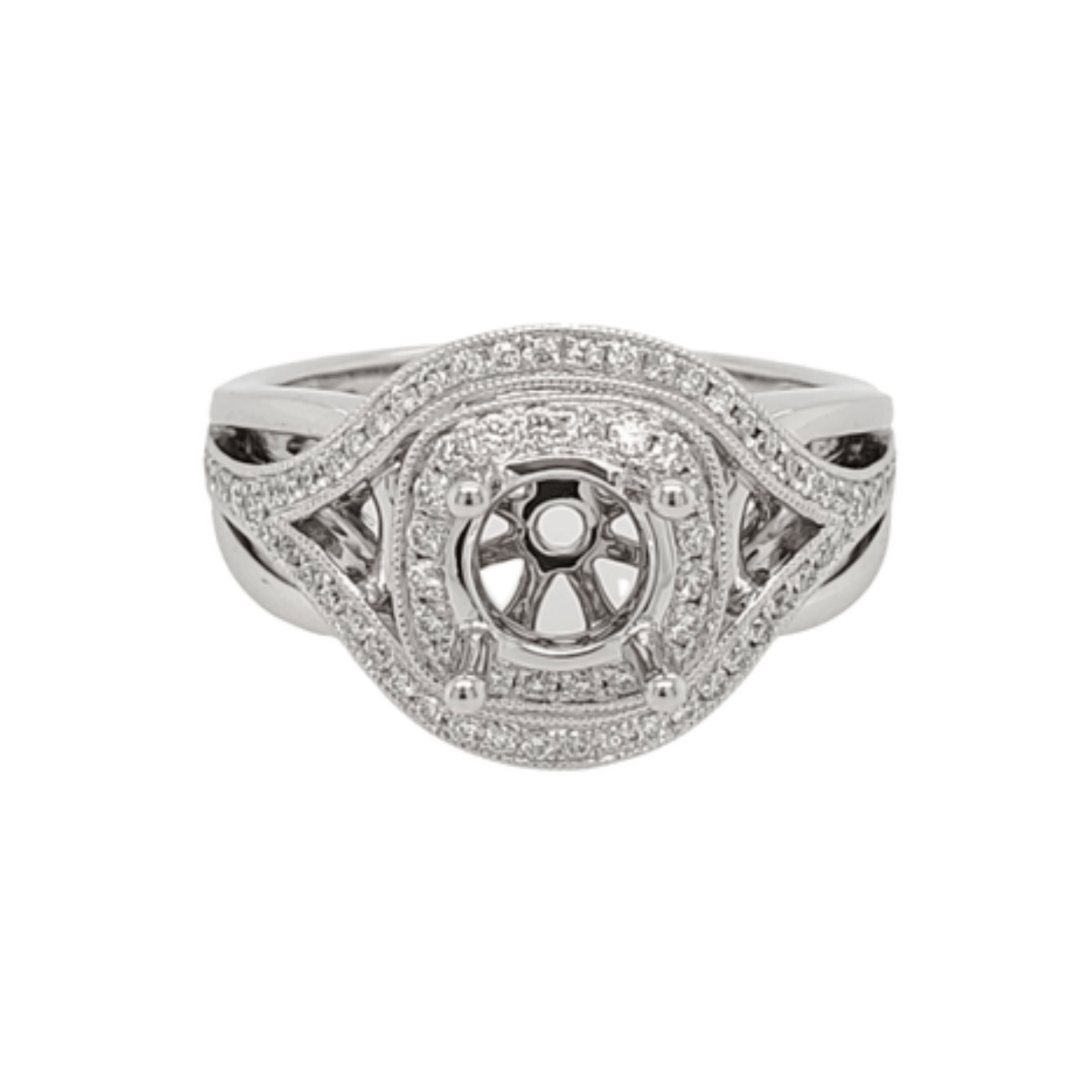 14K White Gold Diamond Carved Cathederal Engagement Ring