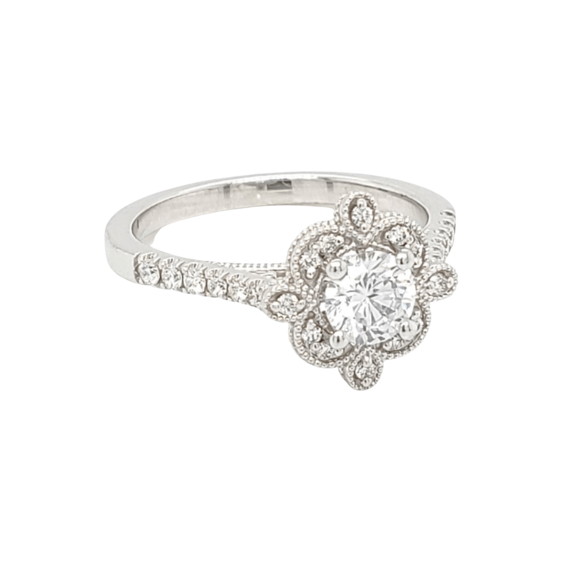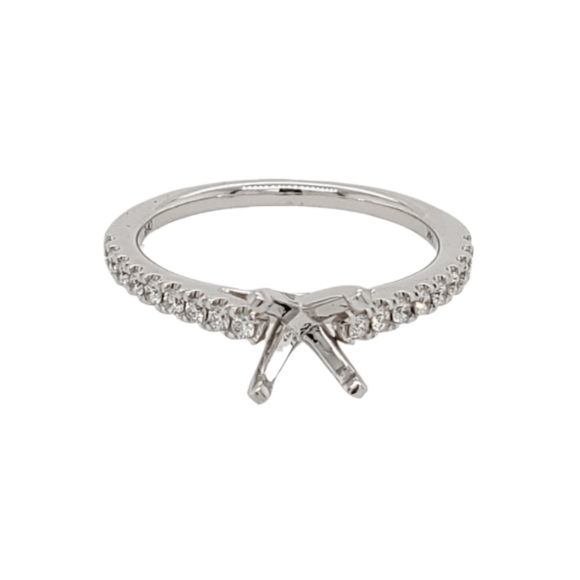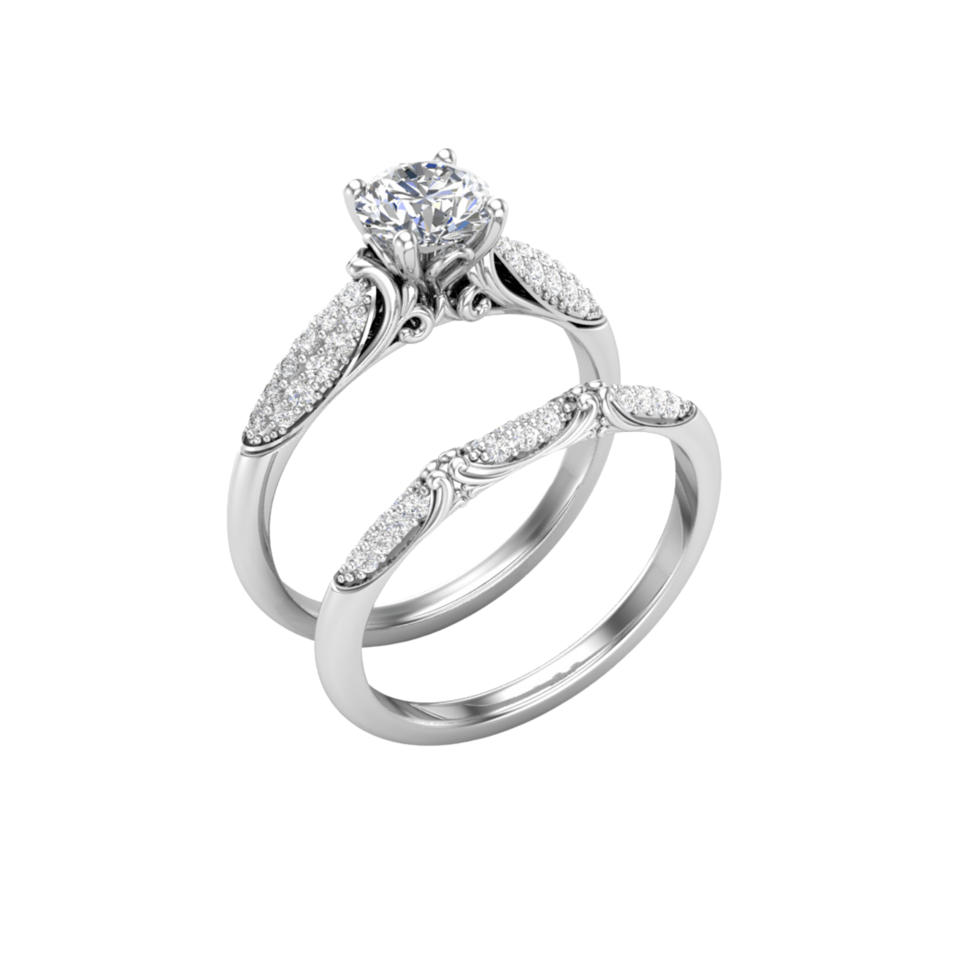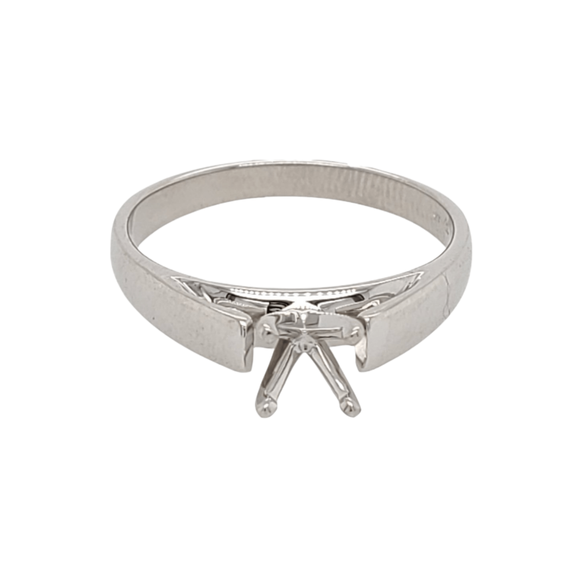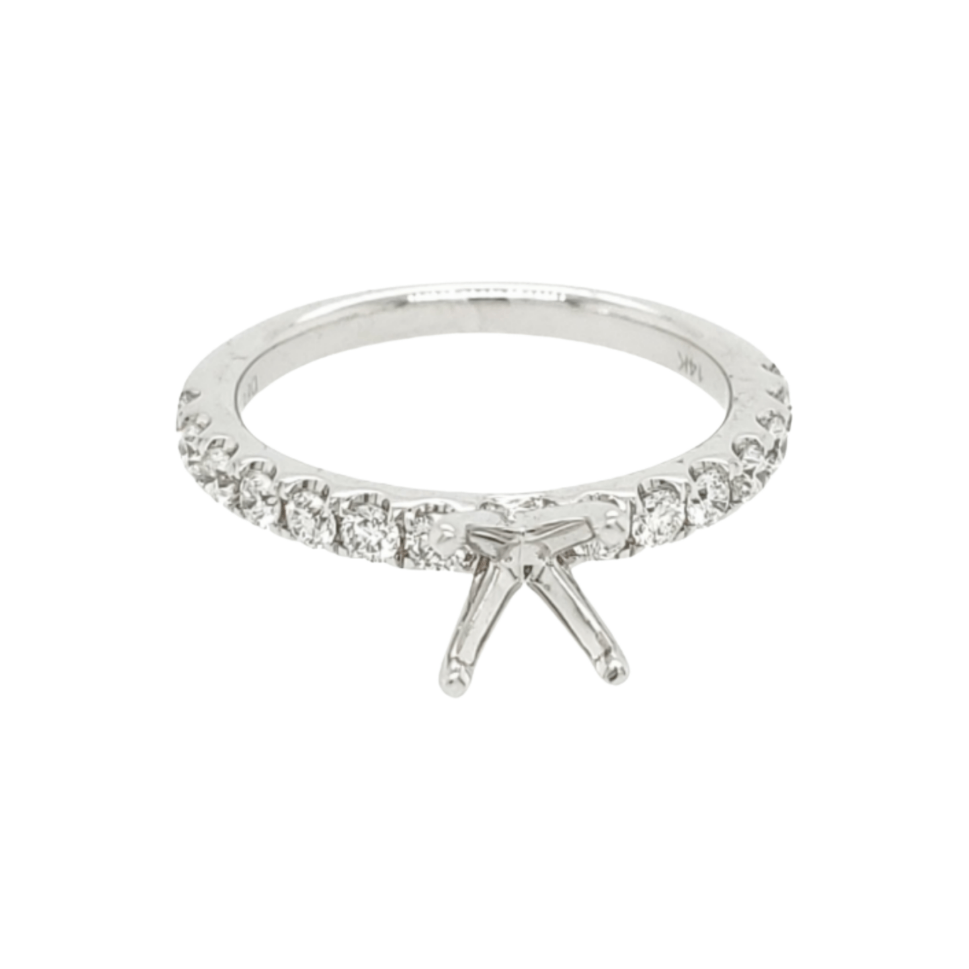 14K White Gold Diamond Carved Cathederal Engagement Ring