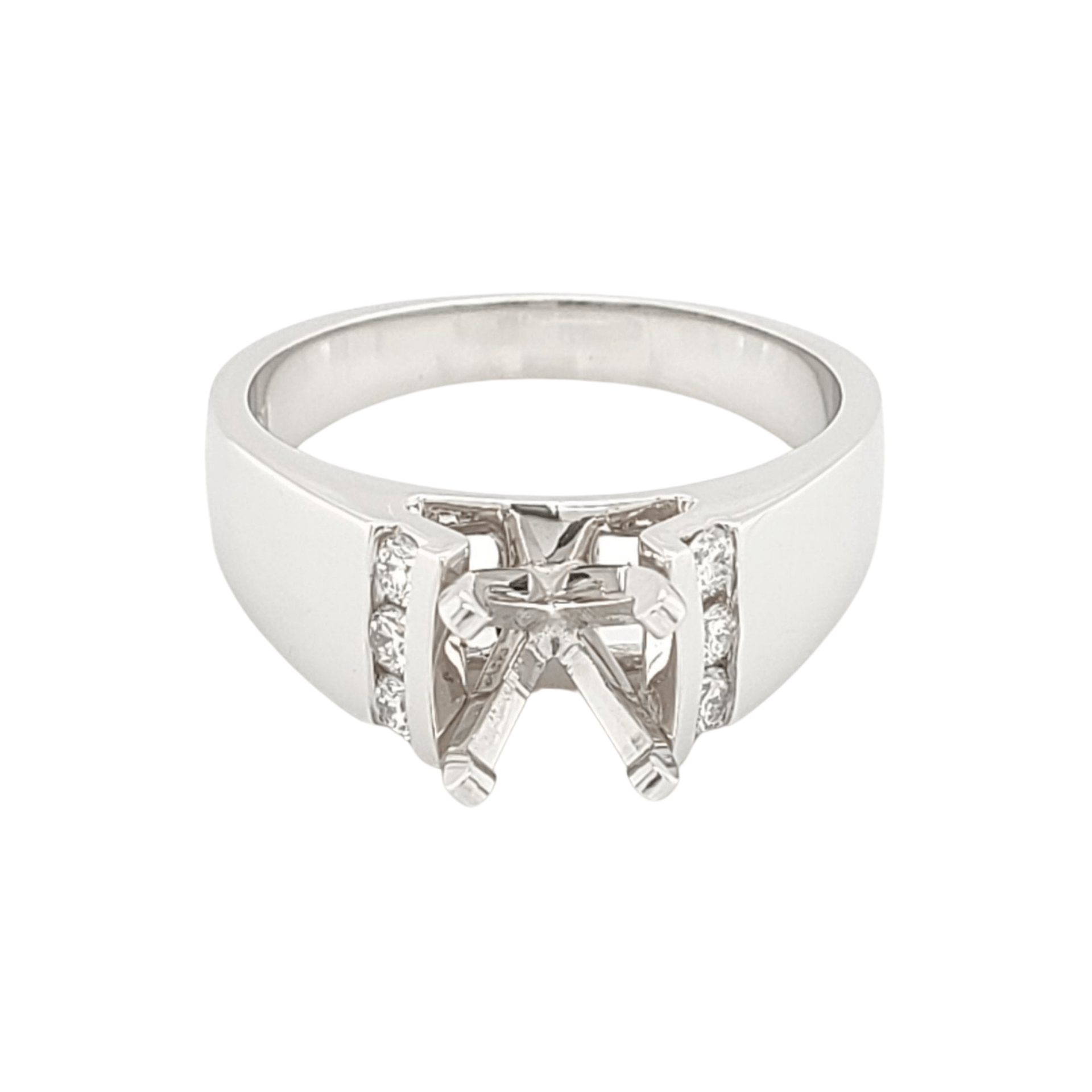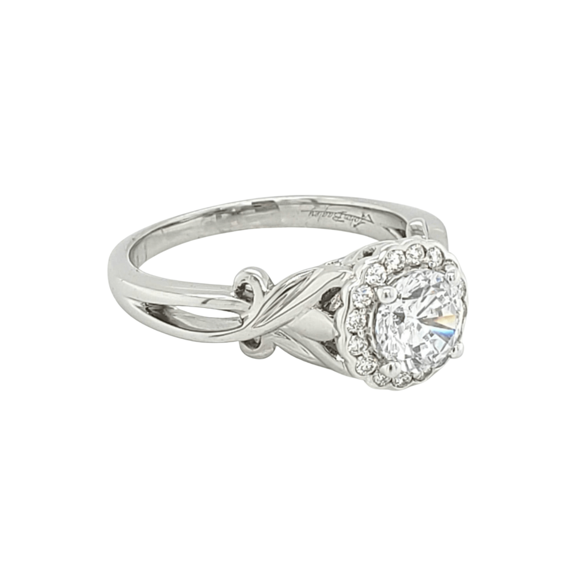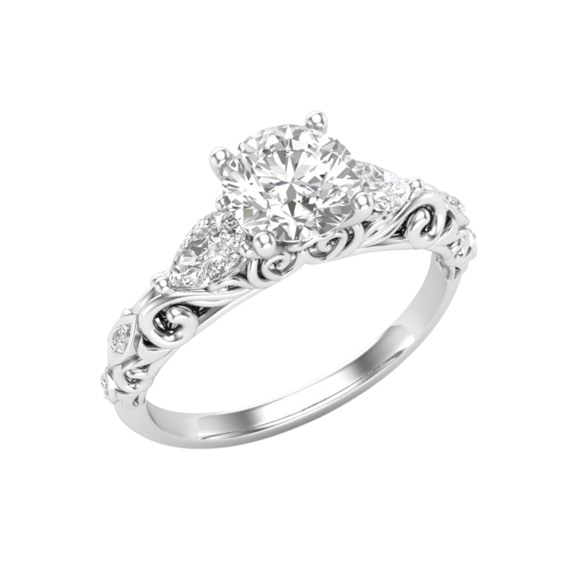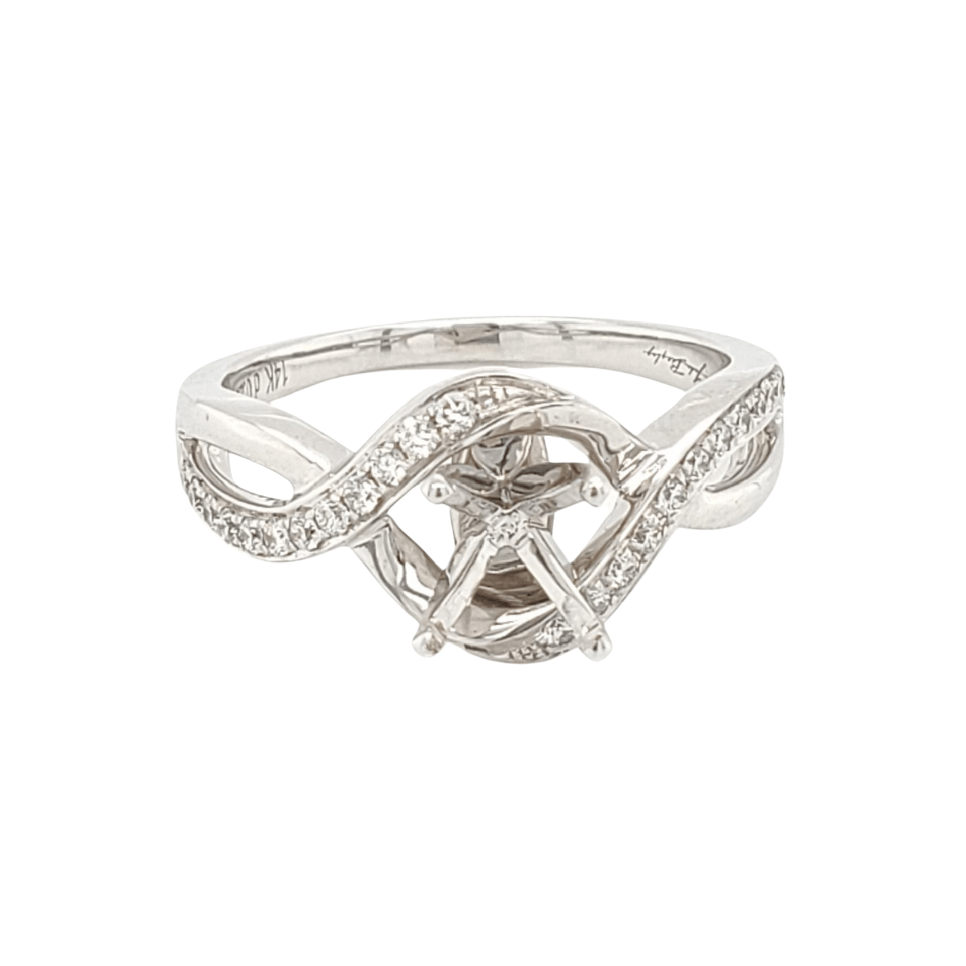 14K White Gold Diamond Carved Cathederal Engagement Ring