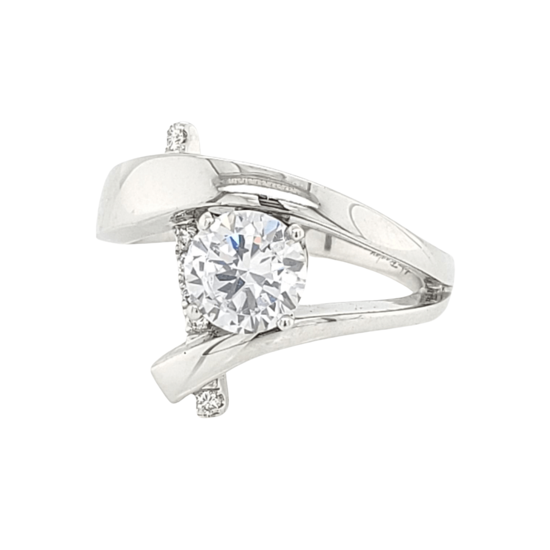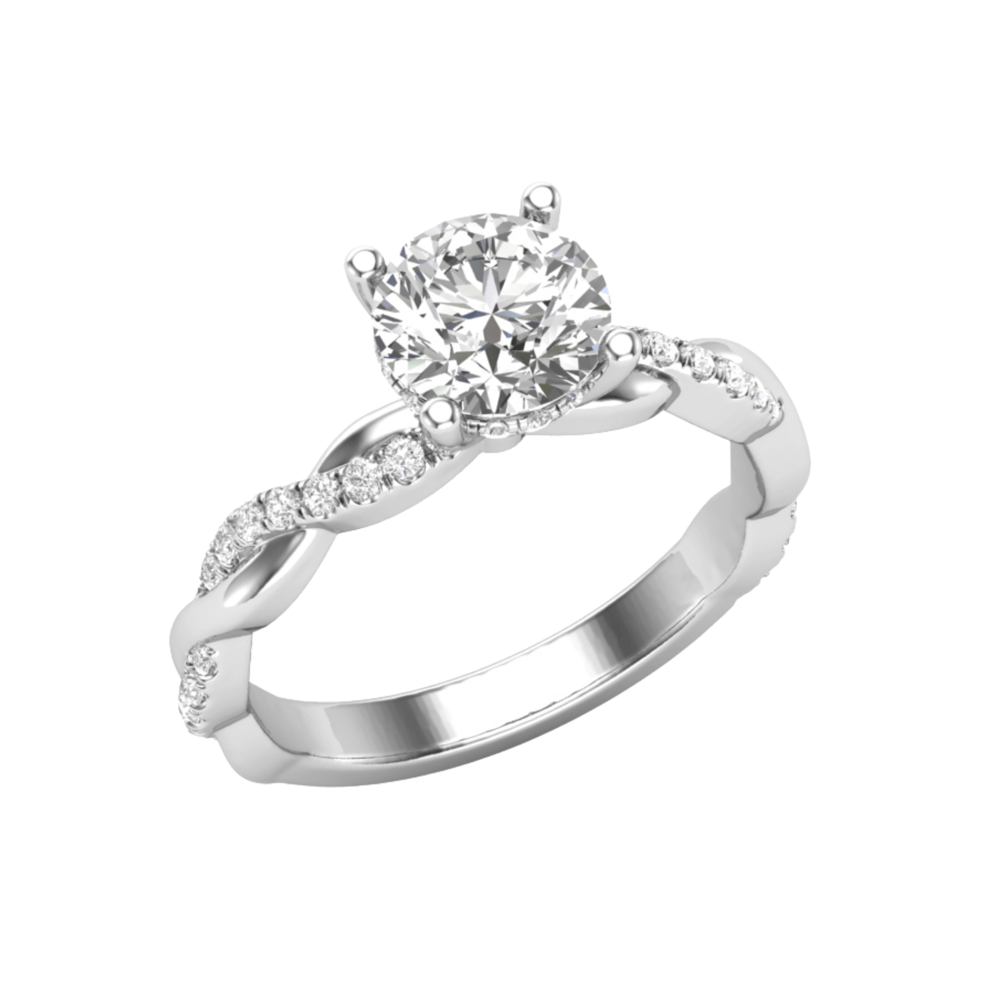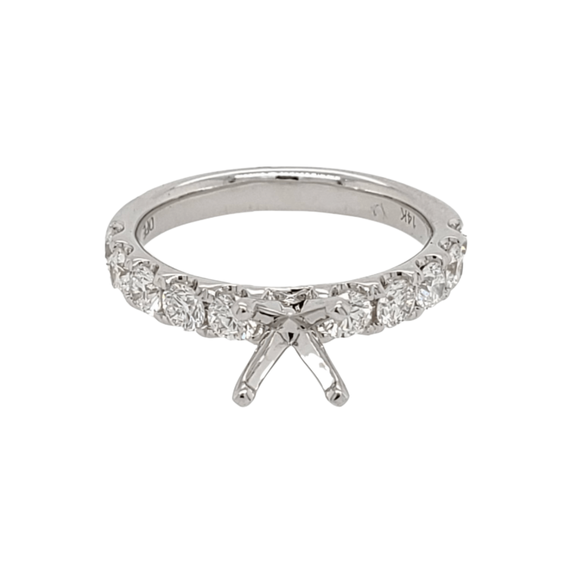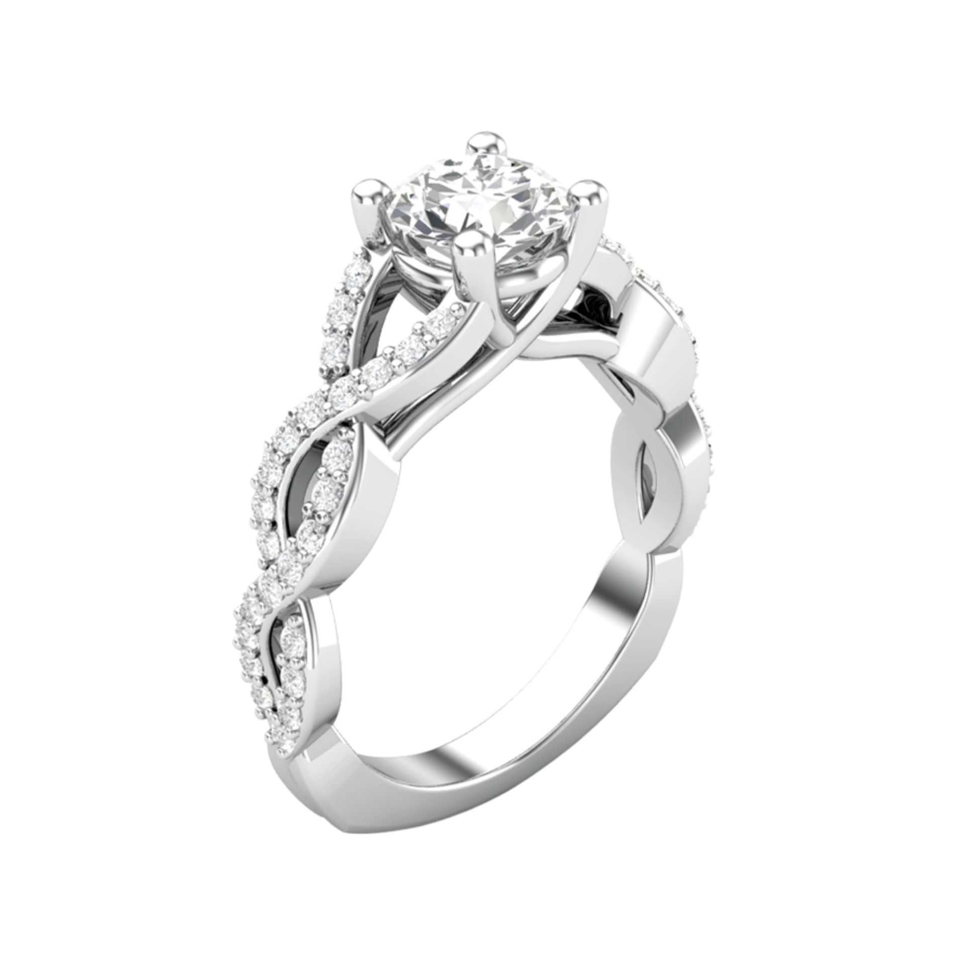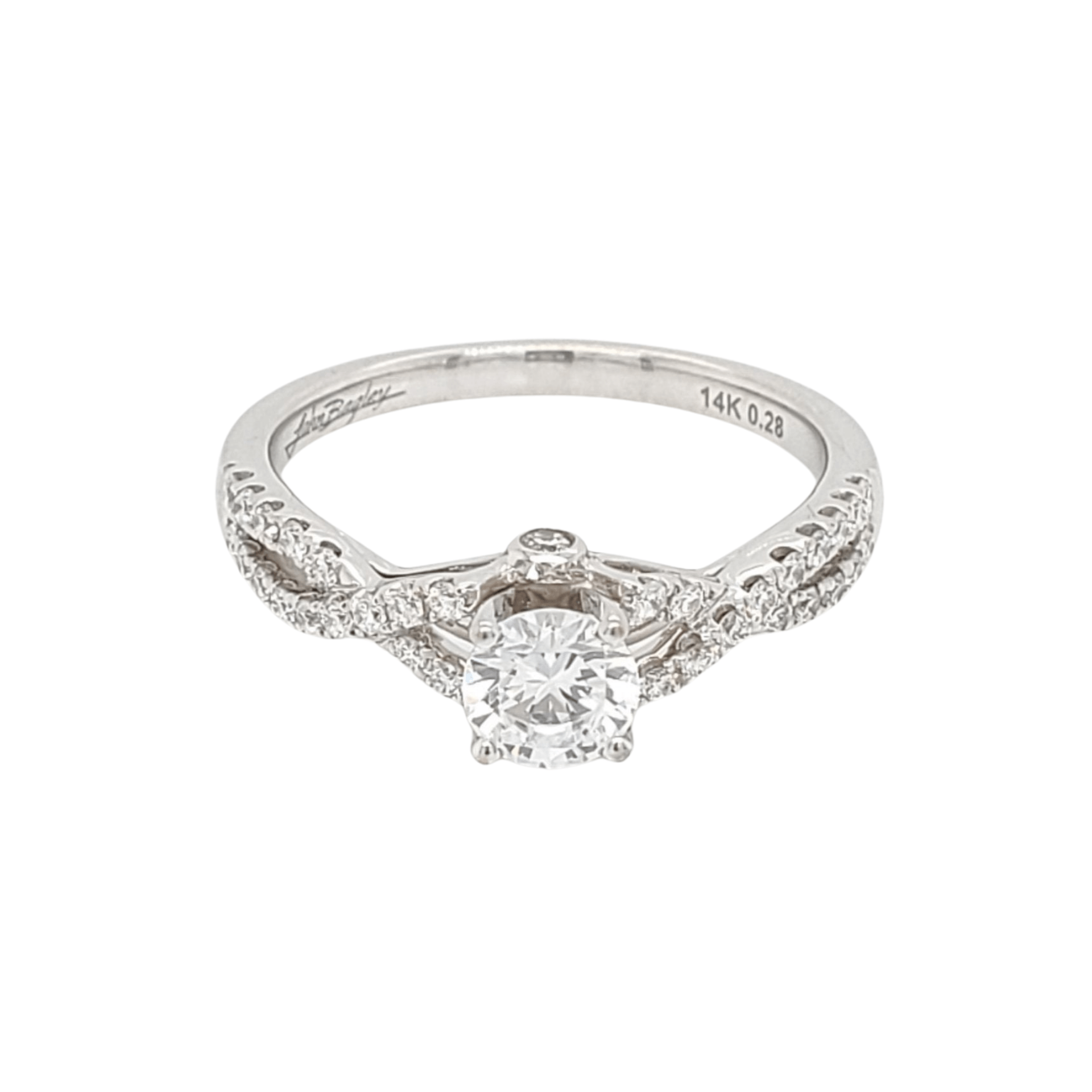 14K White Gold Diamond Carved Cathederal Engagement Ring