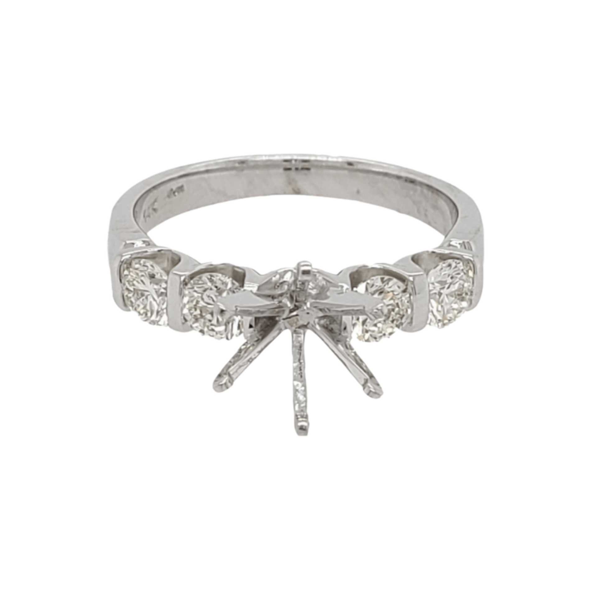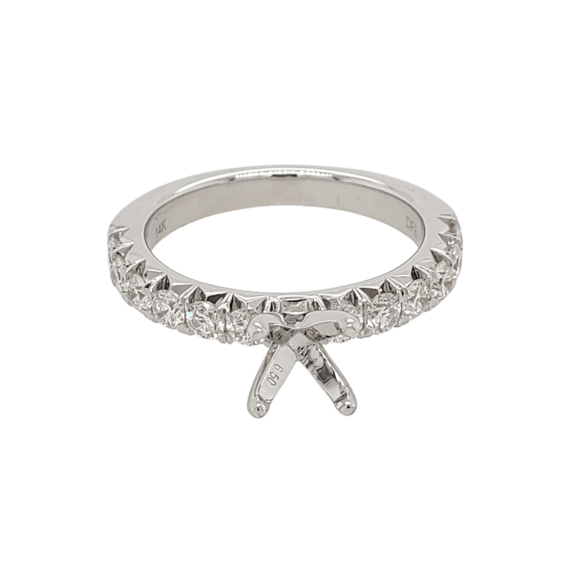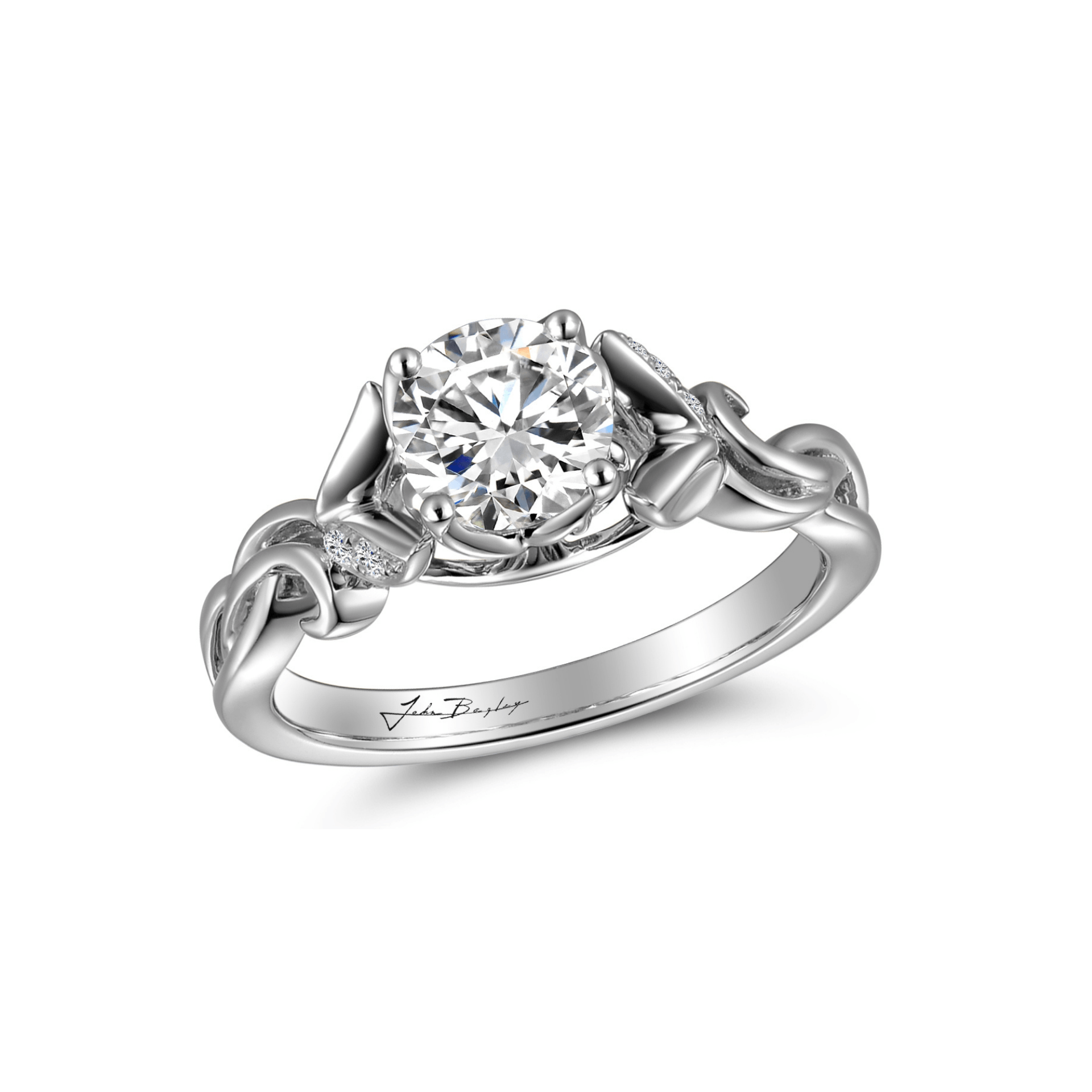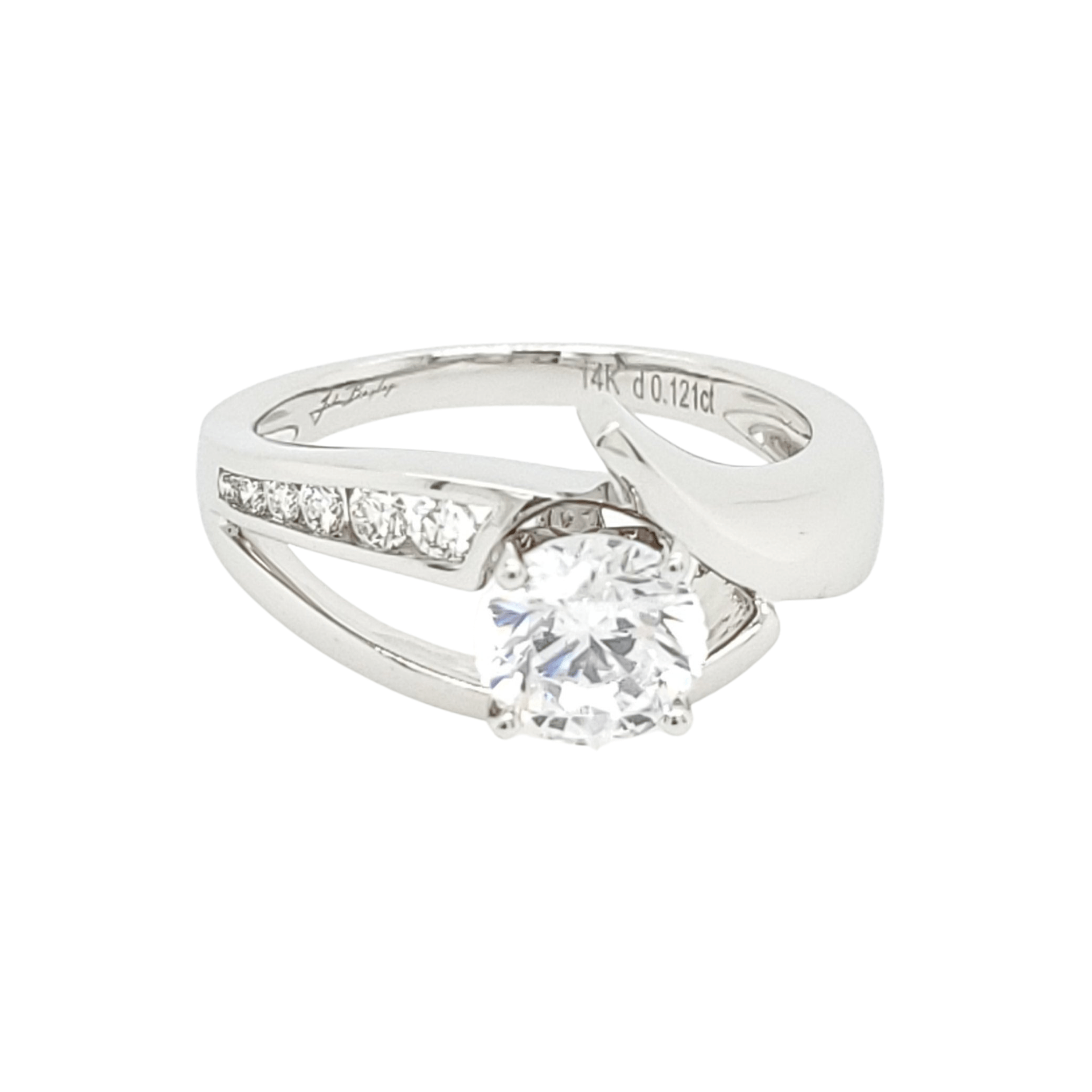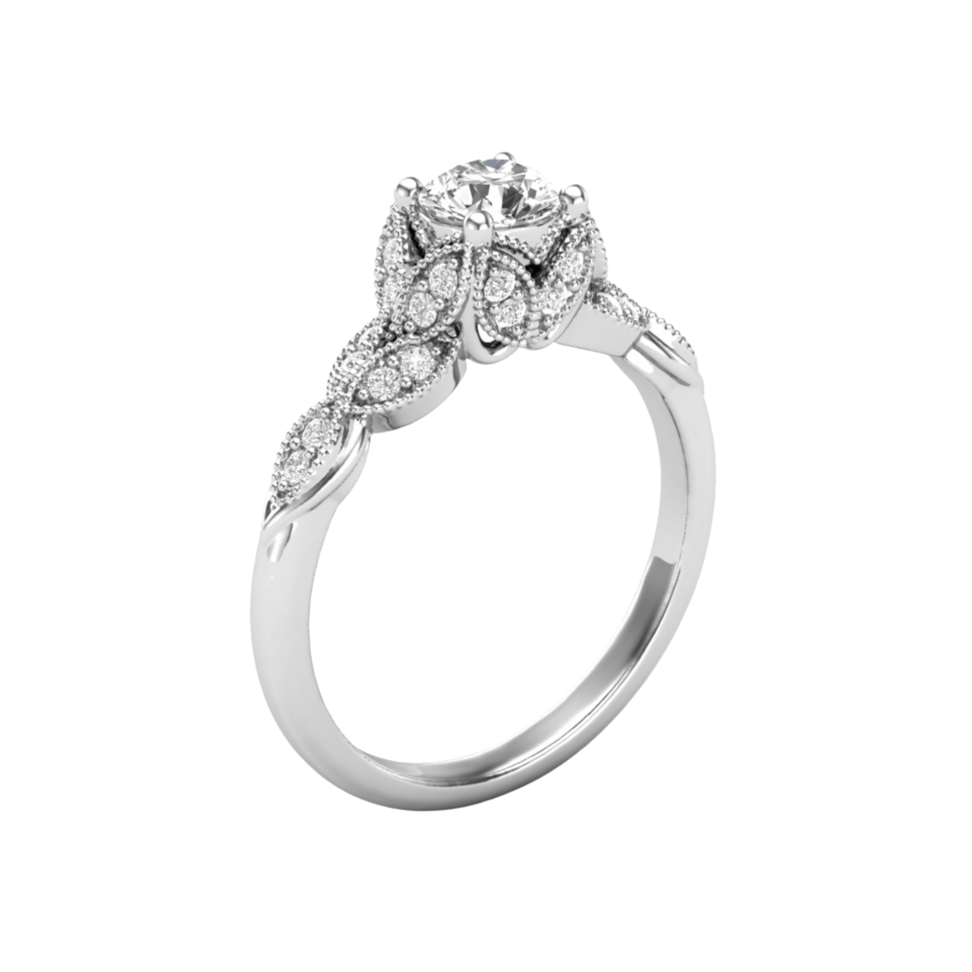 14K White Gold Diamond Carved Cathederal Engagement Ring