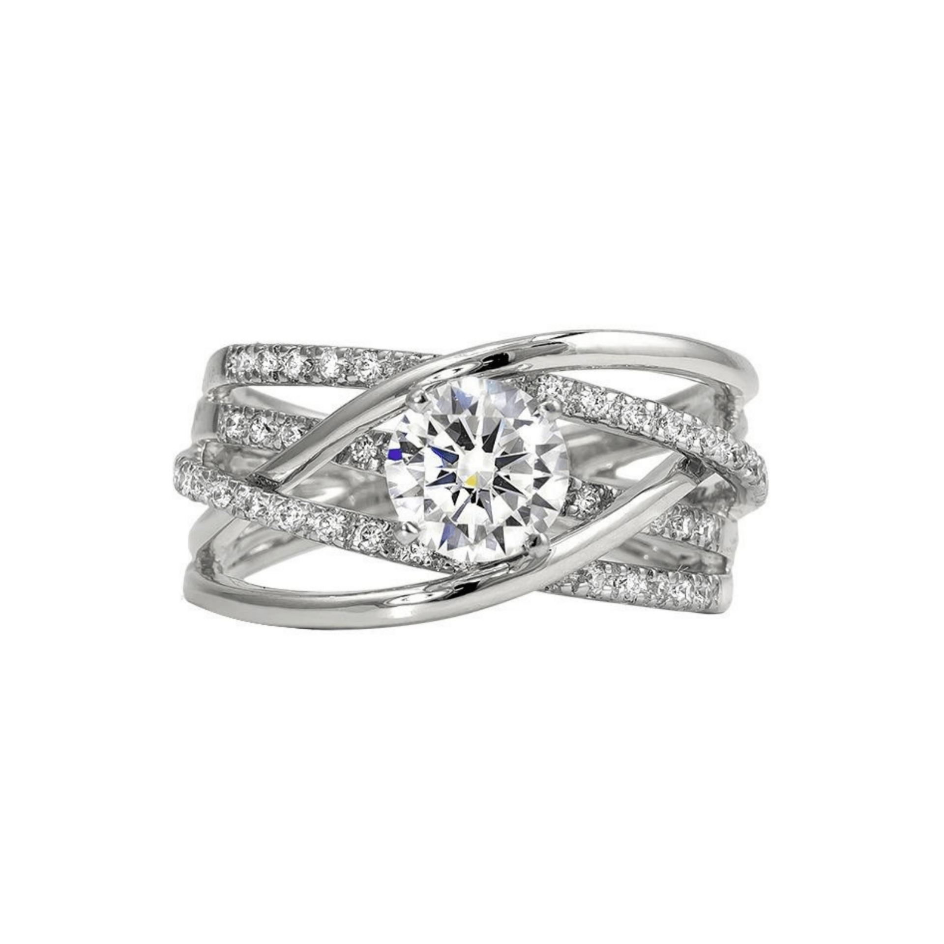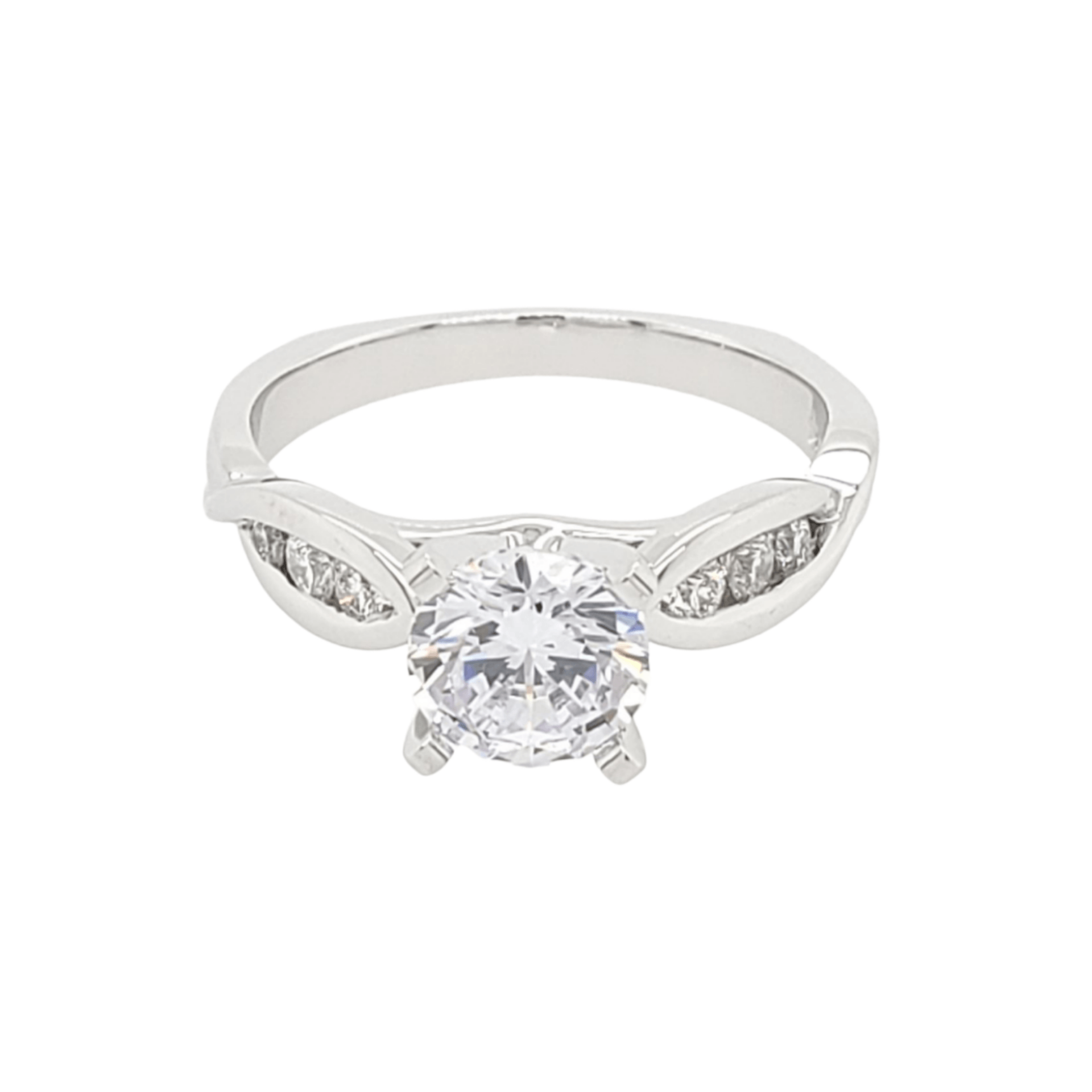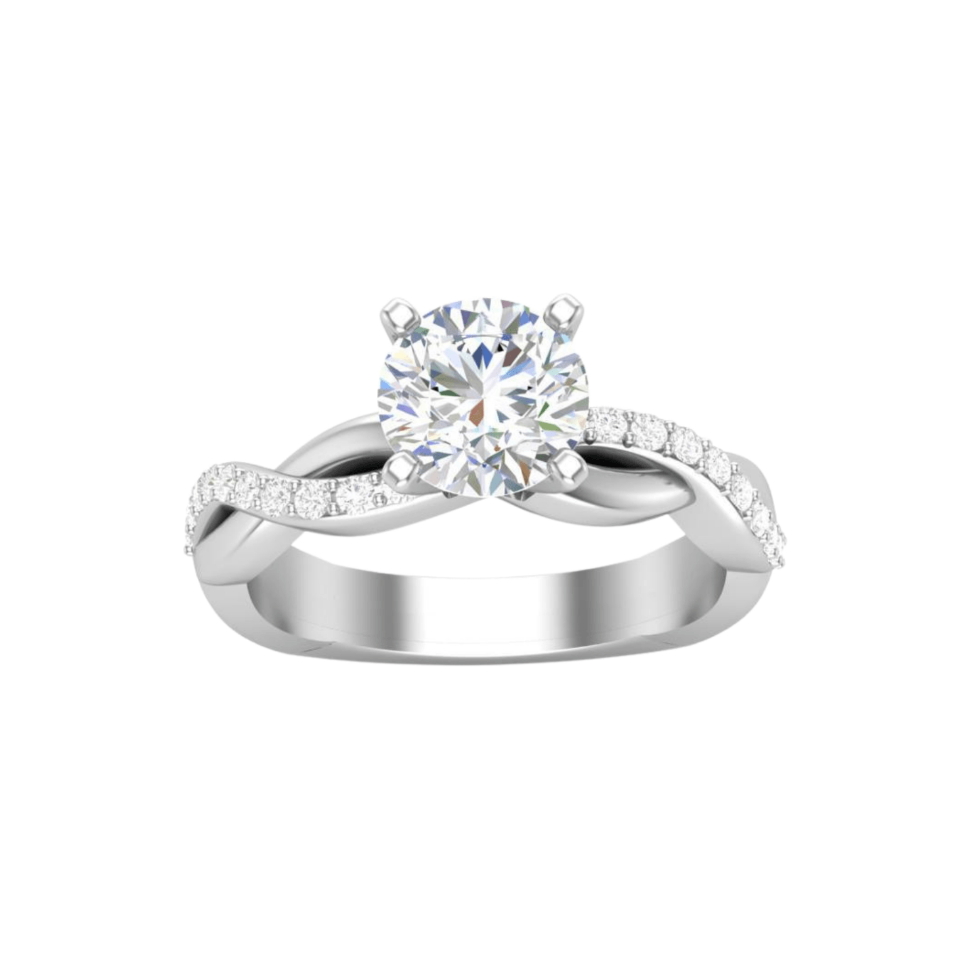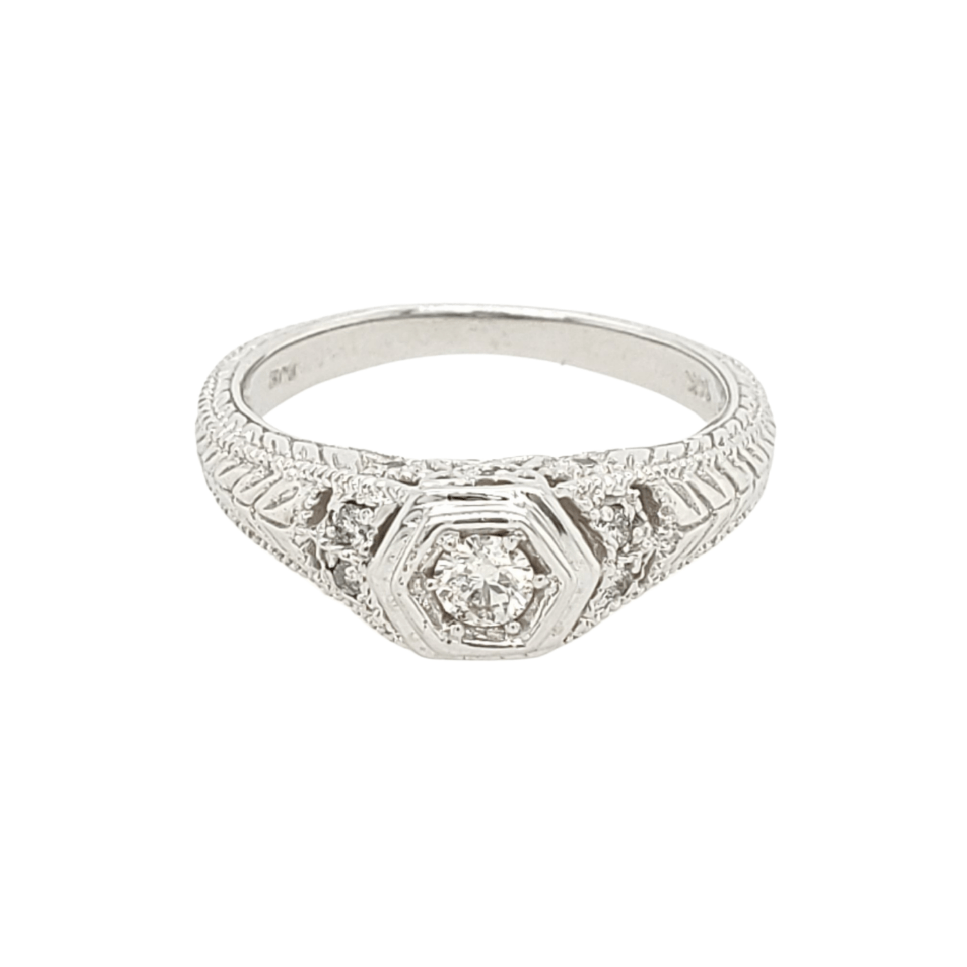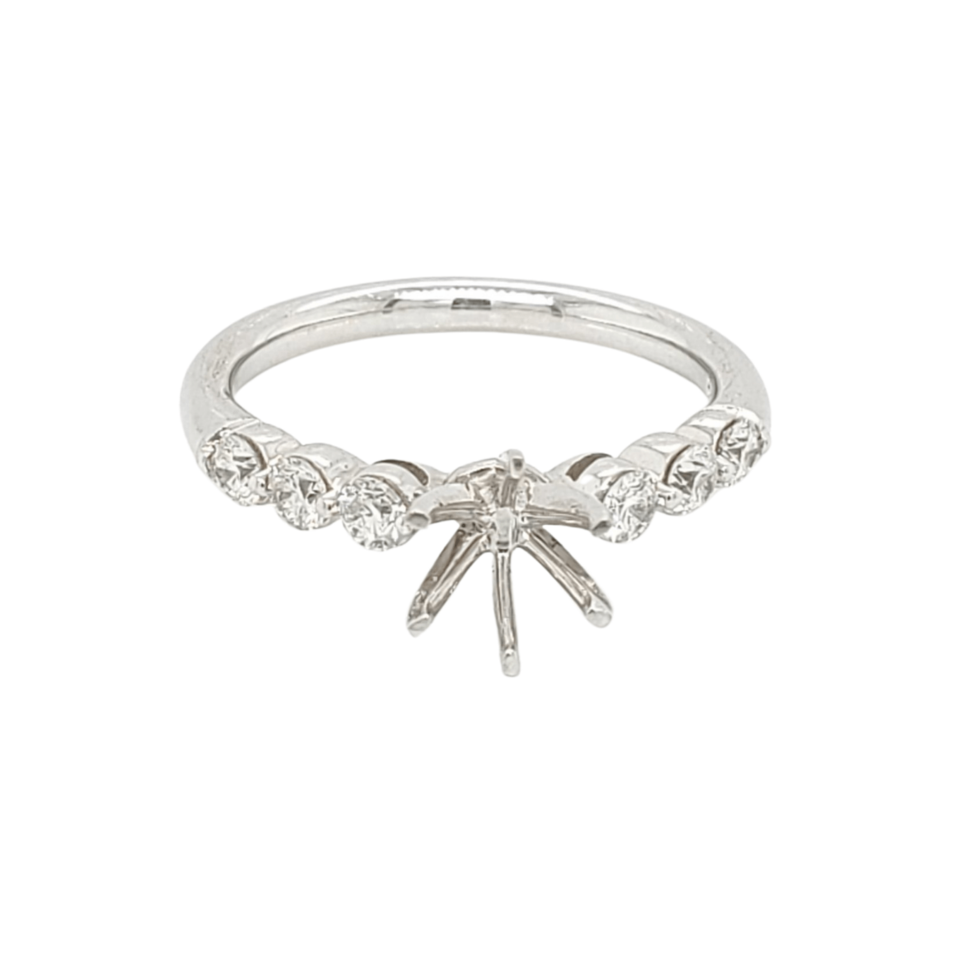 14K White Gold Diamond Carved Cathederal Engagement Ring