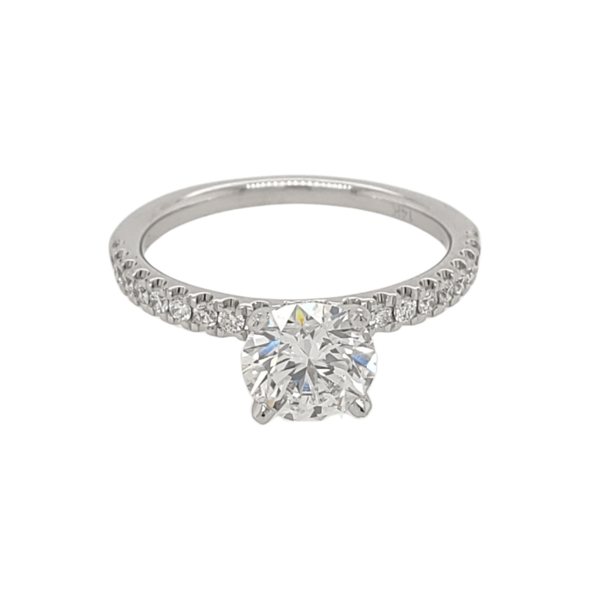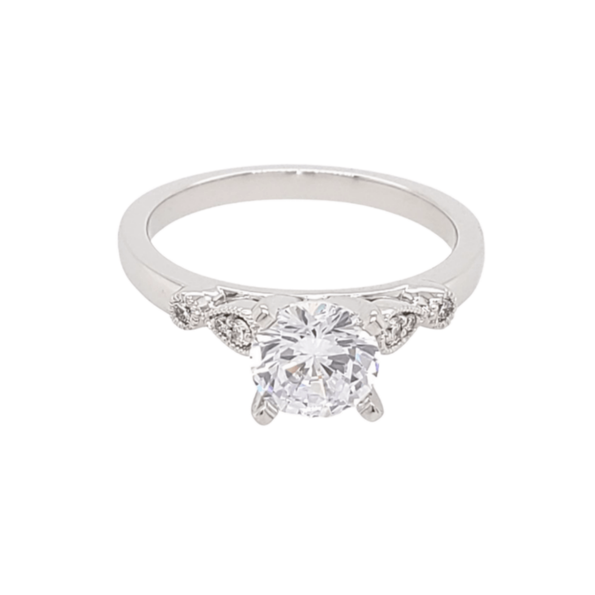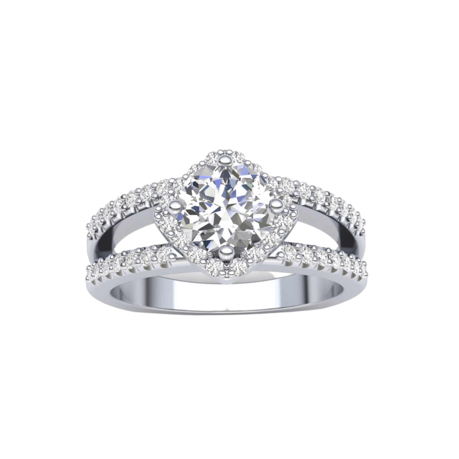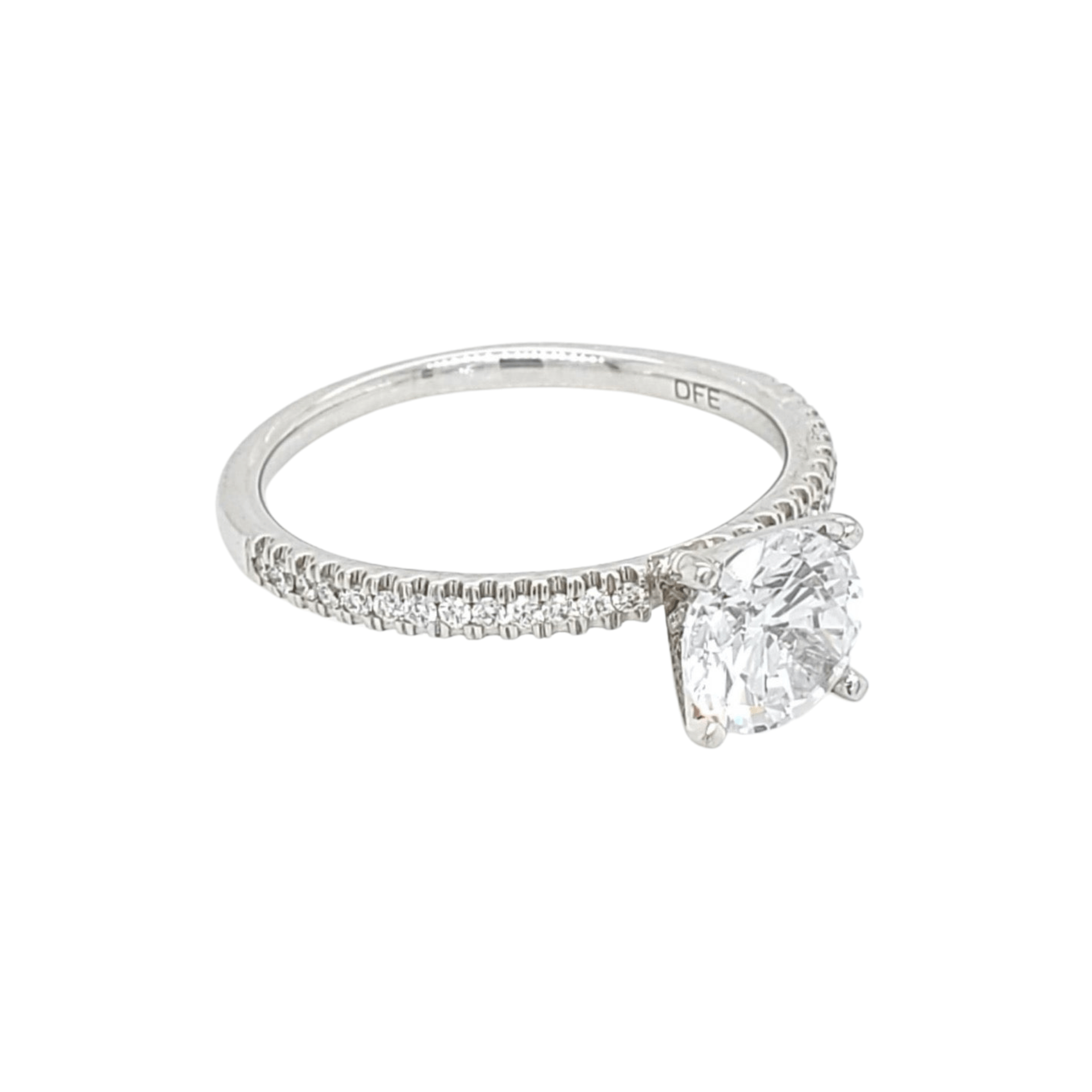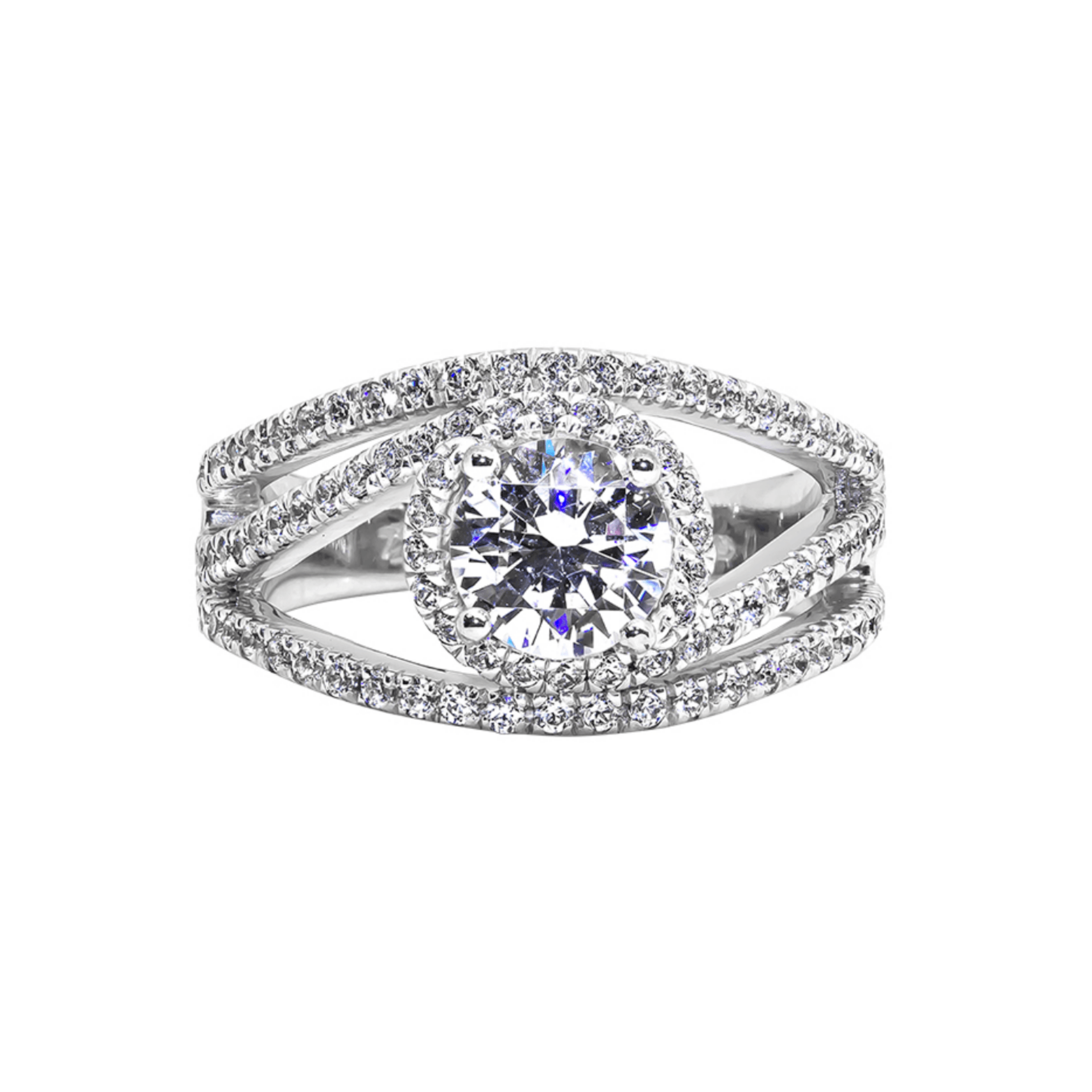 14K White Gold Diamond Carved Cathederal Engagement Ring