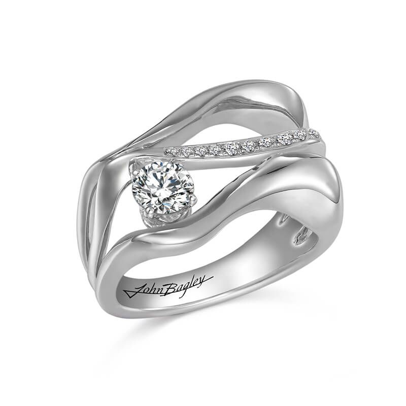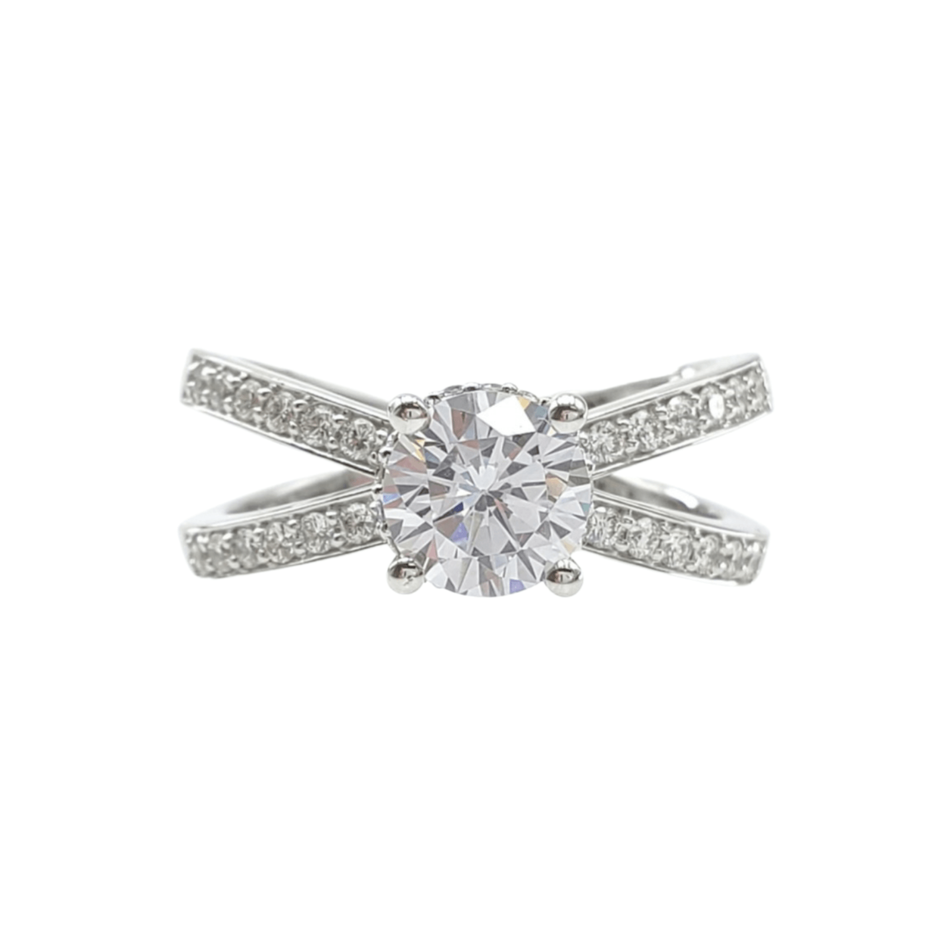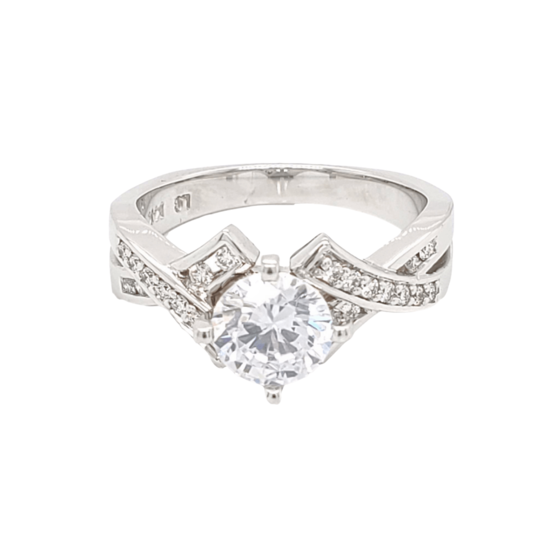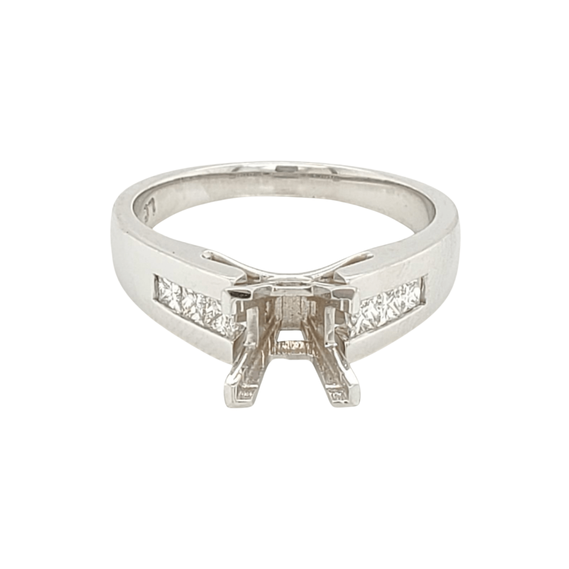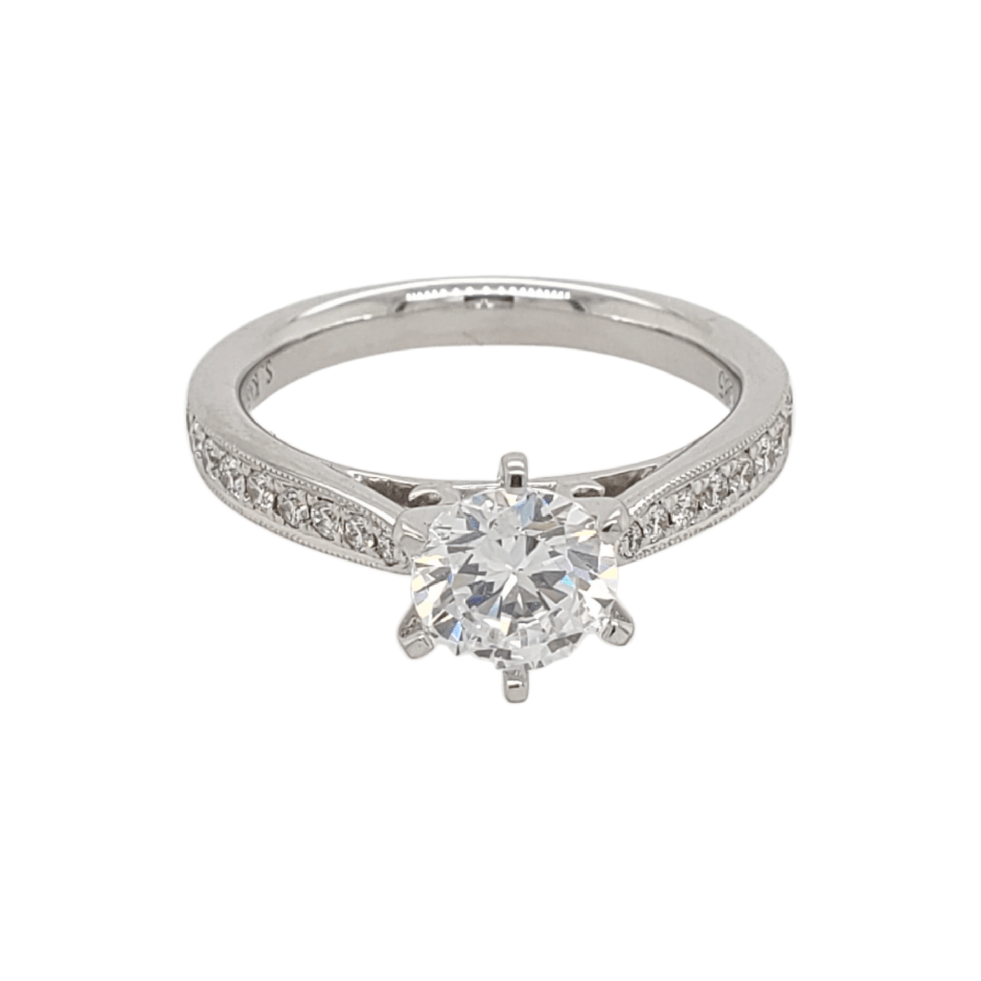 14K White Gold Diamond Carved Cathederal Engagement Ring
