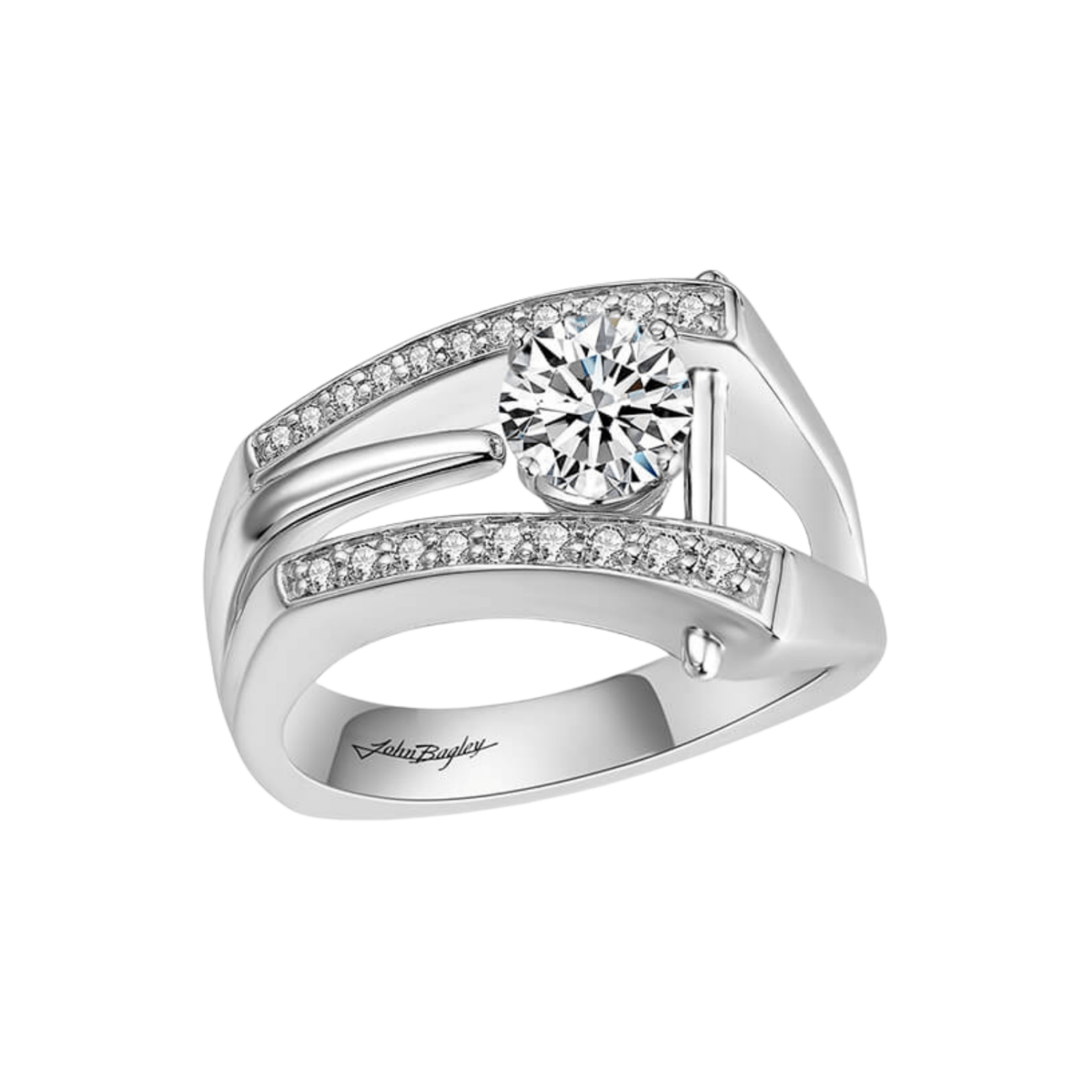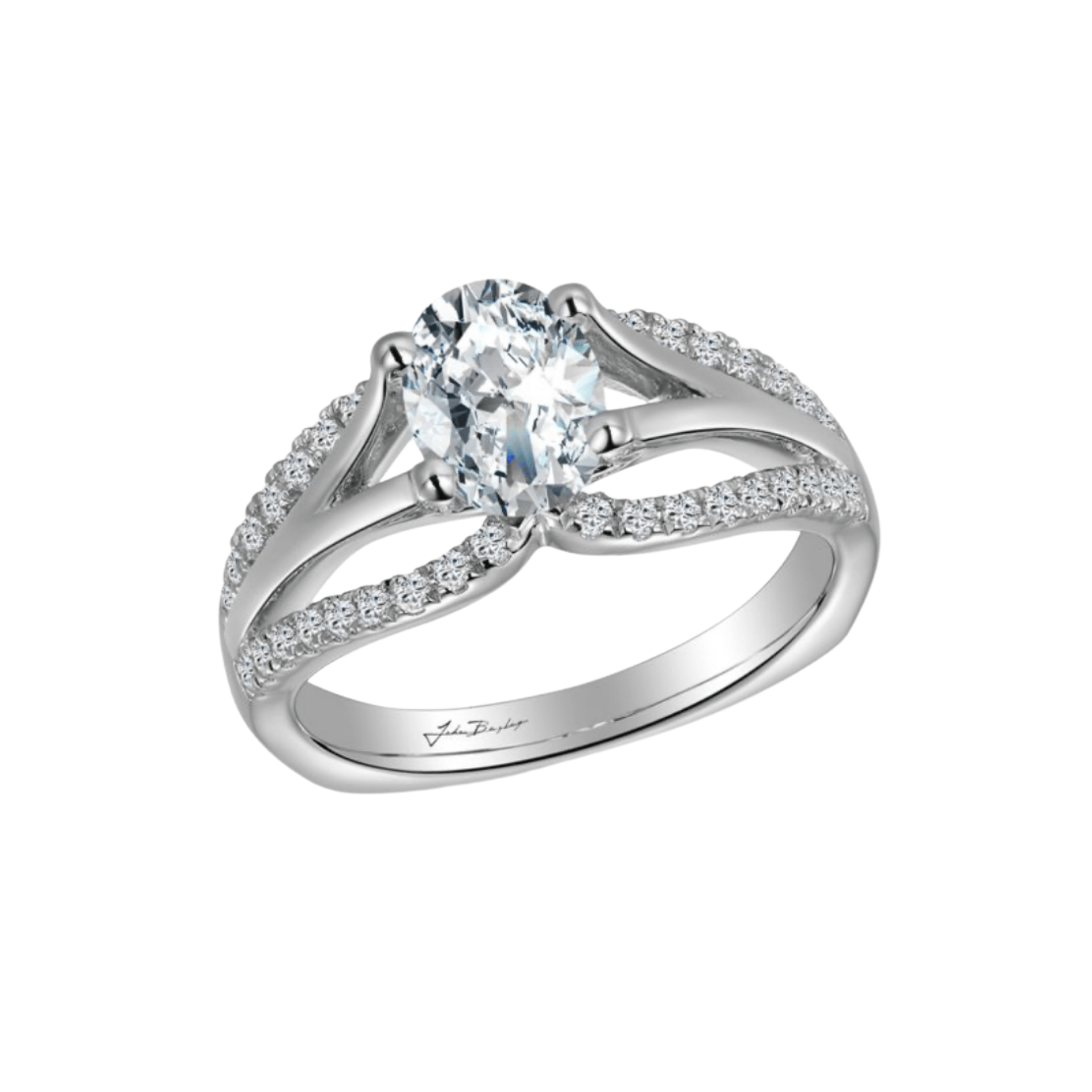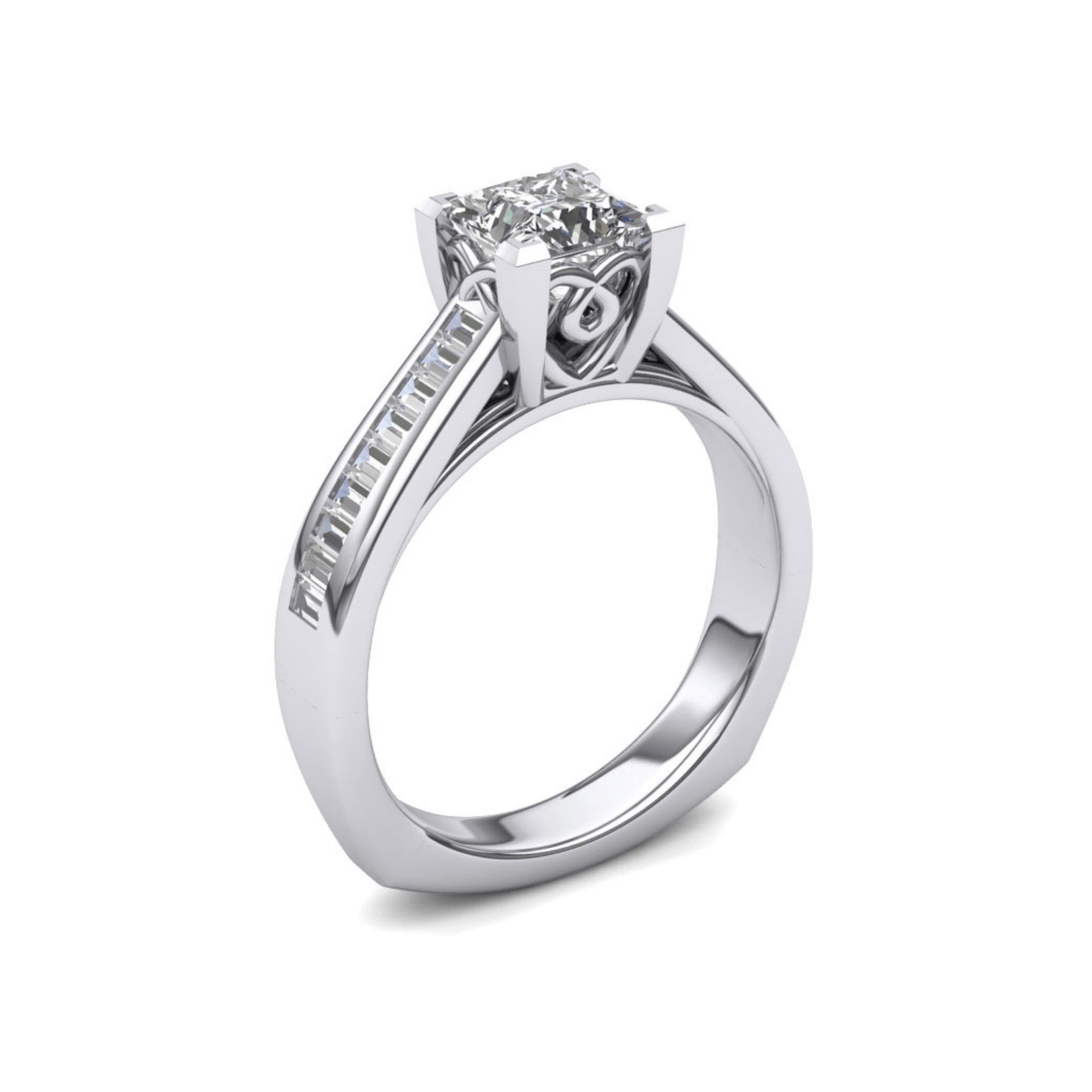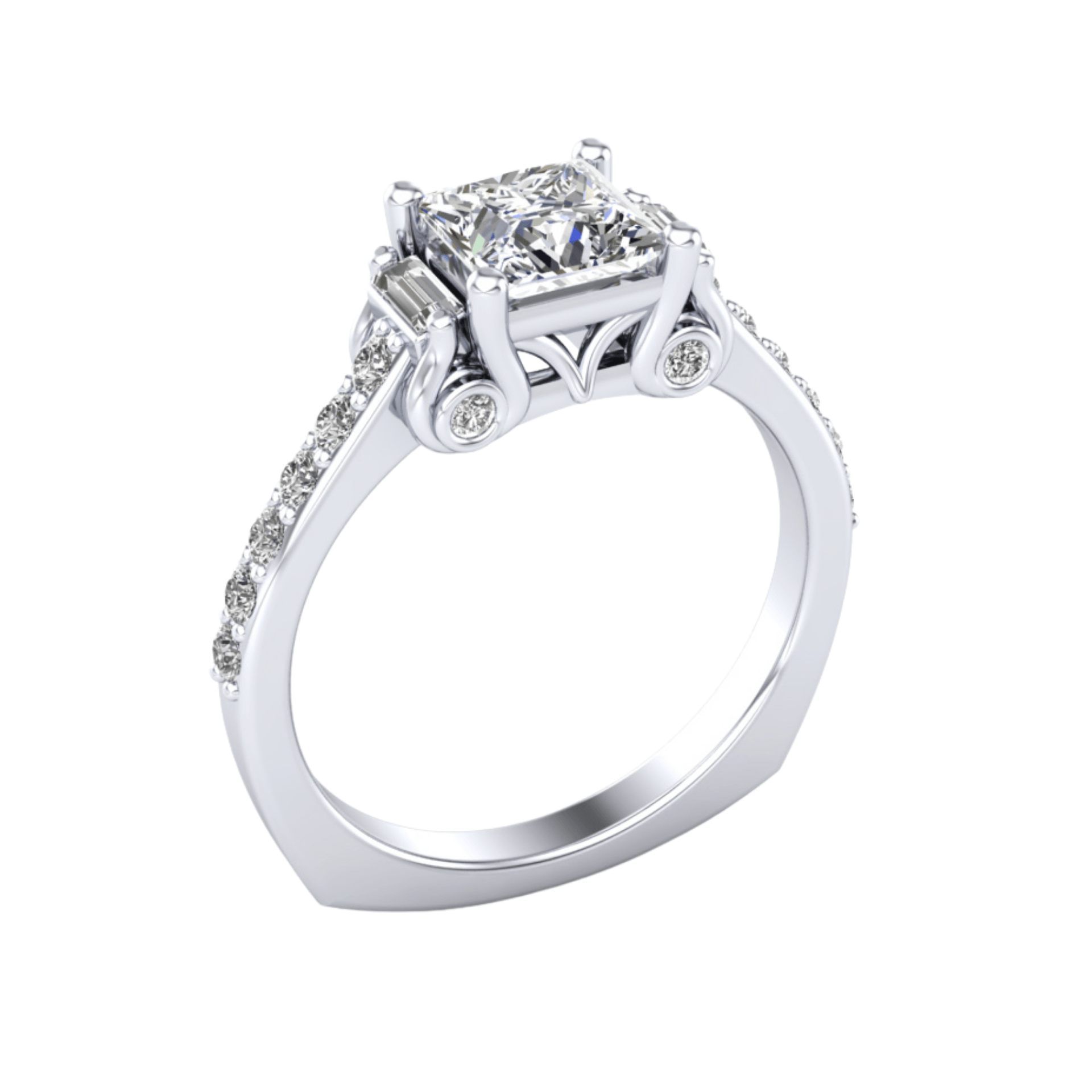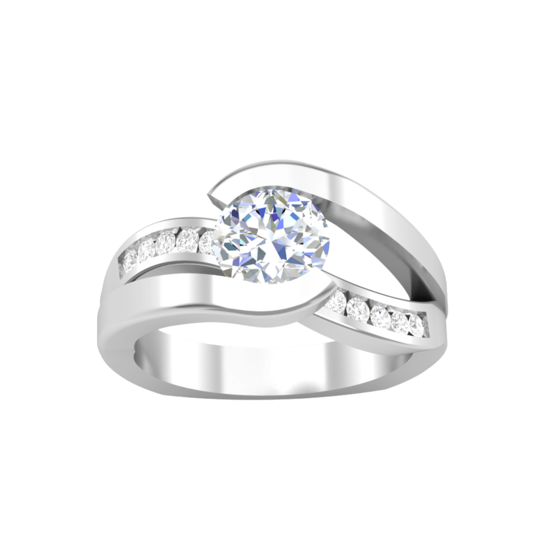 14K White Gold Diamond Carved Cathederal Engagement Ring