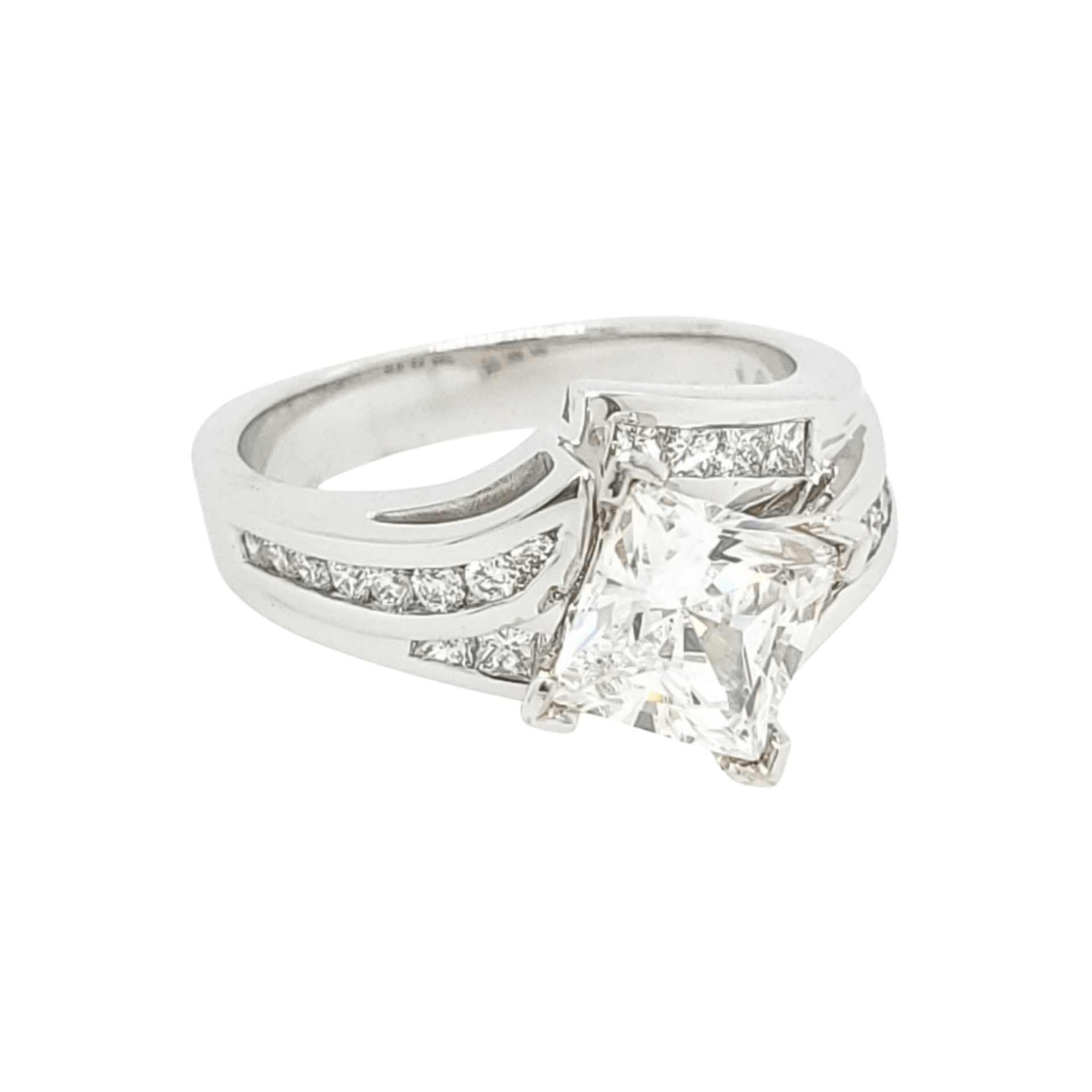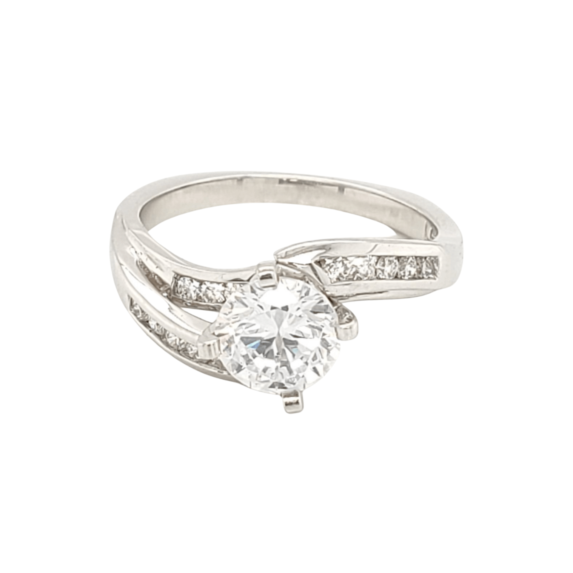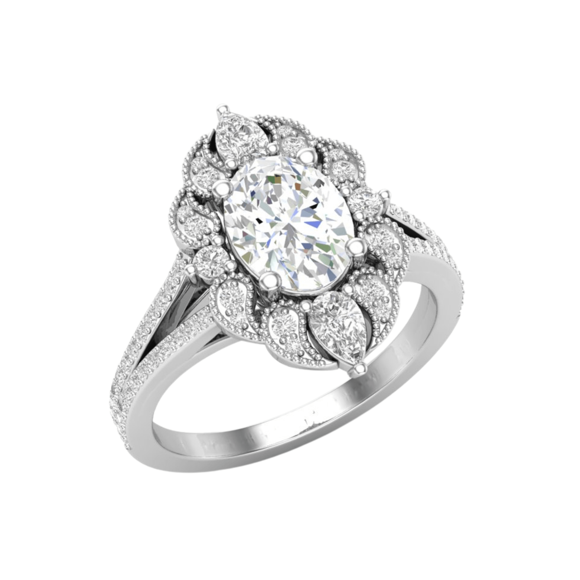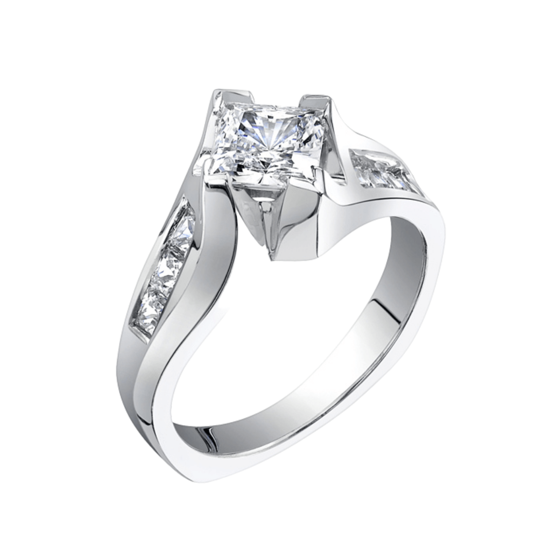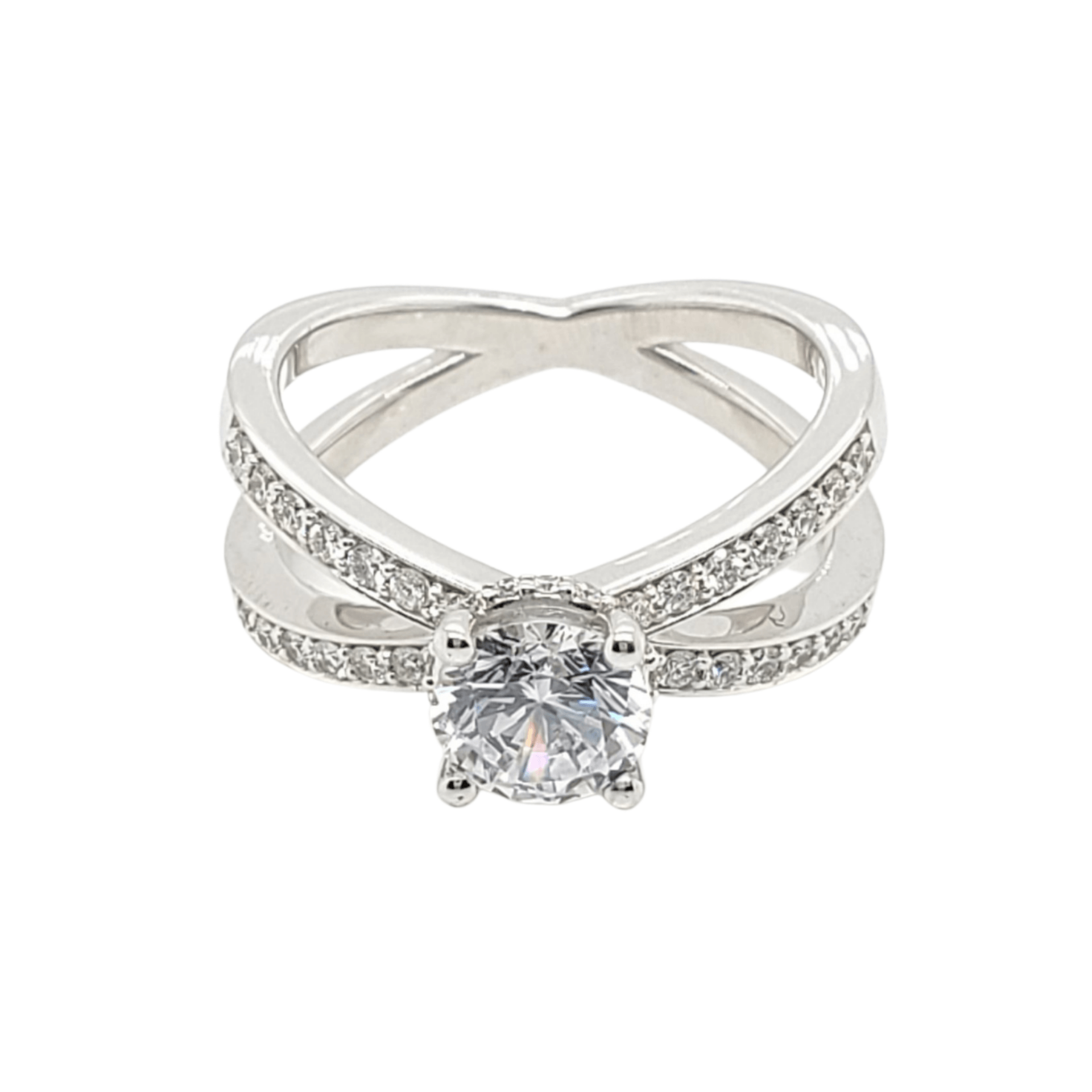 14K White Gold Diamond Carved Cathederal Engagement Ring
