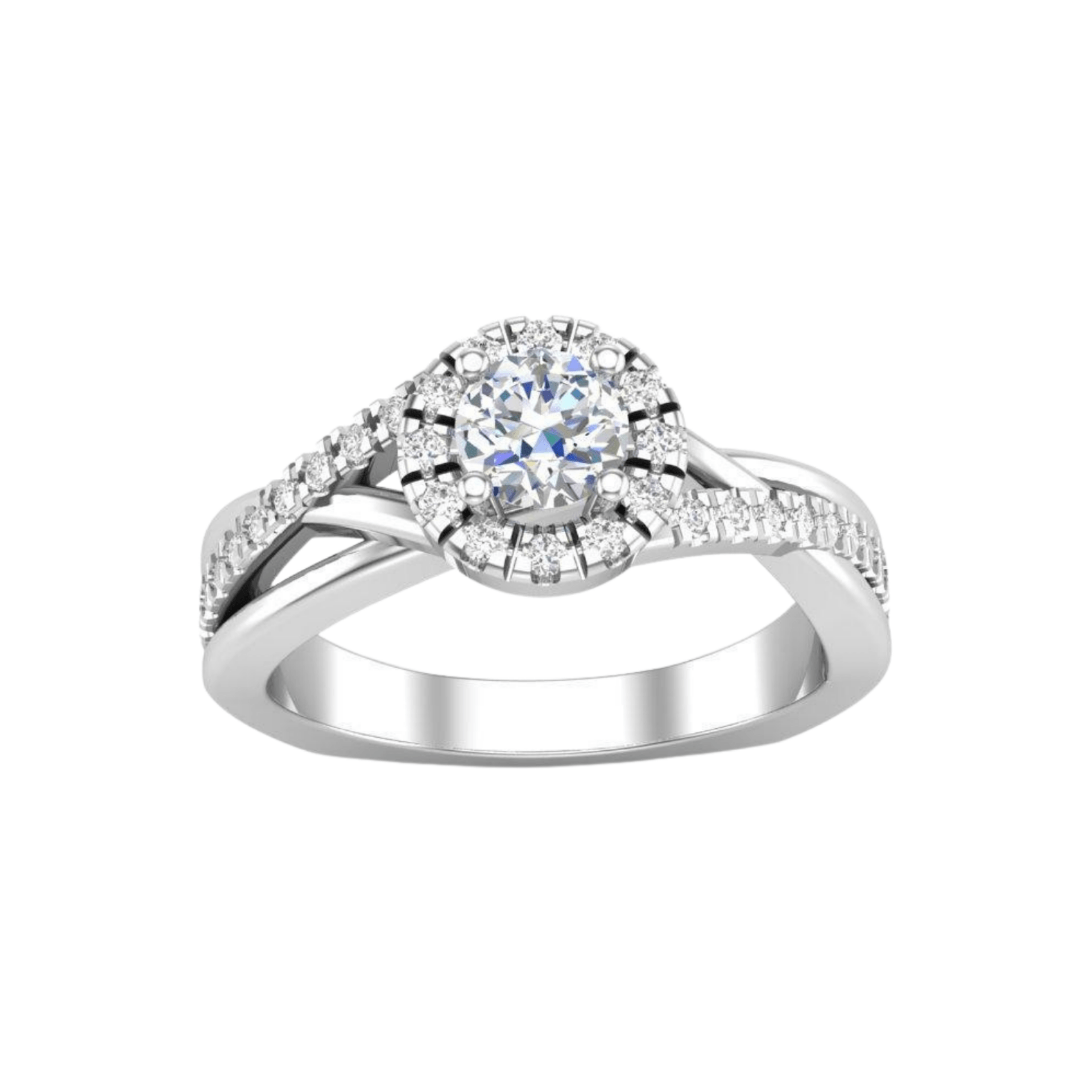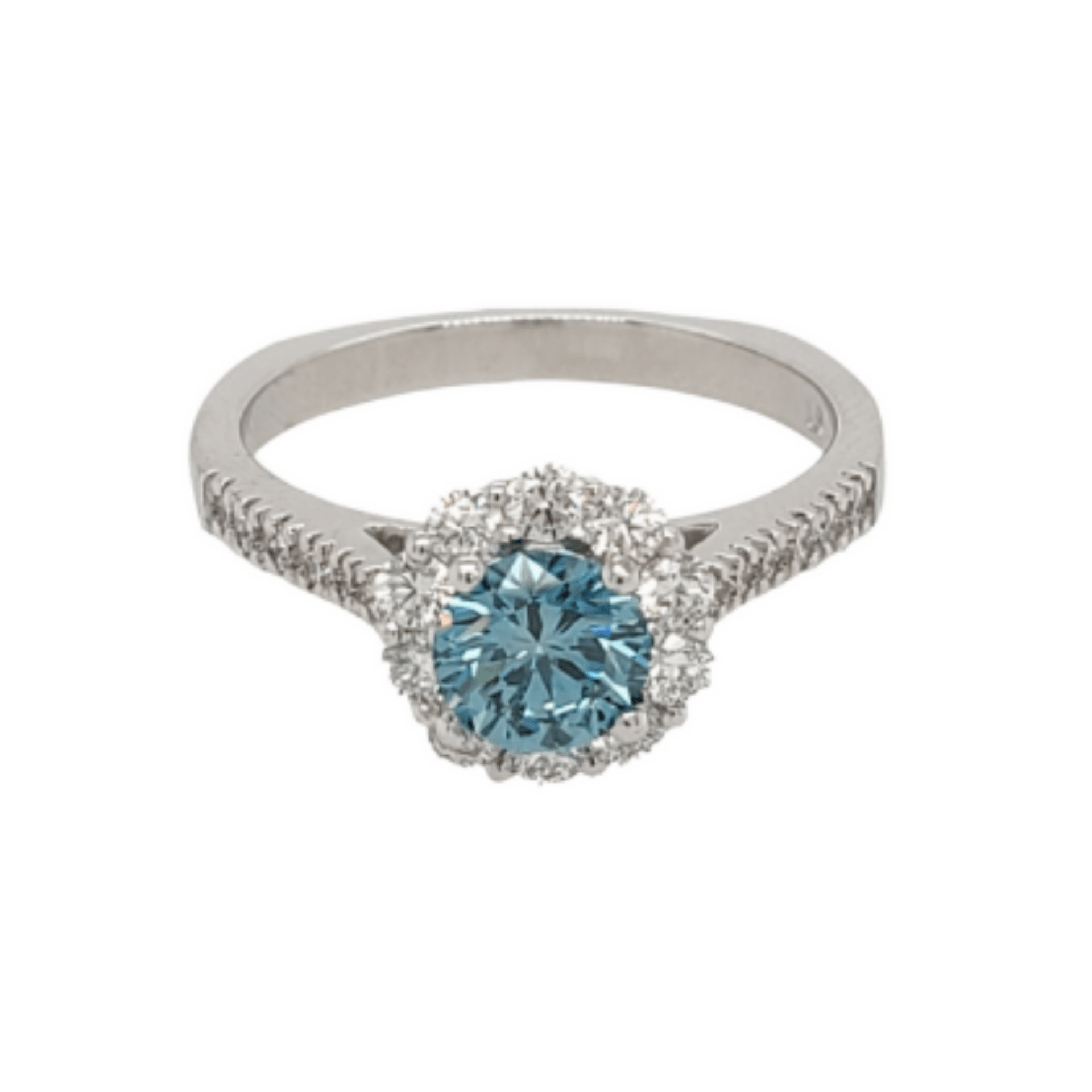 14K White Gold Blue Lab Grown Diamond Halo Engagement Ring