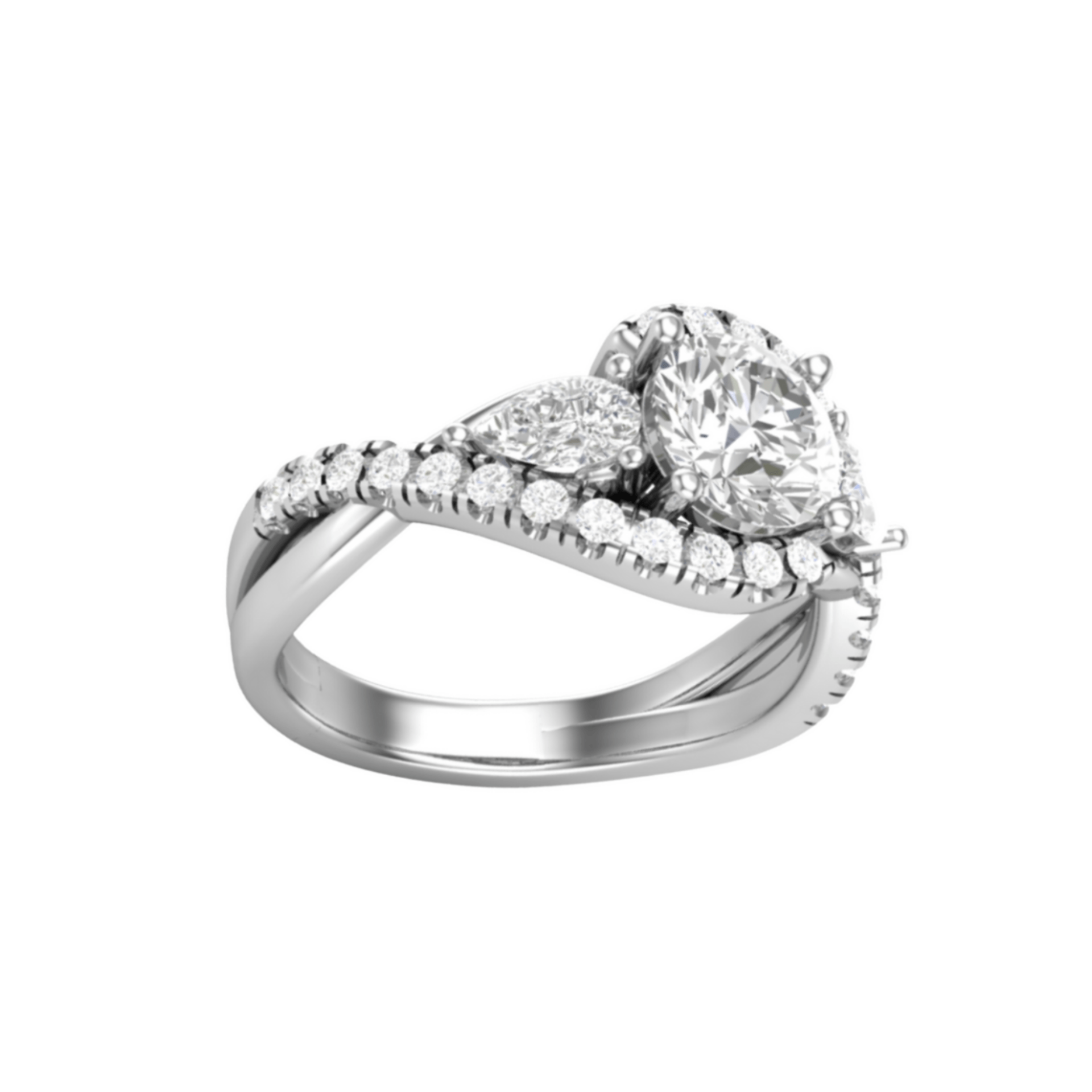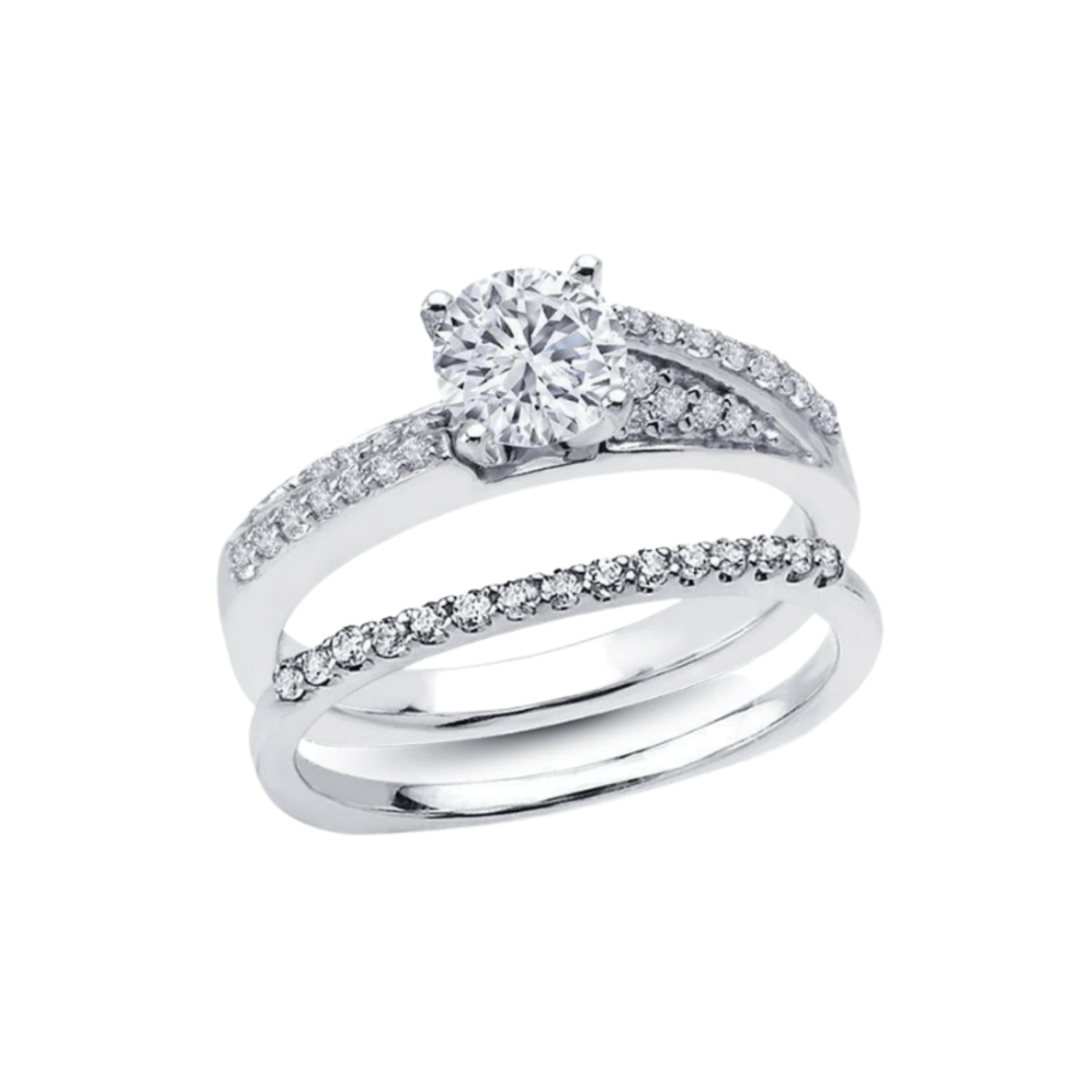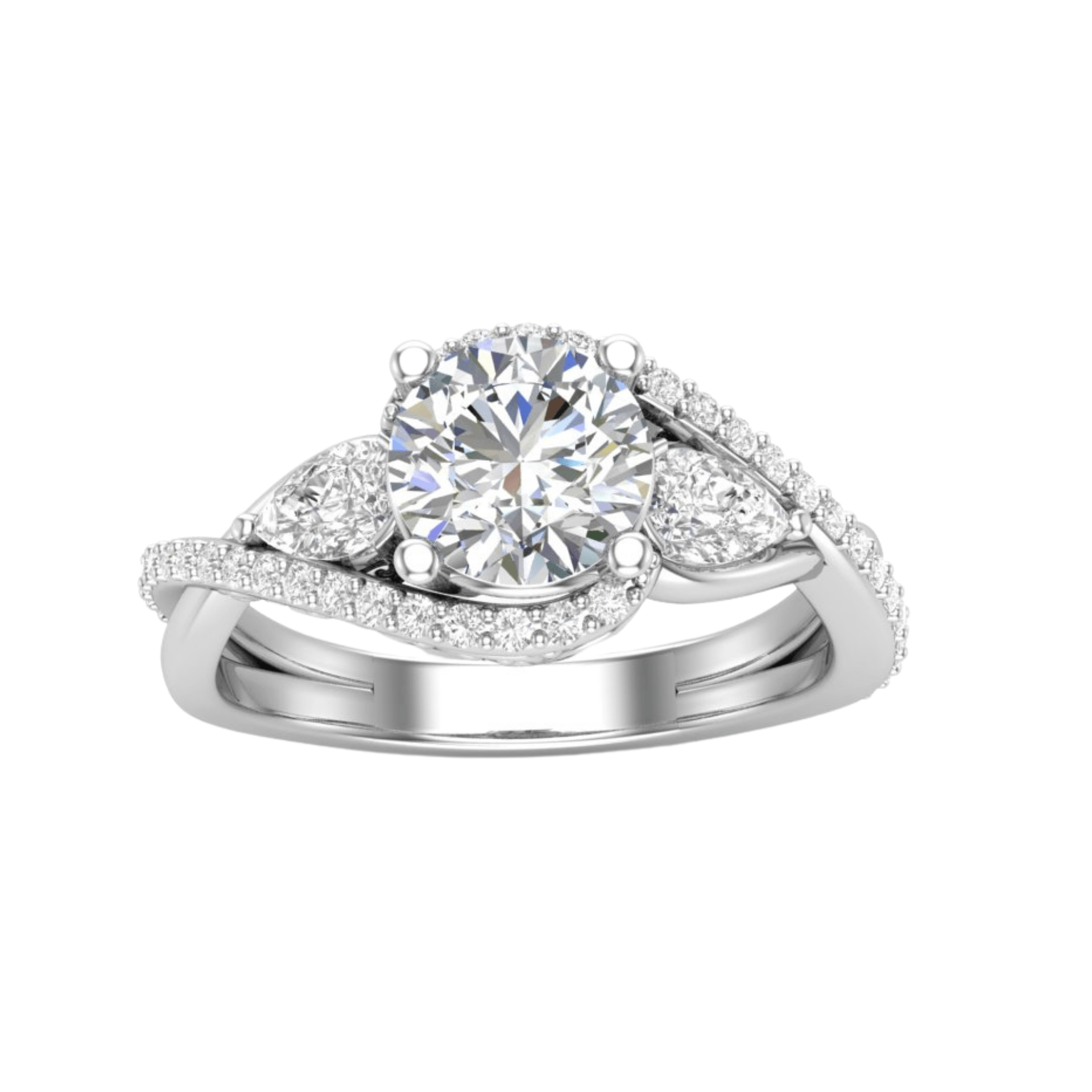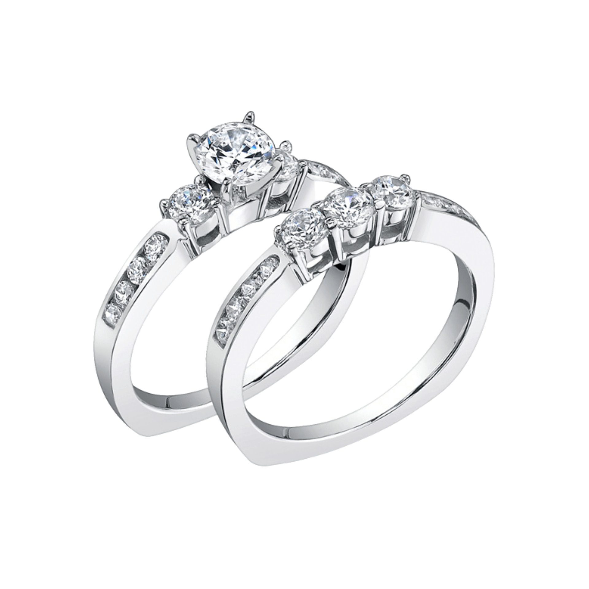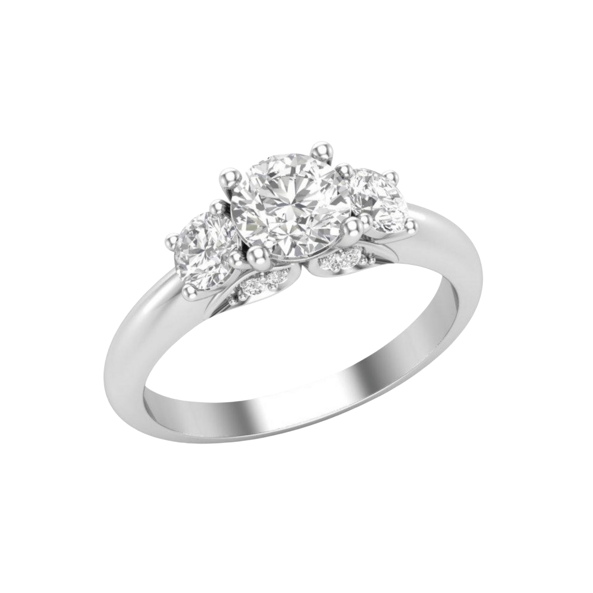 14K White Gold 3-Stone Diamond Engagement Set w/ Adjustable Head - Available in Multiple Sizes