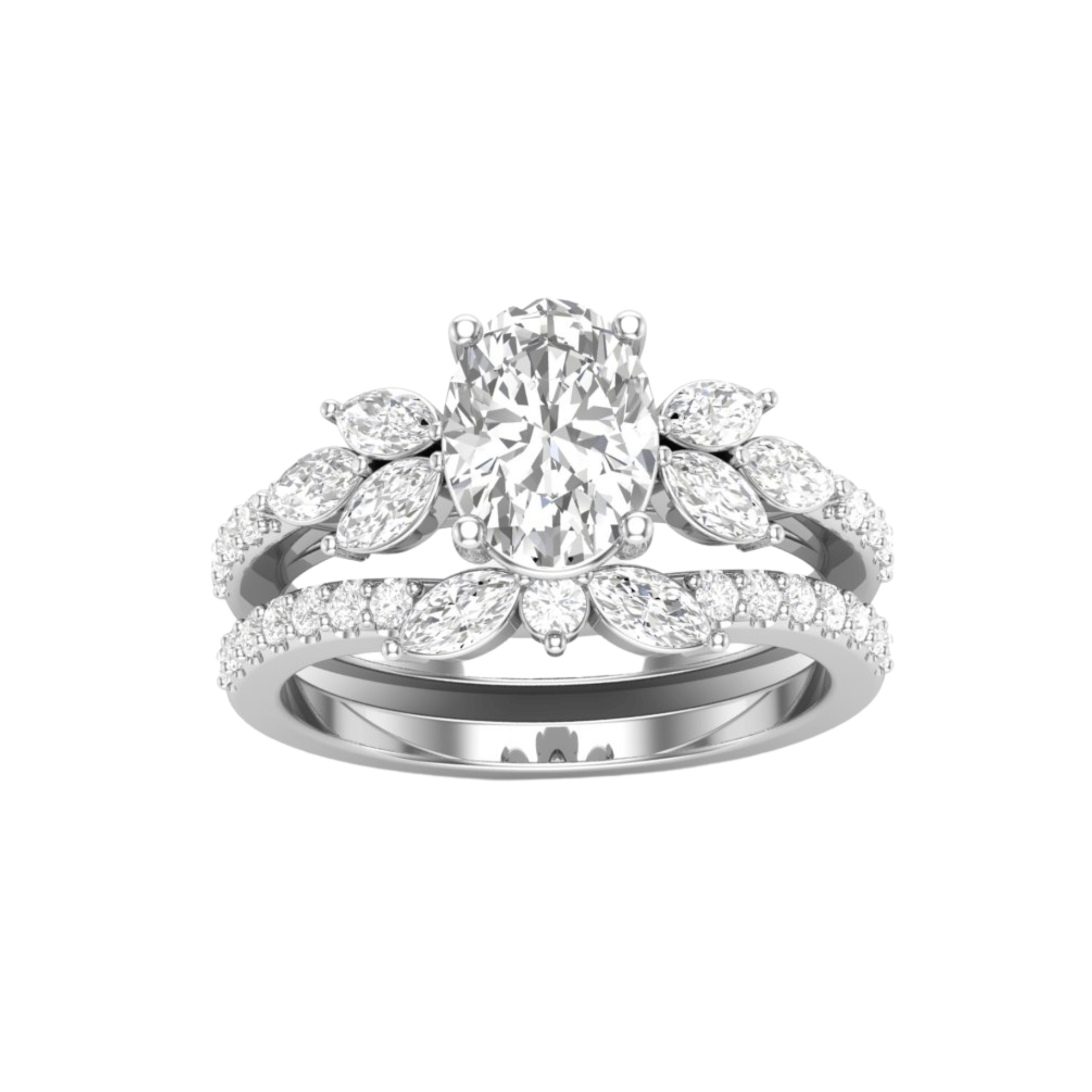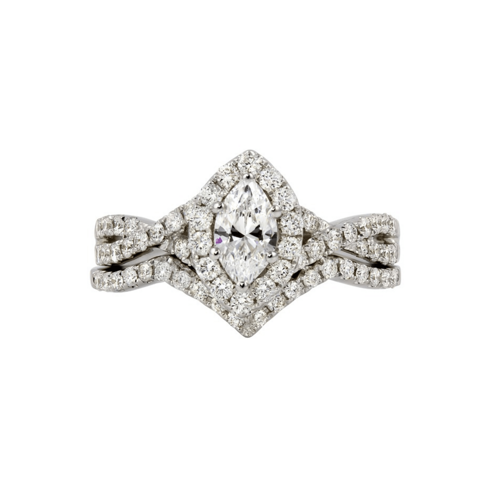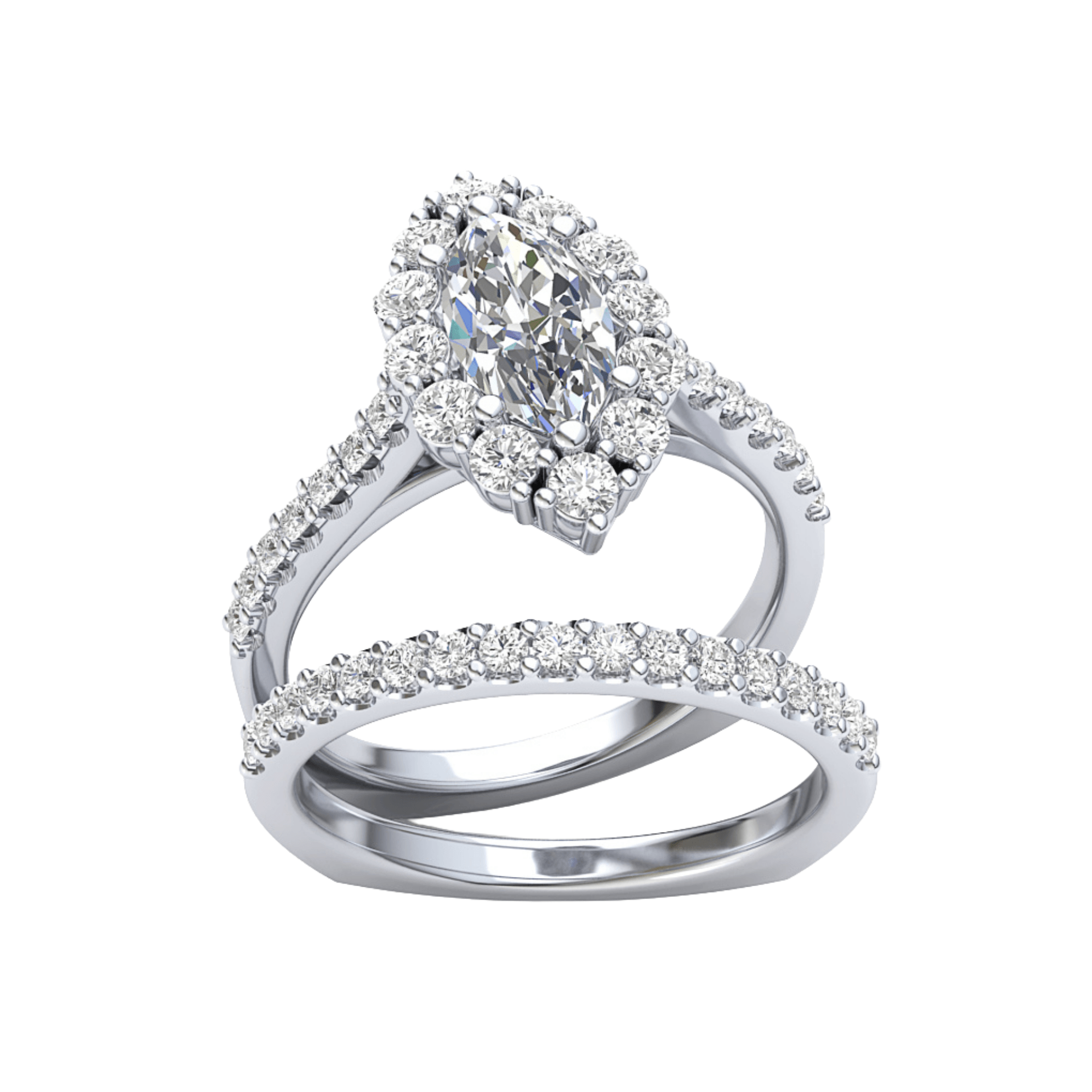 14K White Gold Diamond Engagement Set w/ MQ Accents