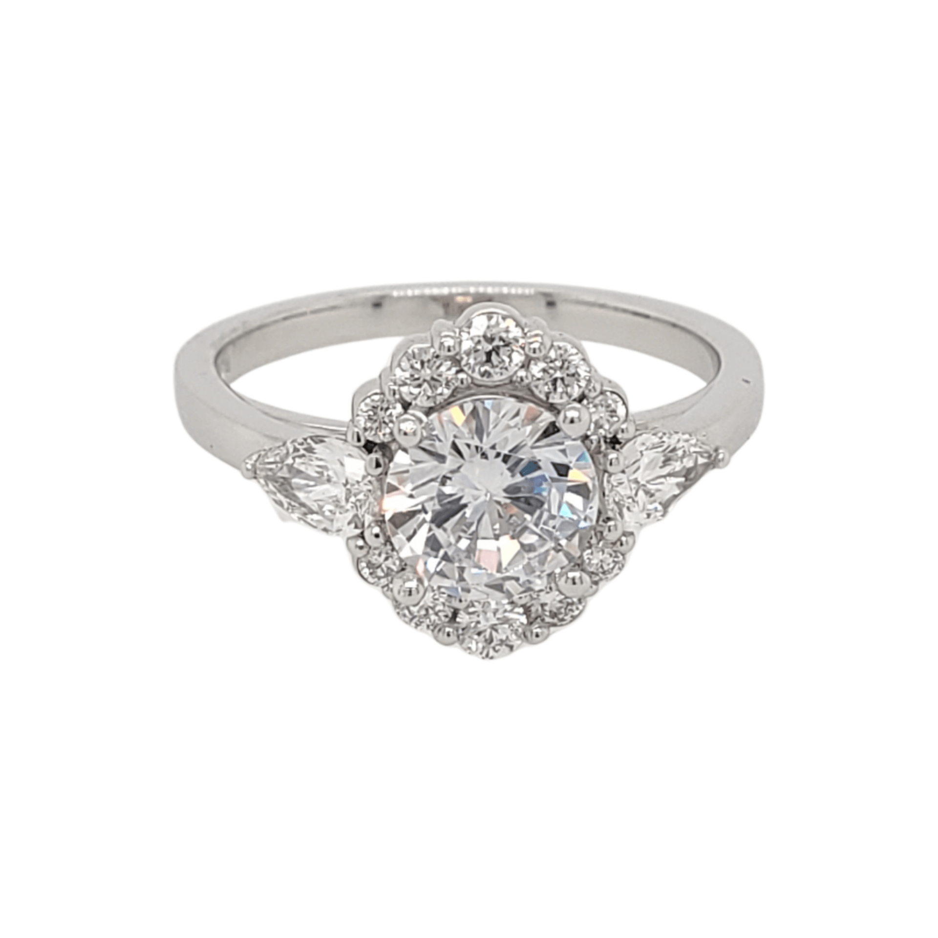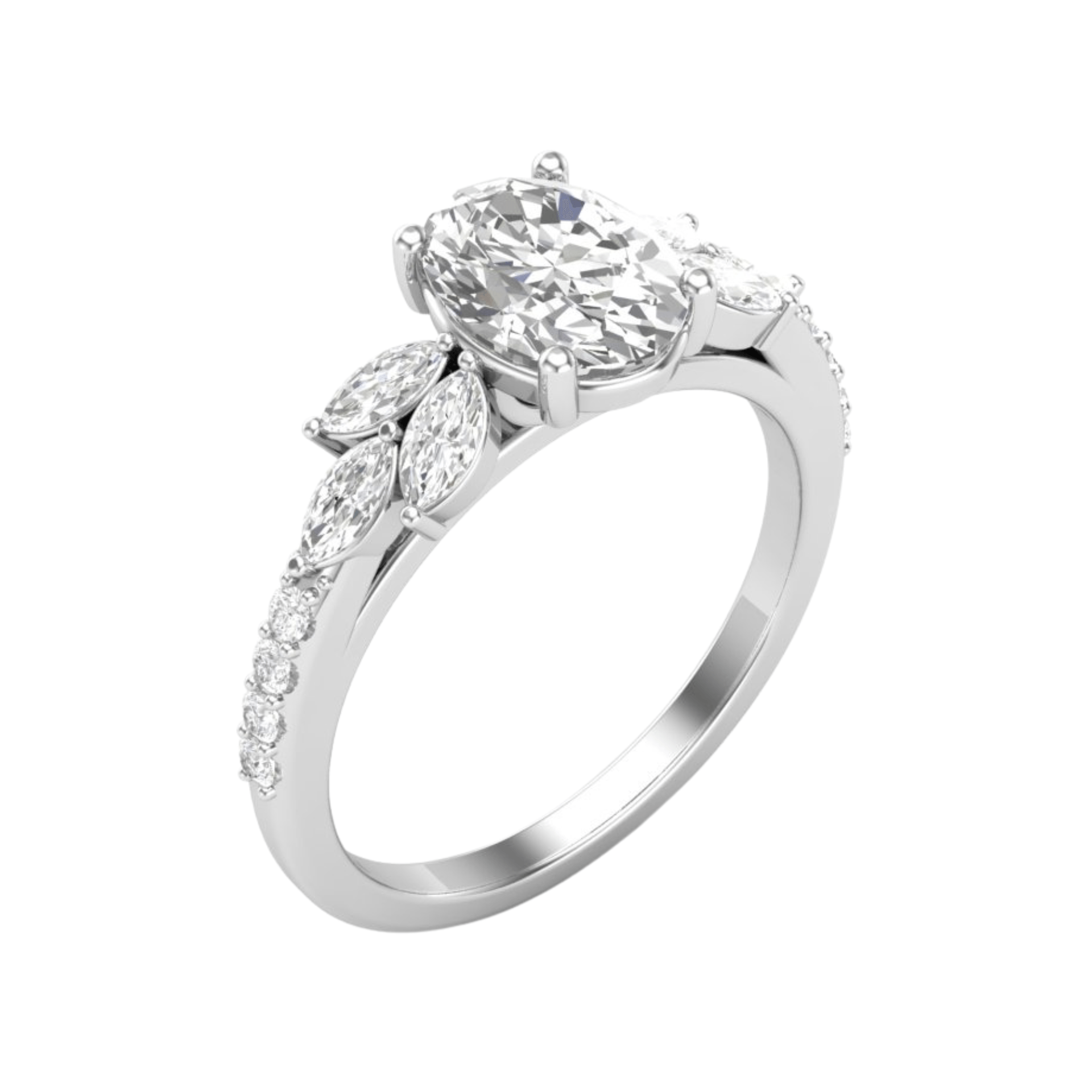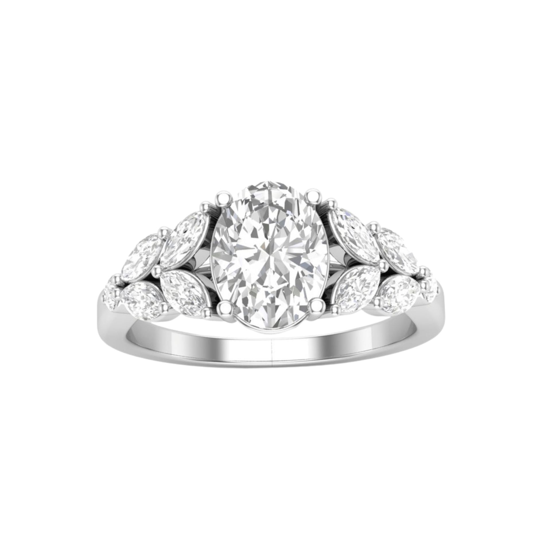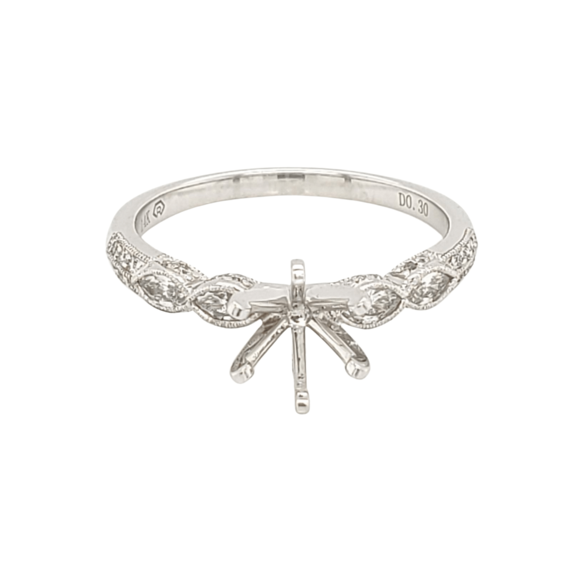 14K White Gold Diamond Engagement Ring w/ MQ Accents