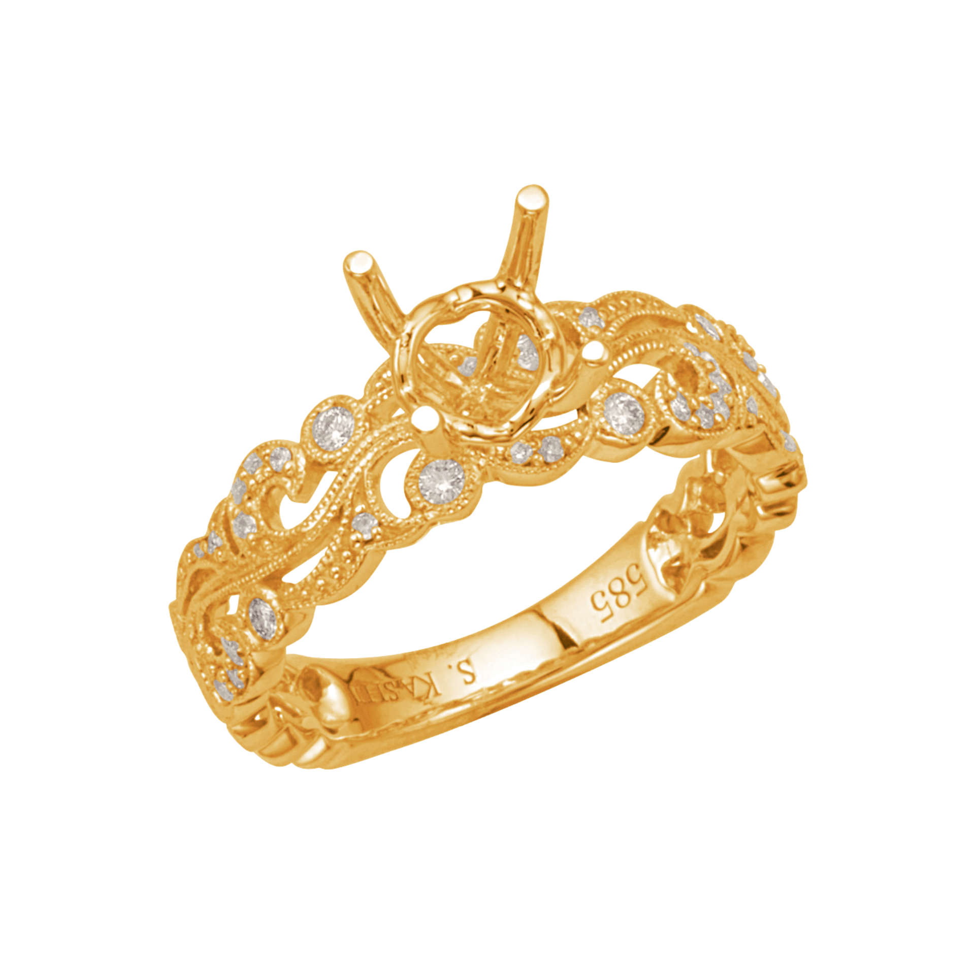 Band Diamond Accents: 22 diamonds/0.22 Ct.Center